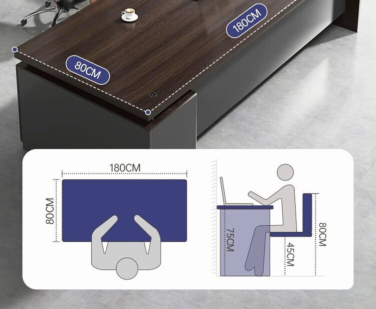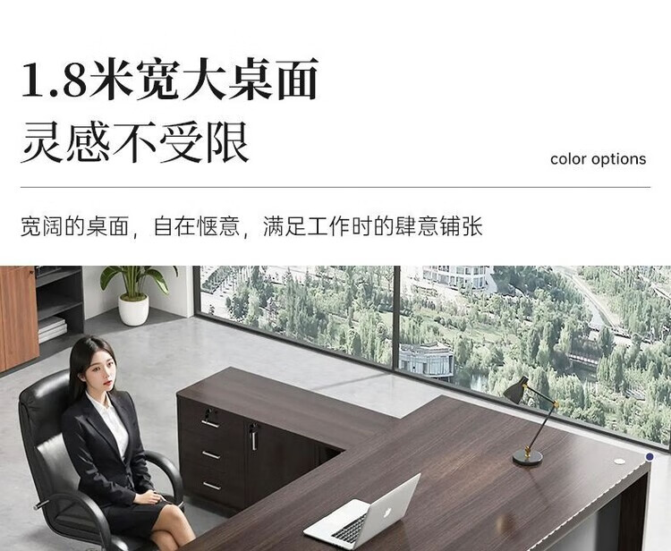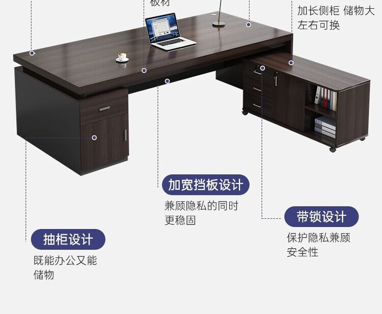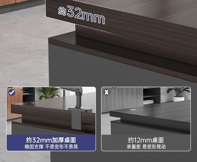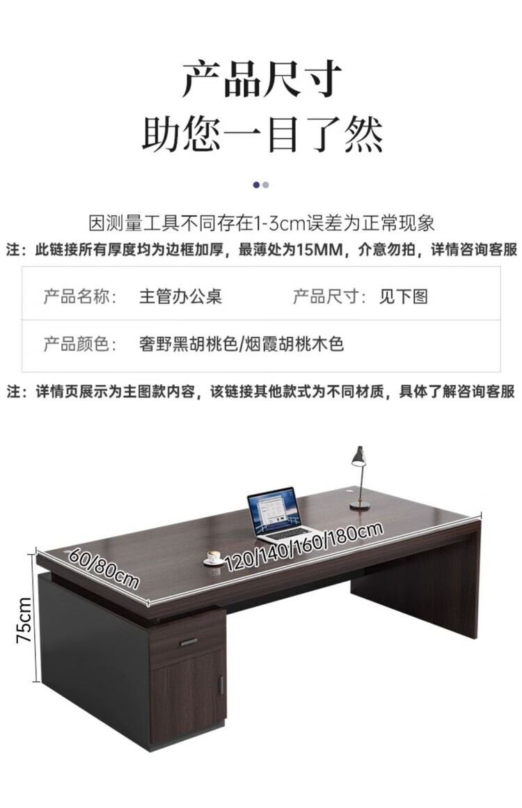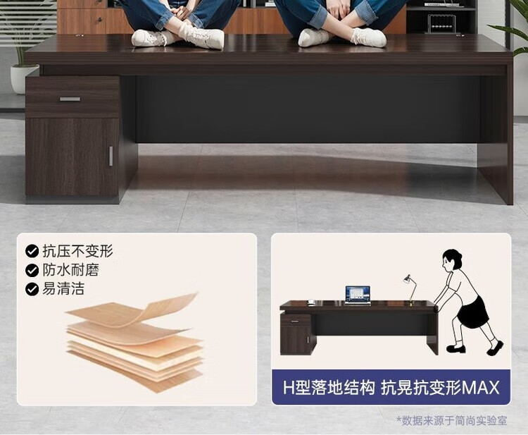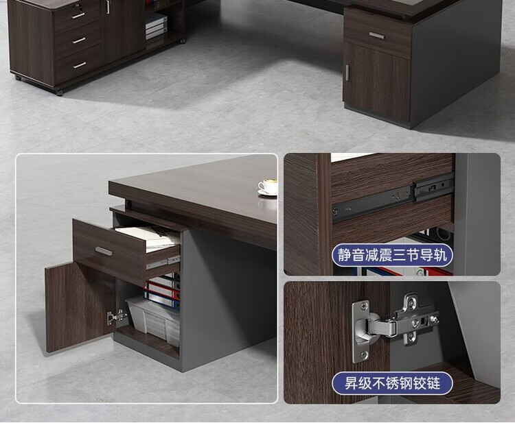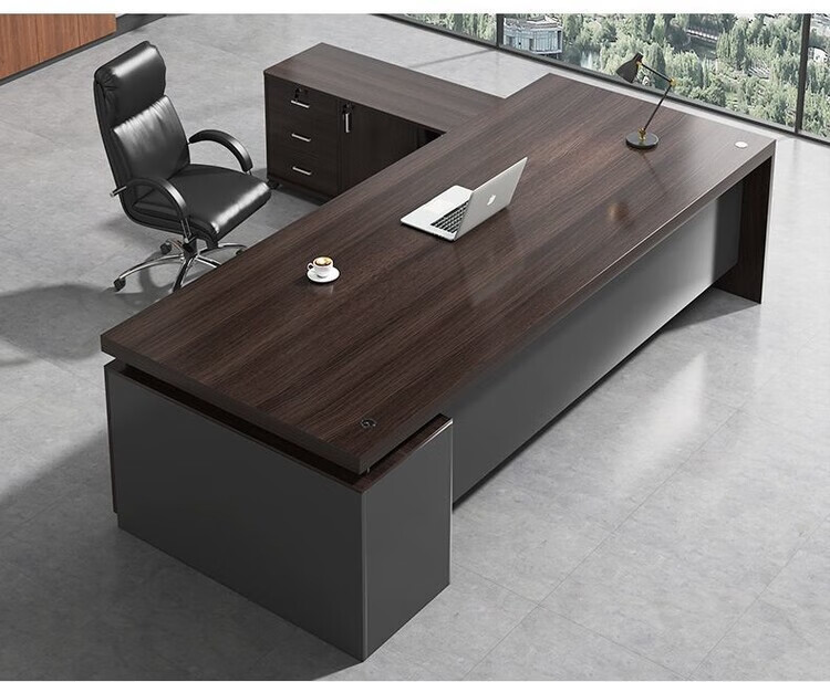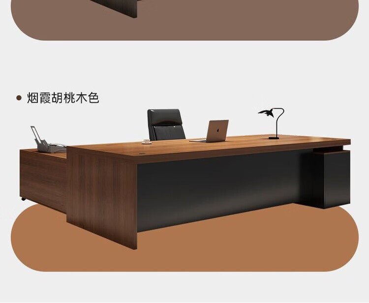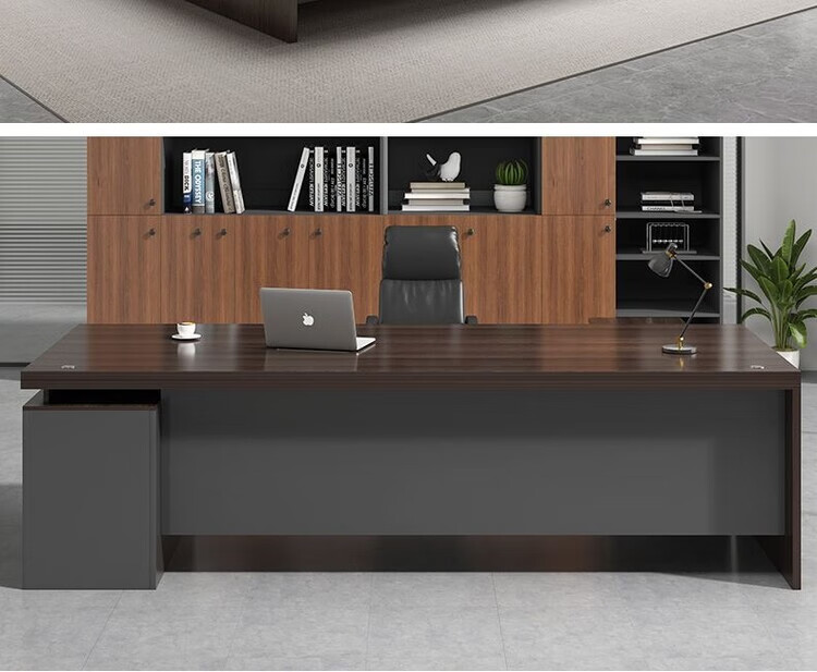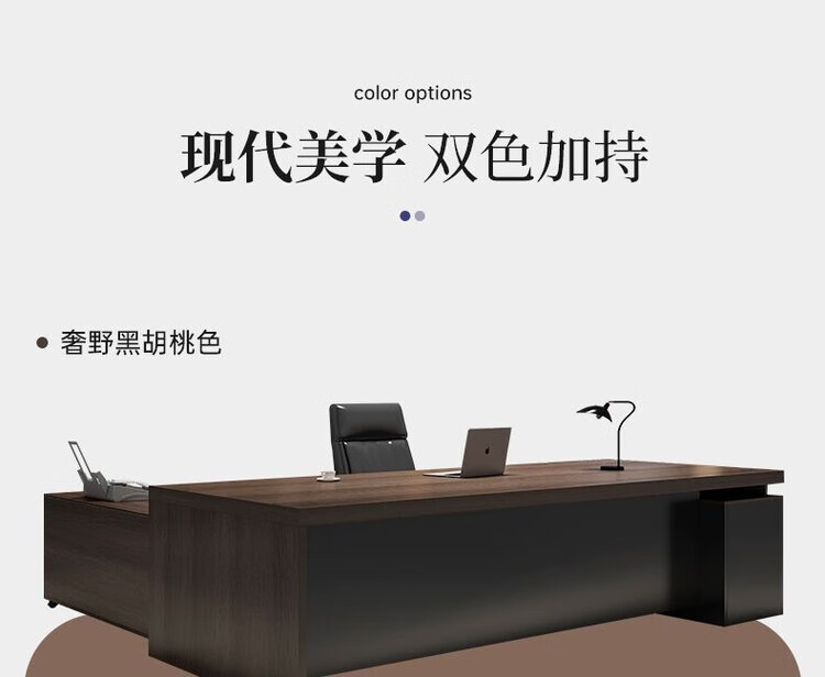 欣慕雅简约办公桌老板桌电脑桌台式商用高级办公室工位双人书桌椅组合 【推荐老板桌+32桌面】黑胡桃色180cm
