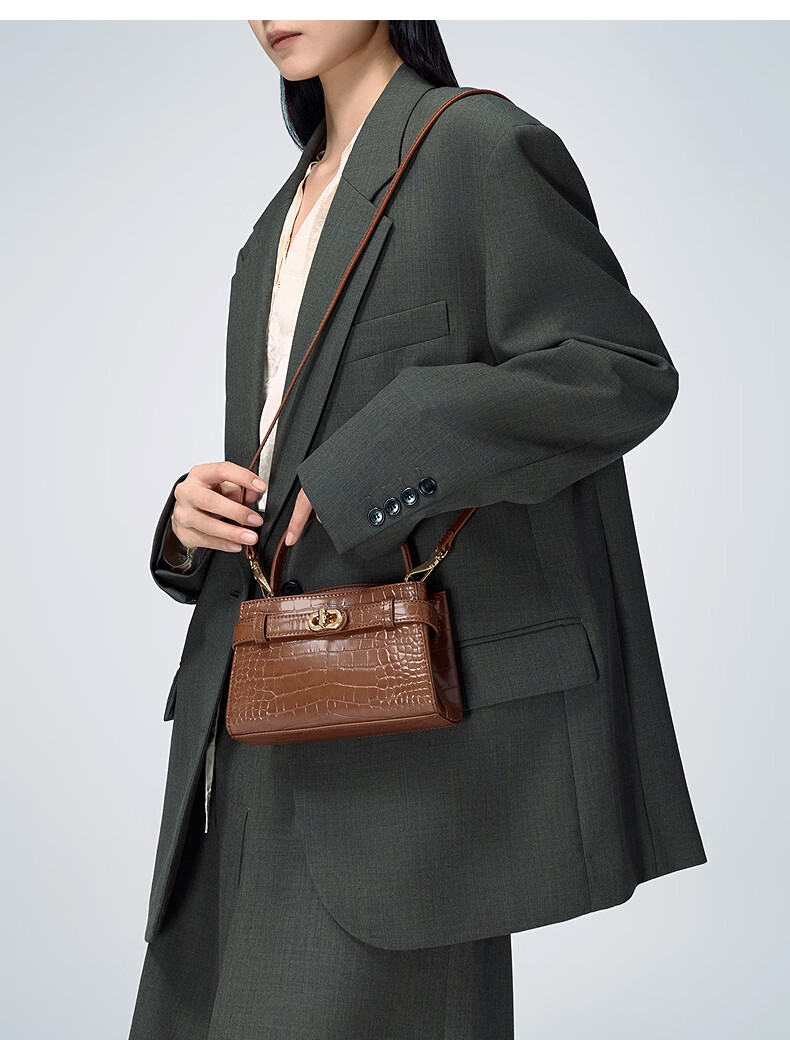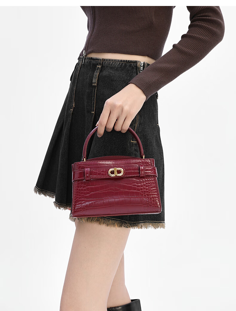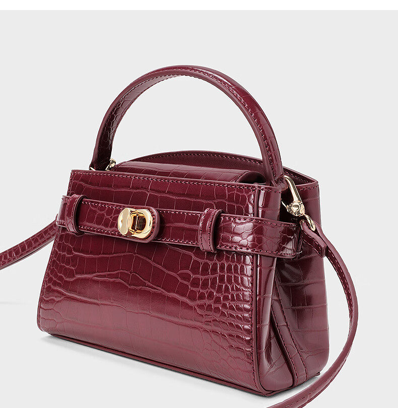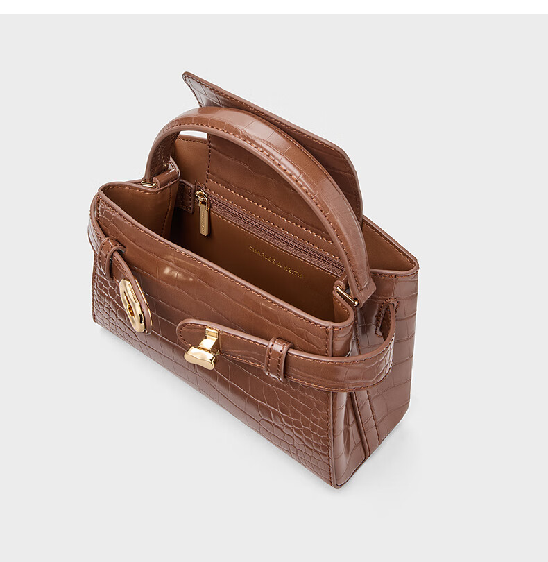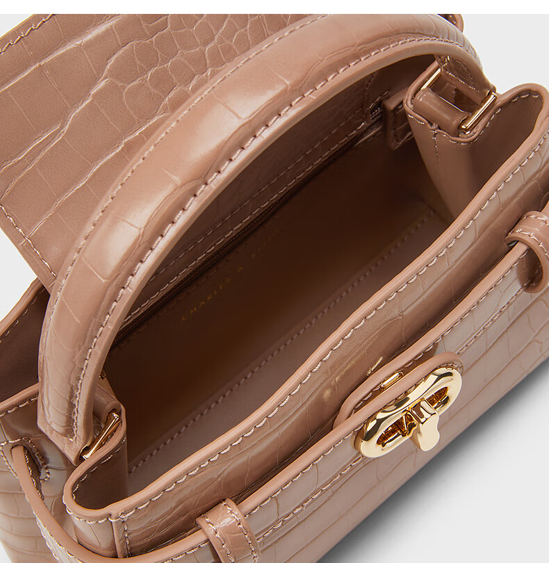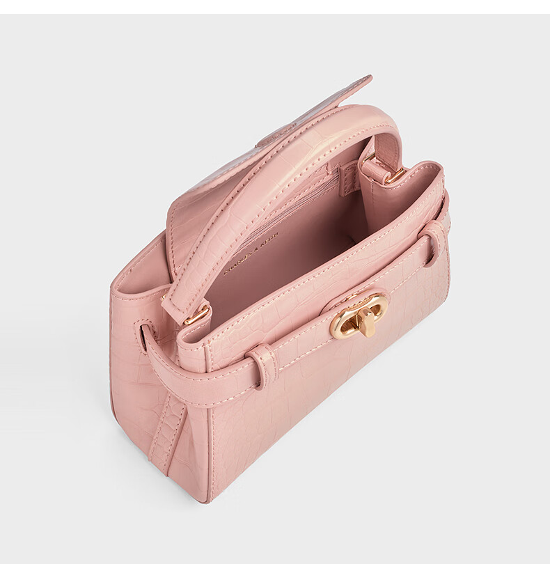 CHARLES&KEITH鳄鱼纹凯莉包手提斜挎婚包包女包生日礼物圣诞礼物CK2-50270880-1 粉红色Pink S