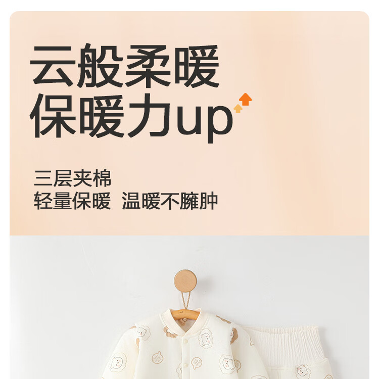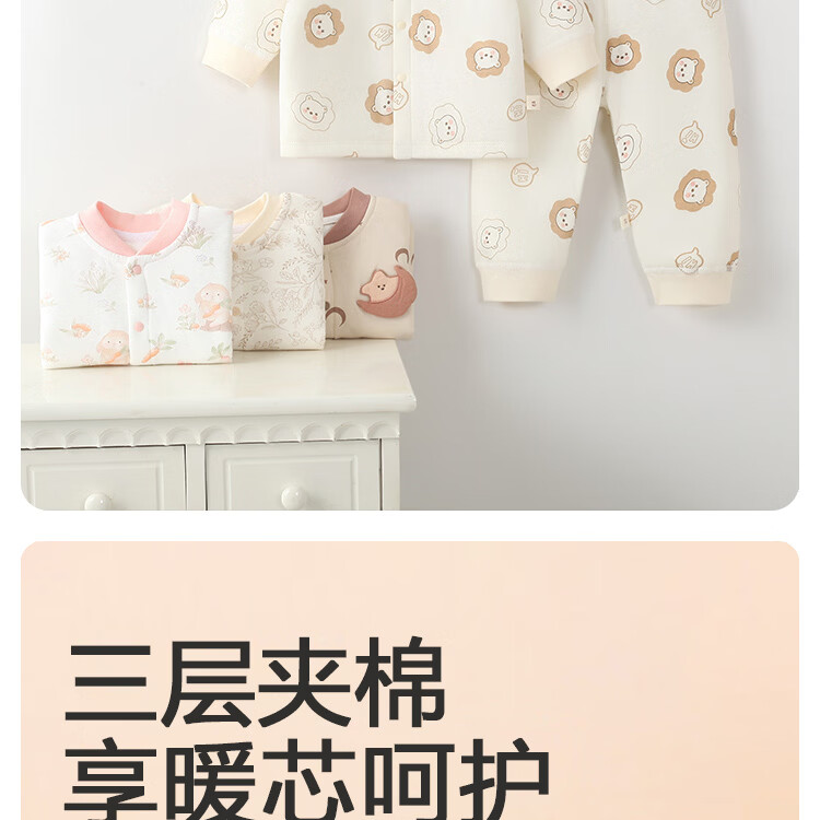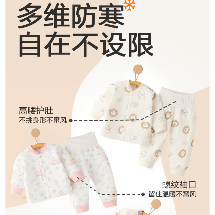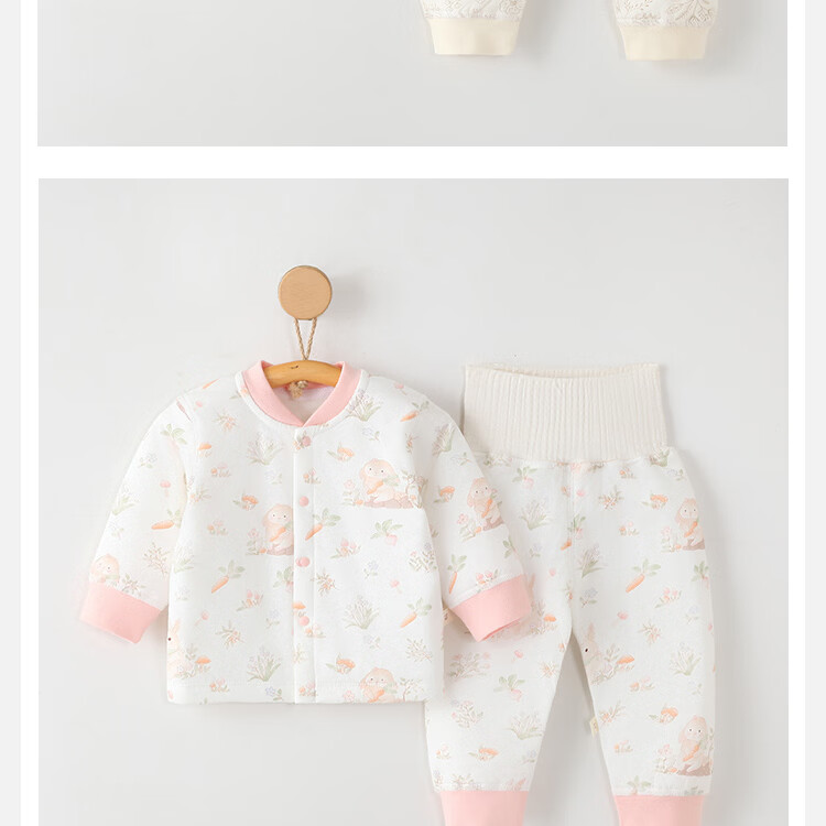 藤之木工房(T.moo)秋冬宝宝婴幼儿内衣睡衣分体夹棉60克薄棉保暖套装 田园萌兔 110 码