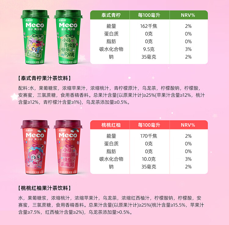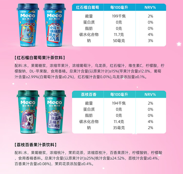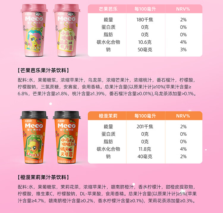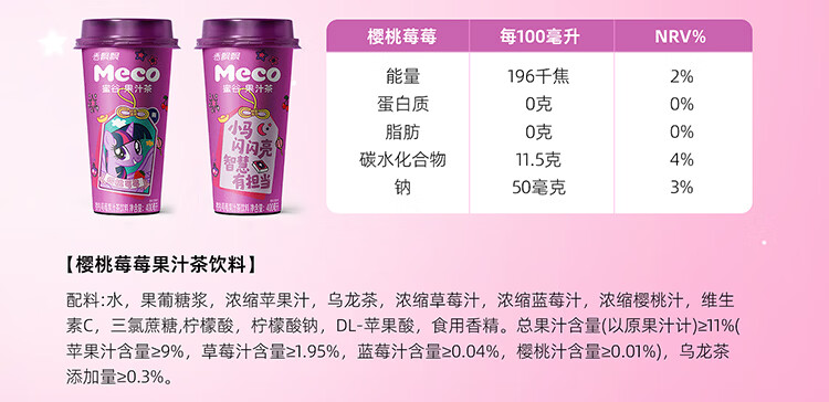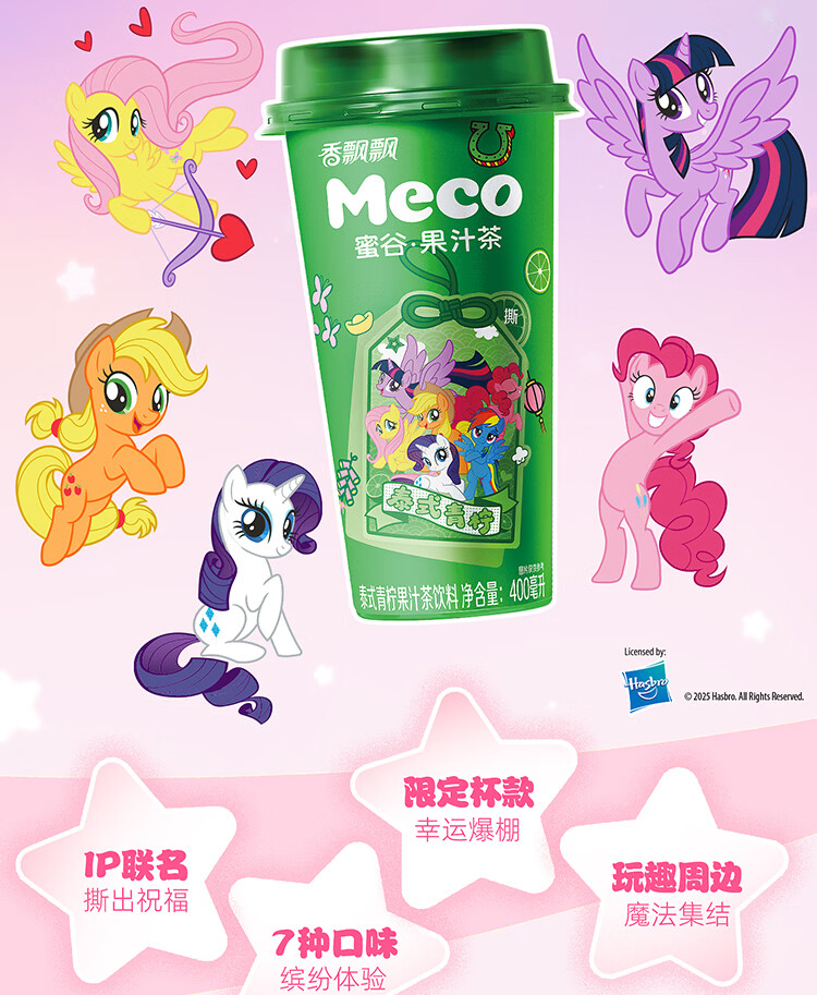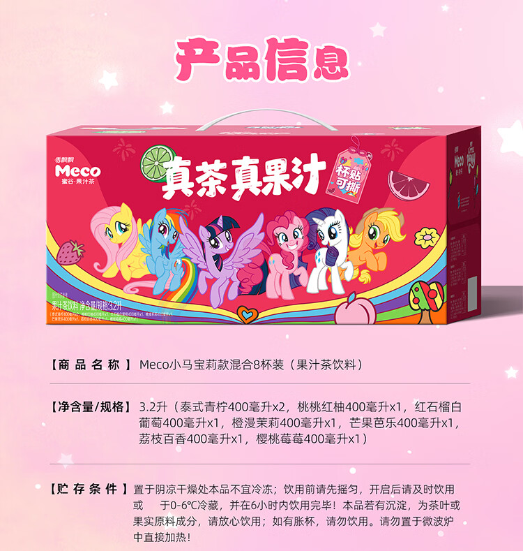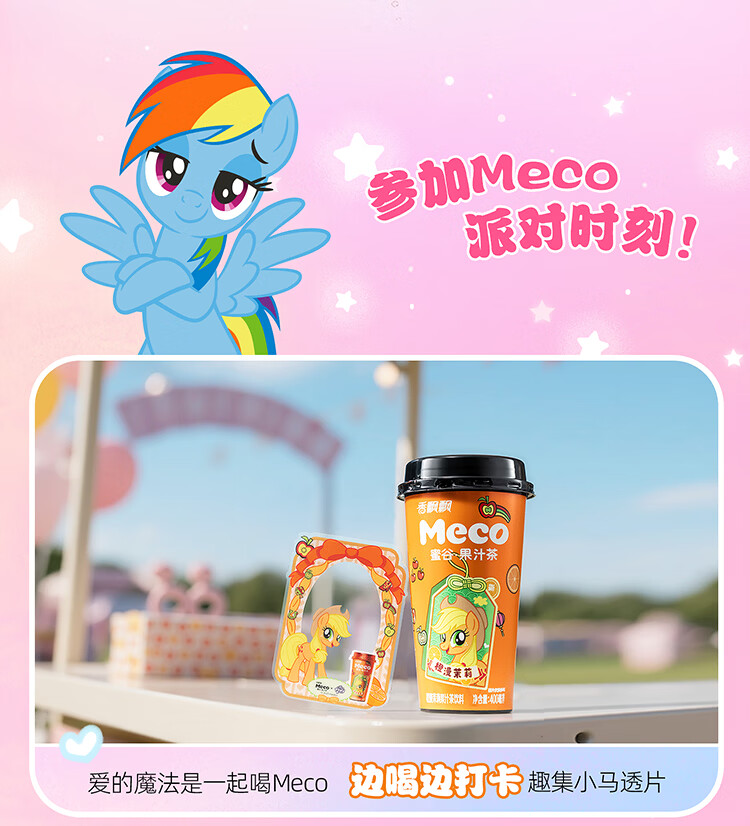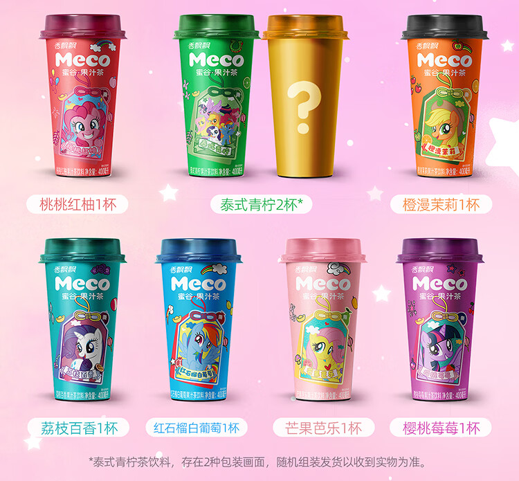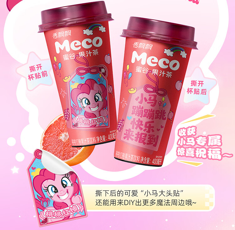 香飘飘【得小马宝莉周边】Meco小马宝莉款混合果茶400ml*8杯装 【Meco小马宝莉款1箱】得透片3张 400mL*8杯