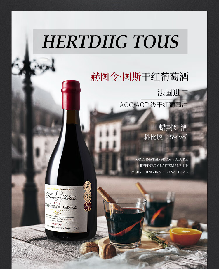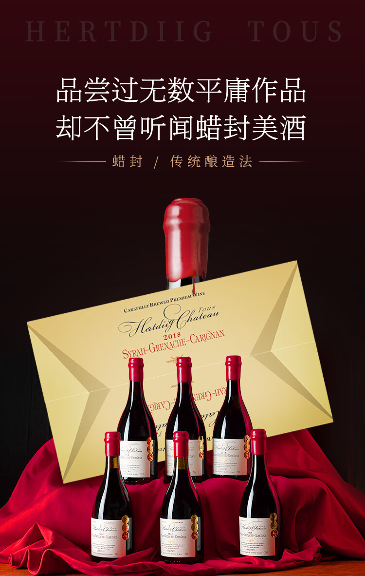 赫图令【AOP级】法国进口红酒干红葡萄酒整箱礼盒装送礼 【金奖/蜡封工艺15度】图斯1箱6瓶