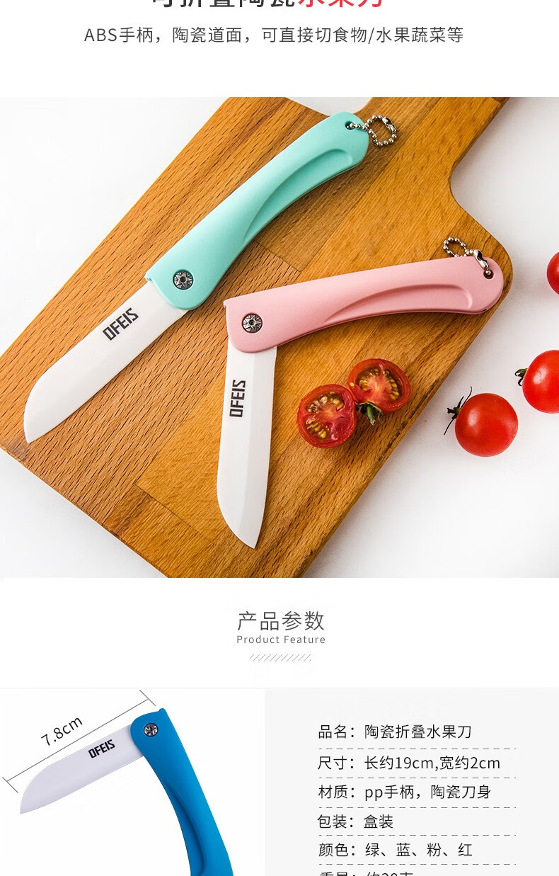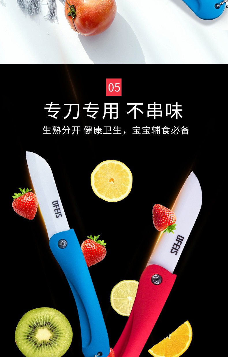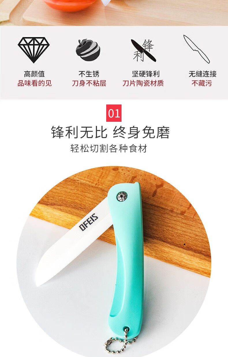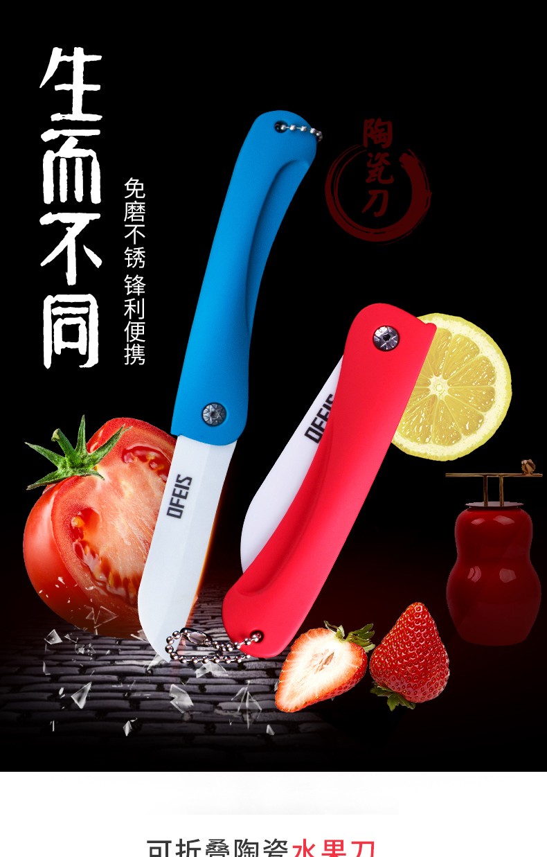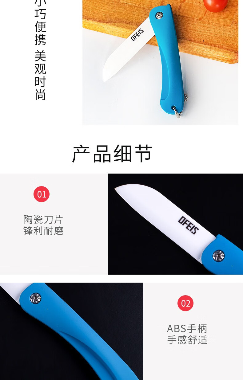 欧菲斯水果刀折叠陶瓷削皮小刀旅行西瓜刀家用迷你 便携随身德国 蓝色