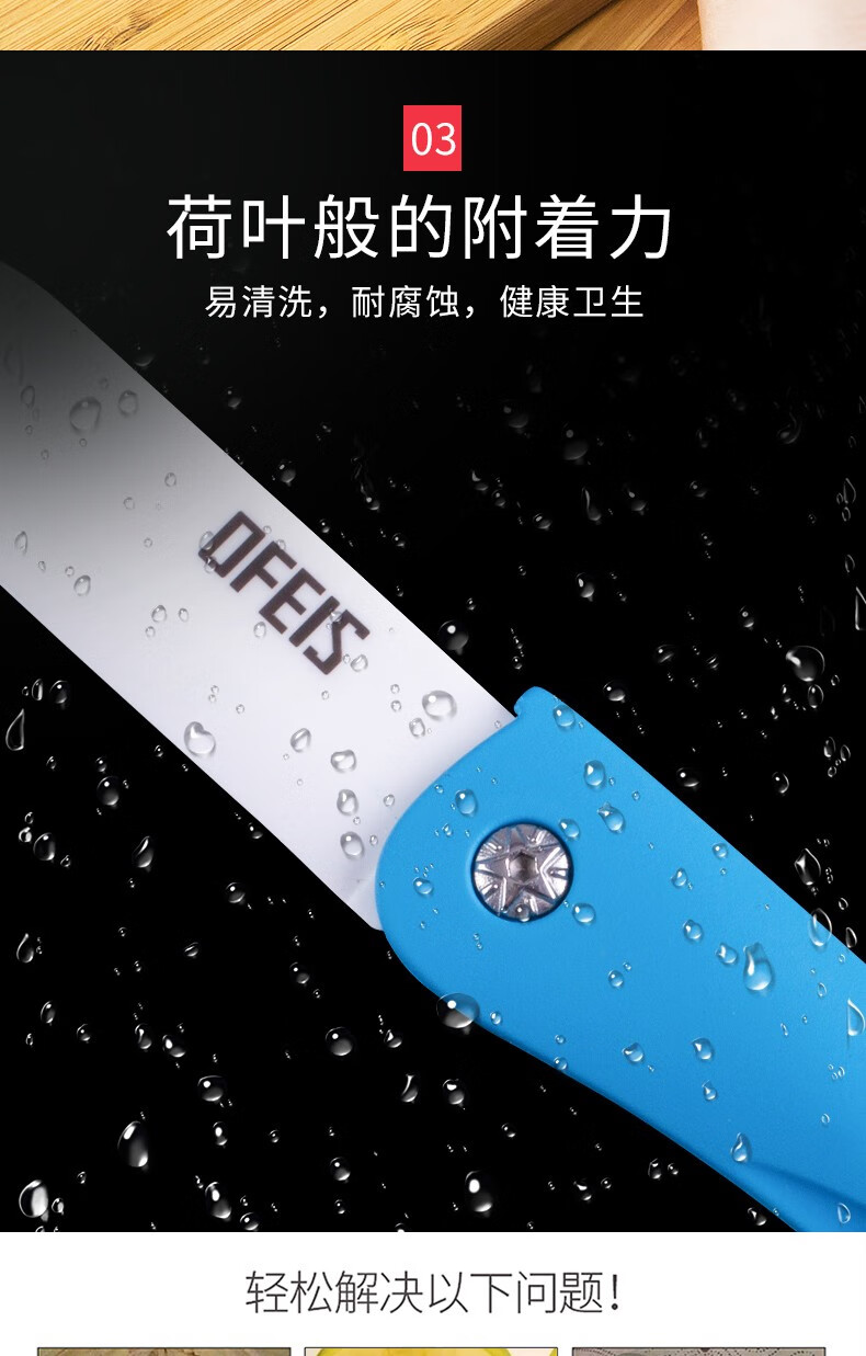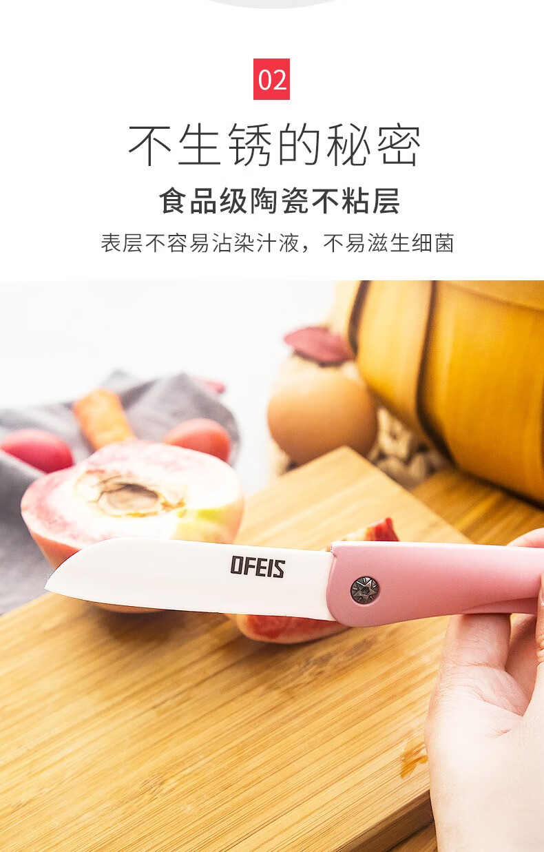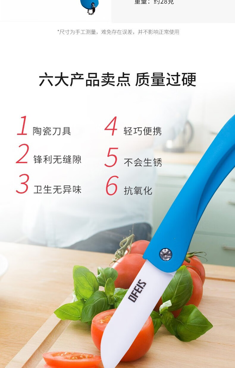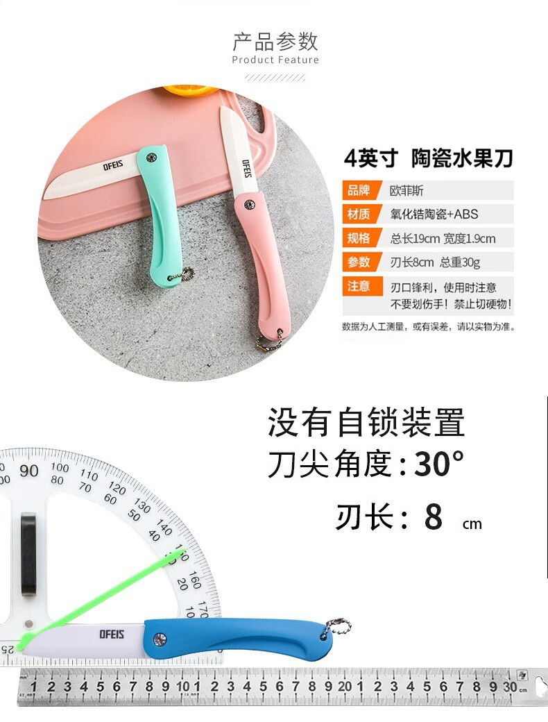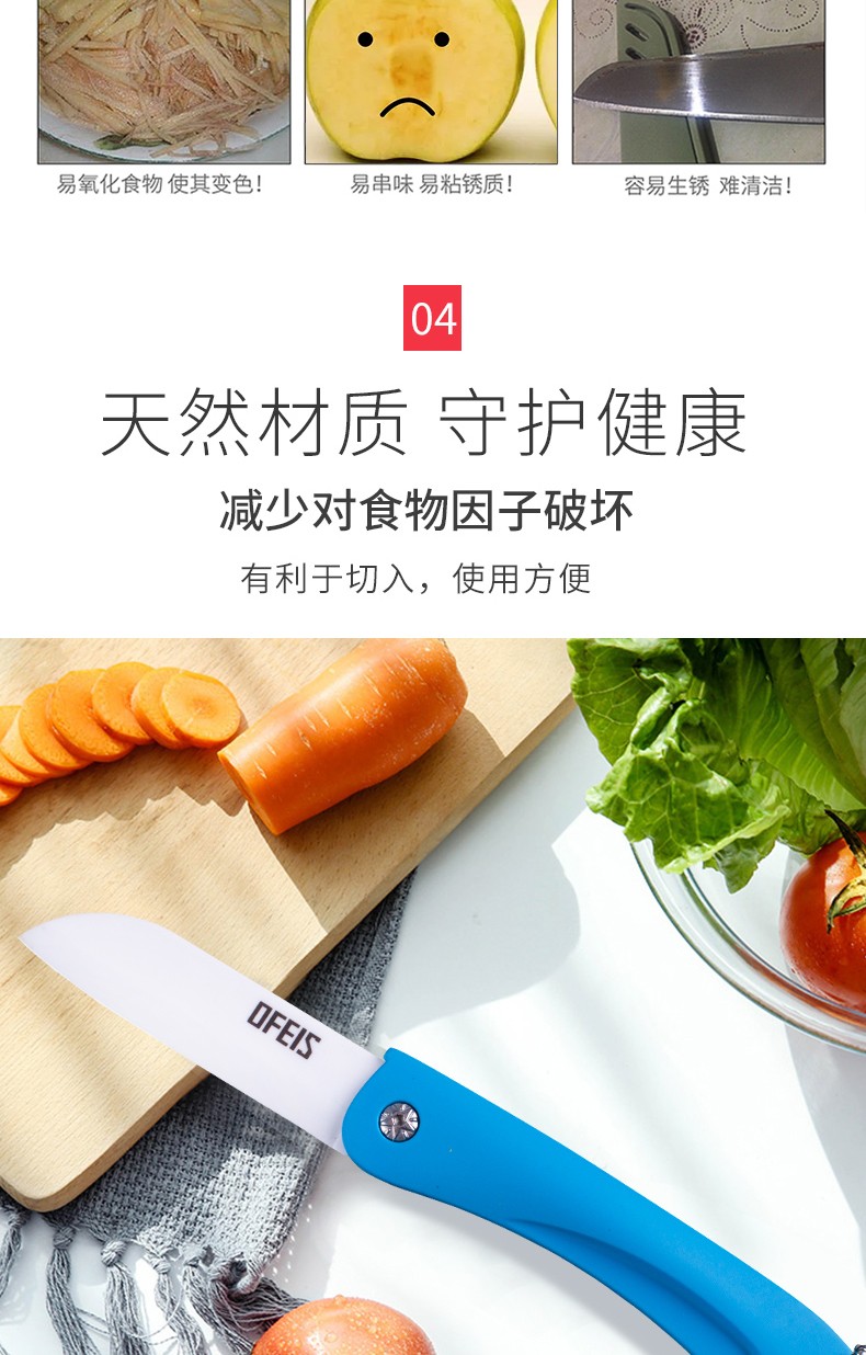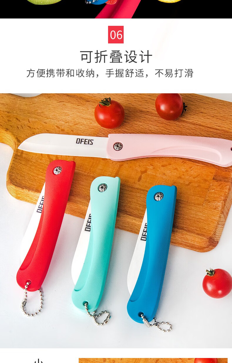 欧菲斯水果刀折叠陶瓷削皮小刀旅行西瓜刀家用迷你 便携随身德国 蓝色