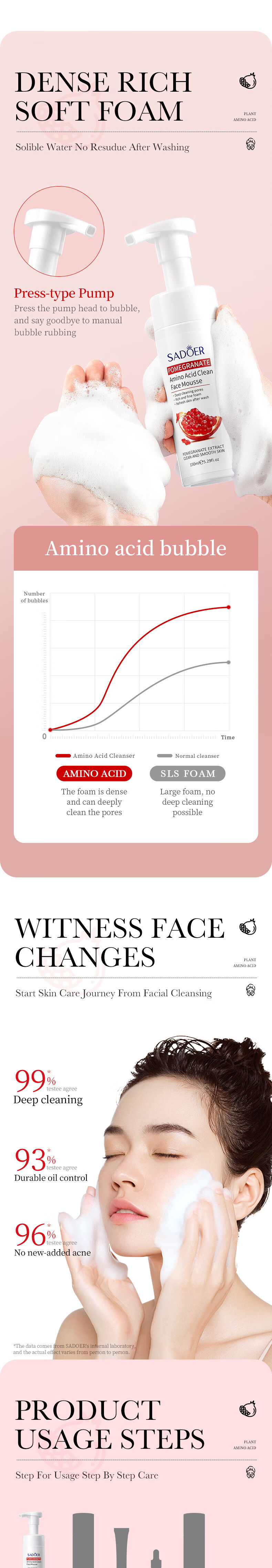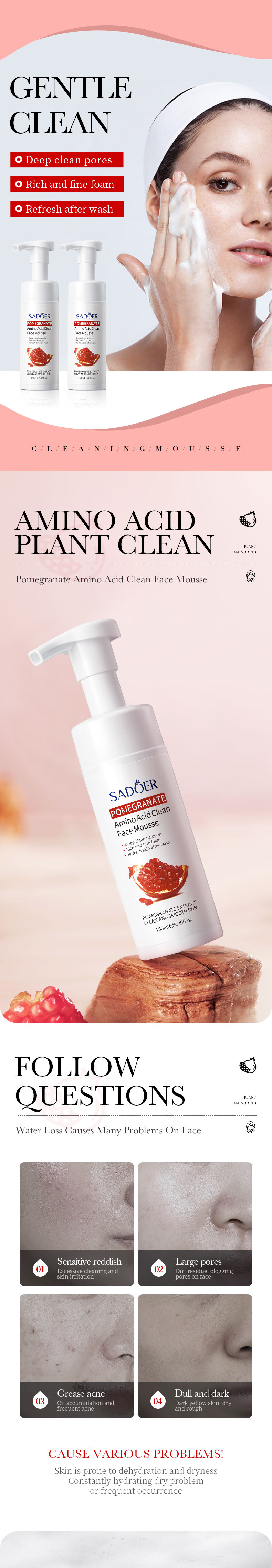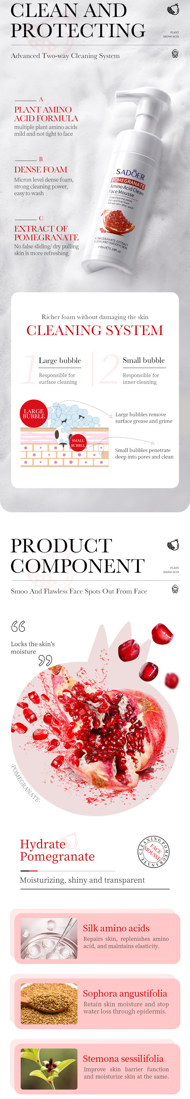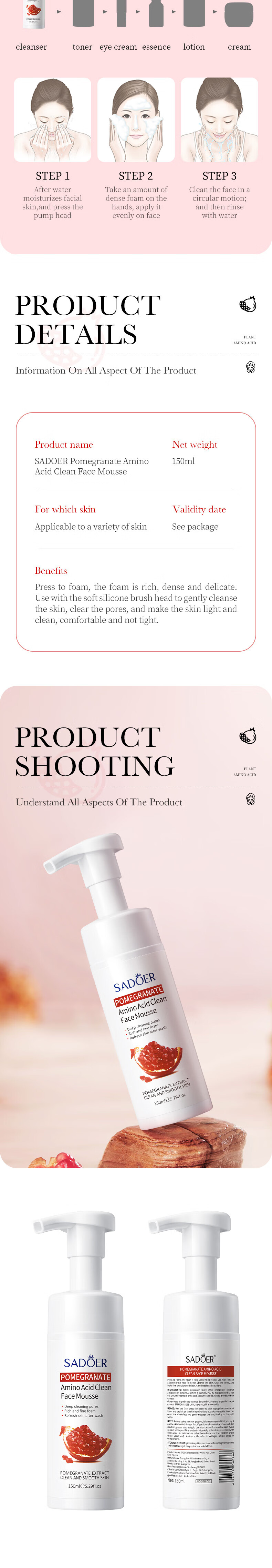 SADOER【厂家直发】石榴氨基酸洁面摩丝清洁去黑头去角质滋润洗面奶 pomegranate 洁面奶 150ml(