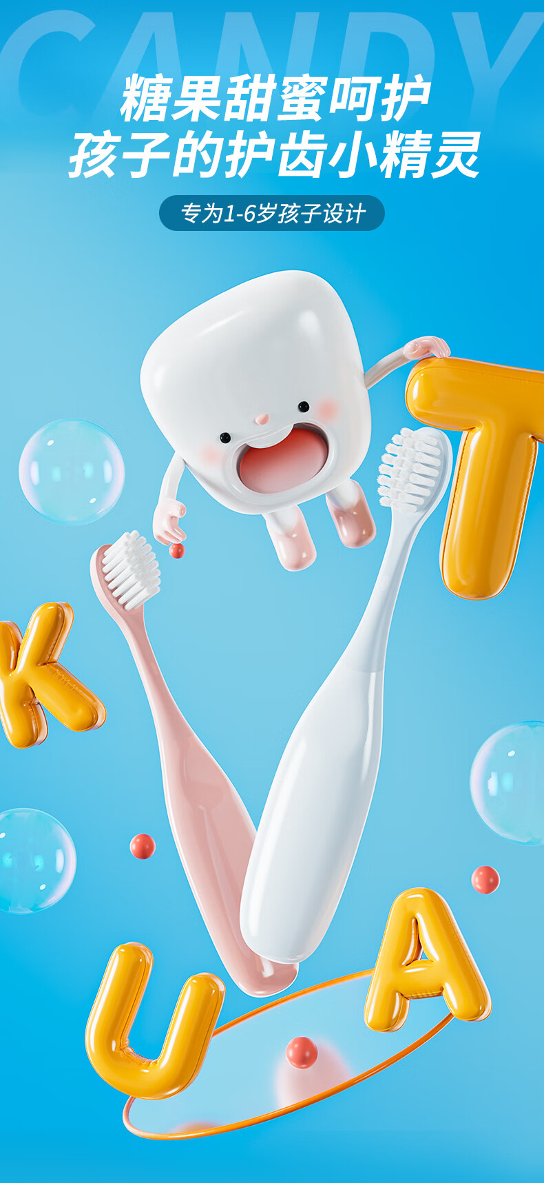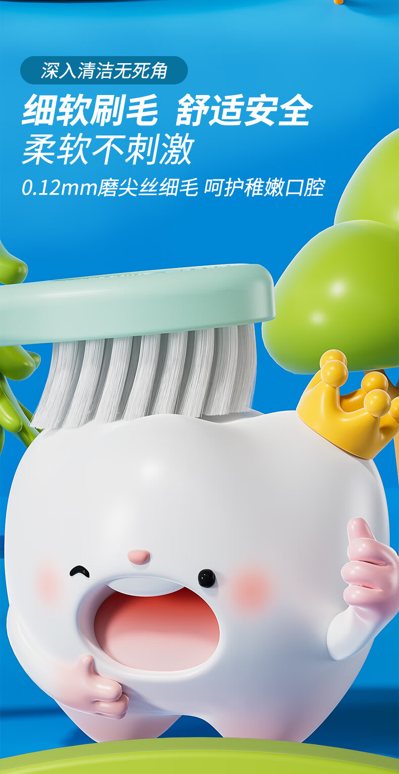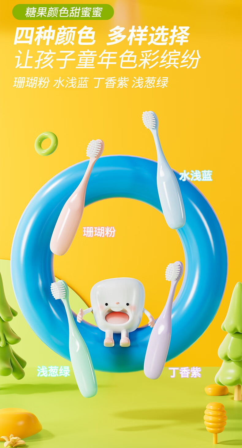 KUTA糖果儿童牙刷软毛1-2-3-4-5-6岁以上婴幼儿宝宝乳牙刷训练护龈齿 薄荷绿【1支装】
