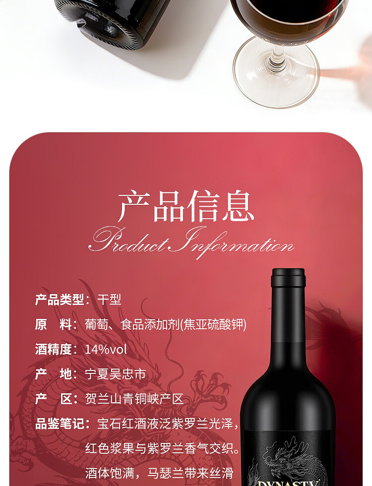 王朝壹号干红葡萄酒 贺兰山产区 750ml*2