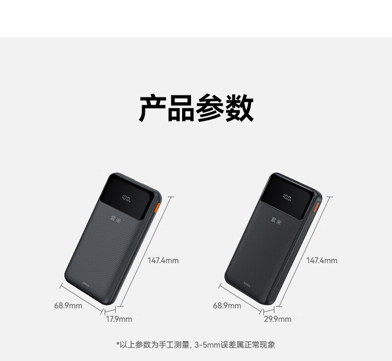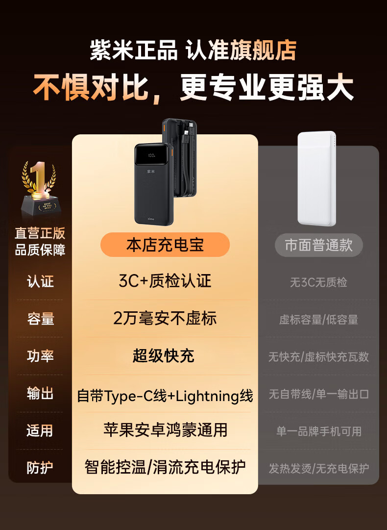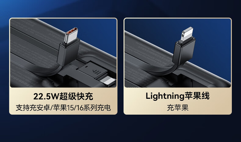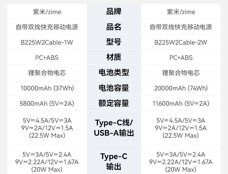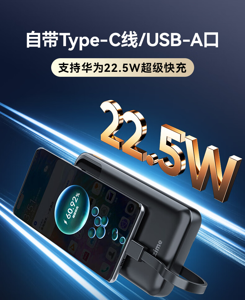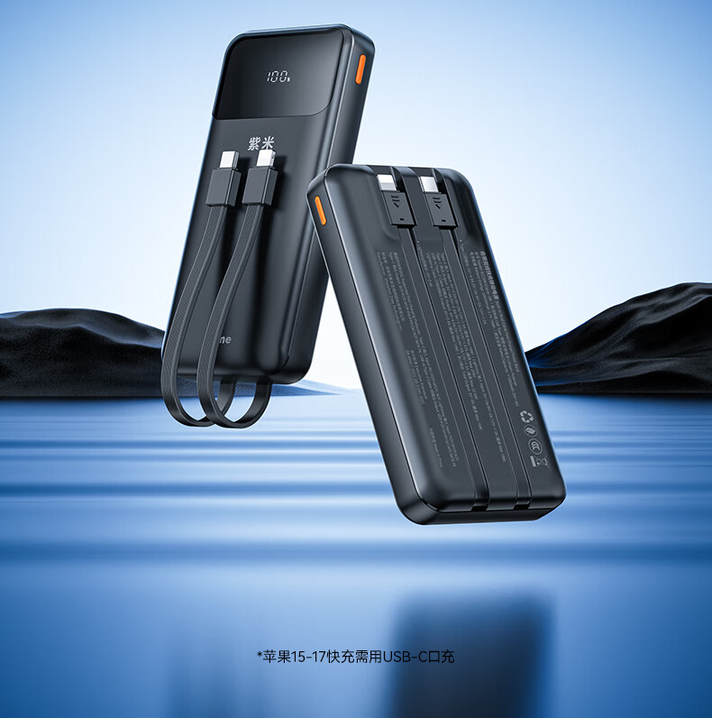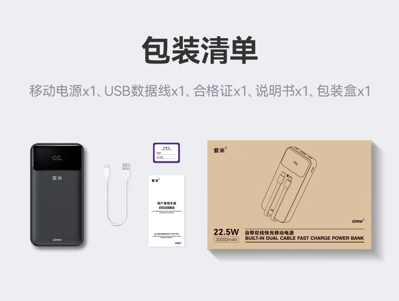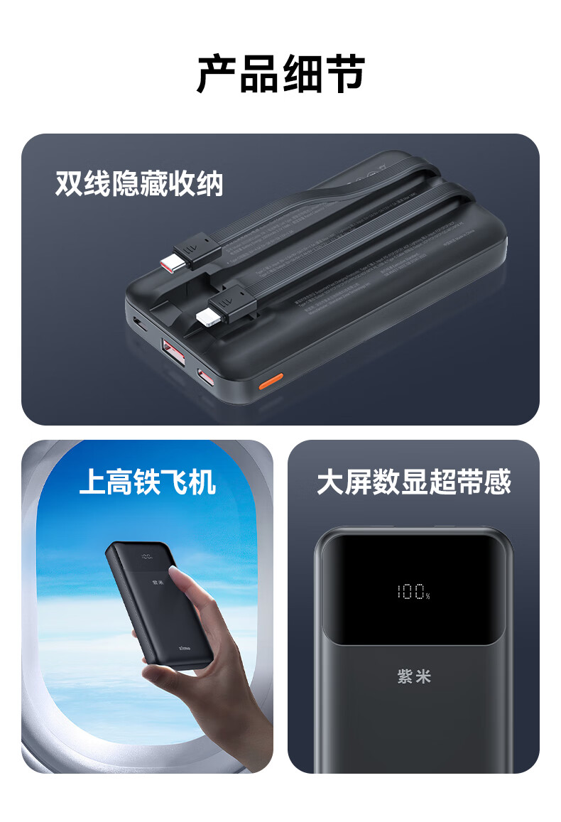 紫米【3C认证】自带线充电宝20000毫安大容量可上飞机22.5W超级快充移动电源适用苹果华为小米 【自带双线快充】20000mAh|可上飞机|白色 苹果安卓耳机等全都能充