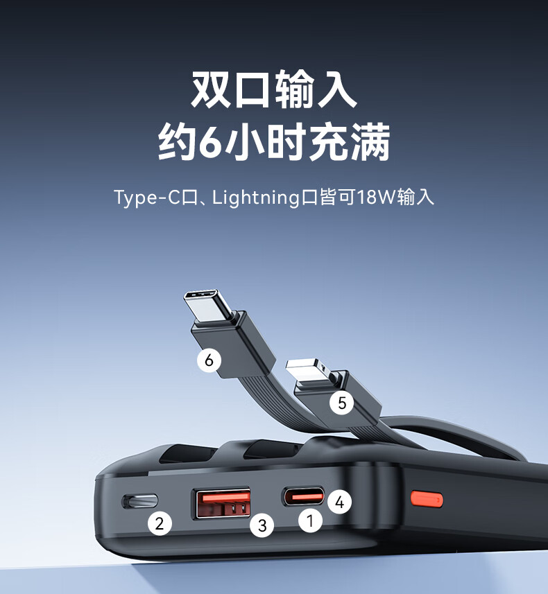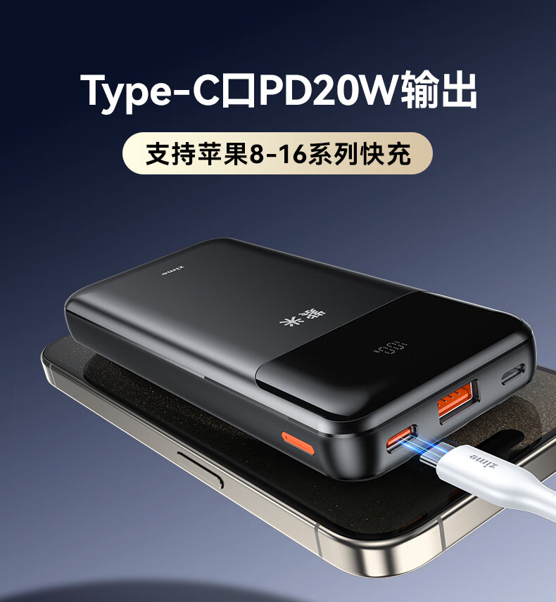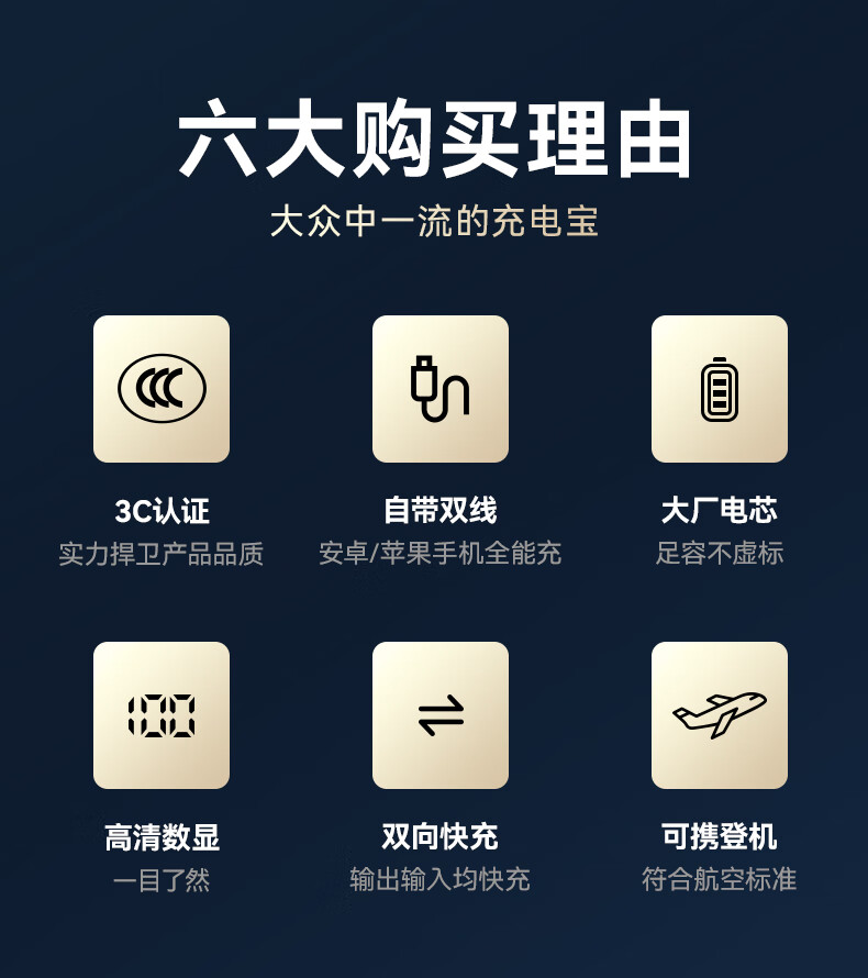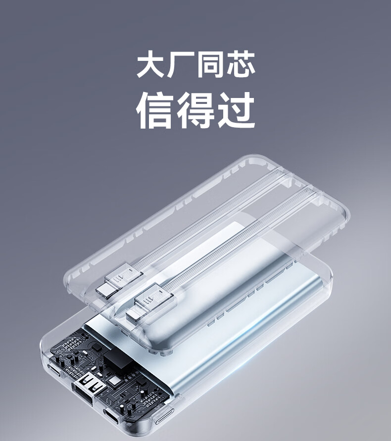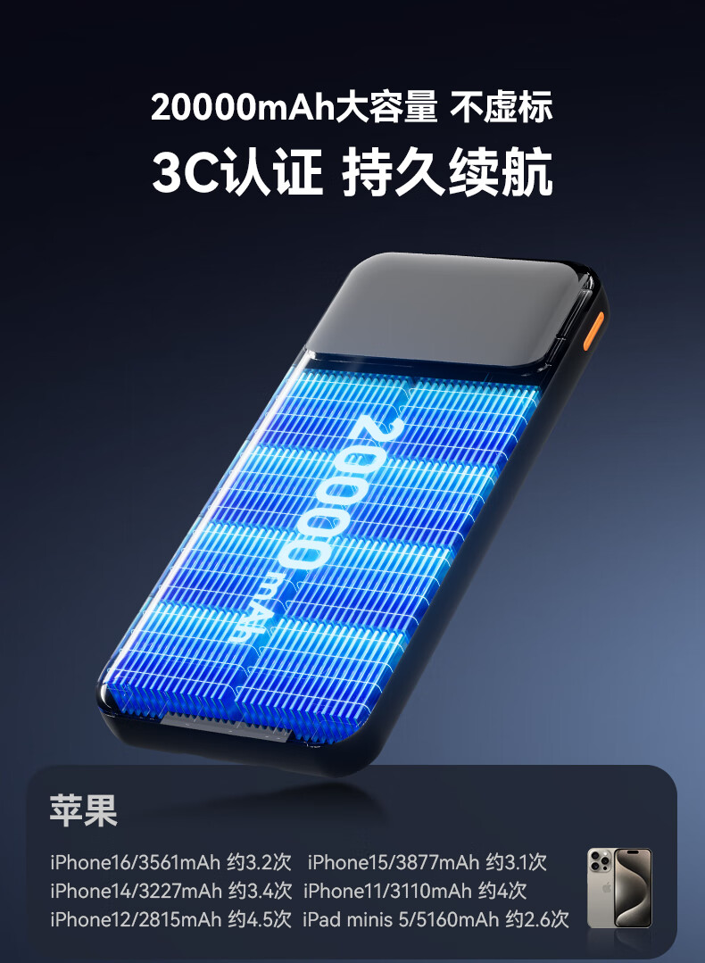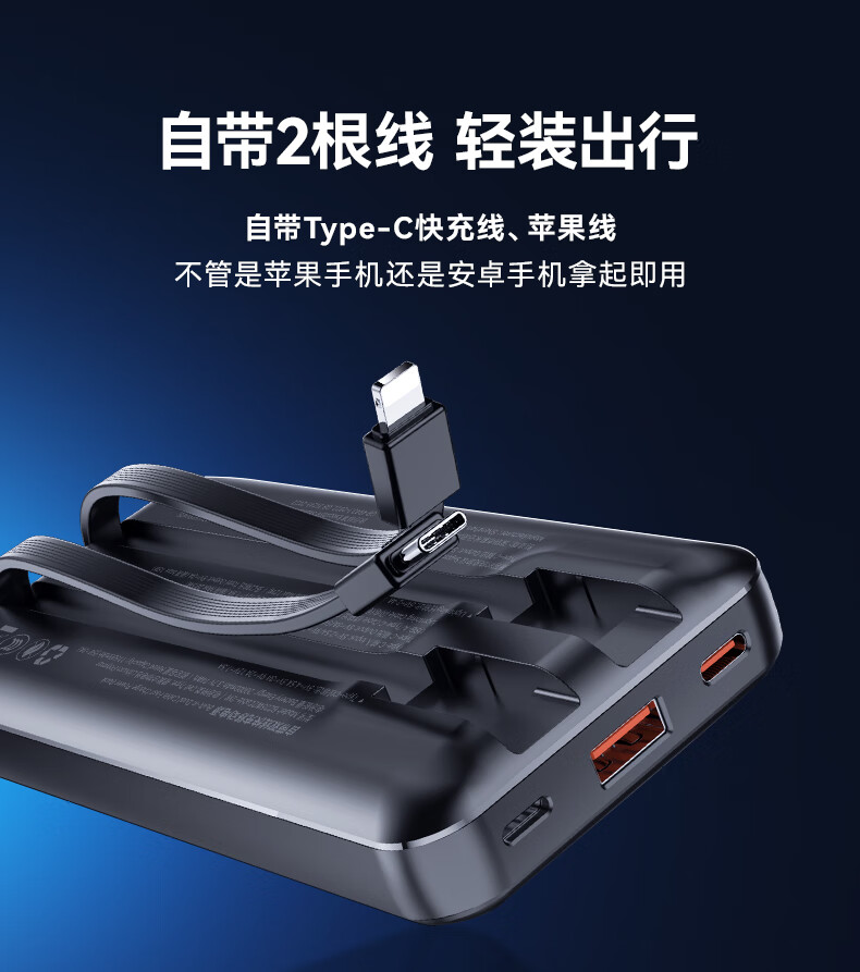 京东京造35W自带线充电宝20000毫安3c认证可上飞机京东自营移动电源适用户外苹果17小米17华为荣耀冰川蓝