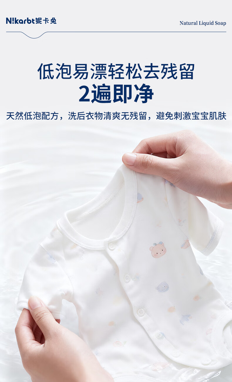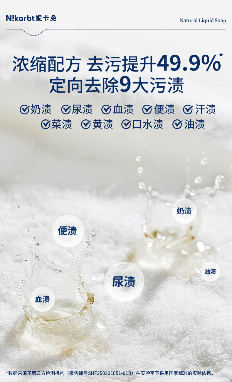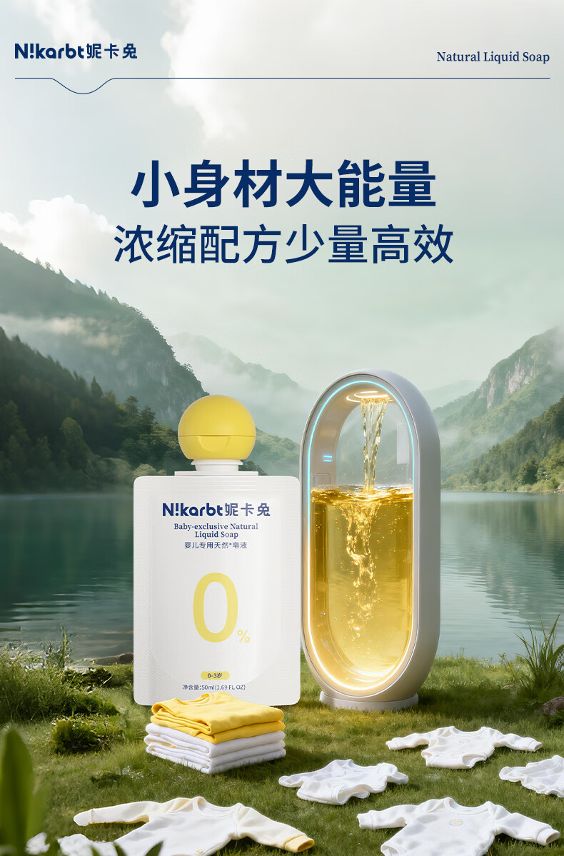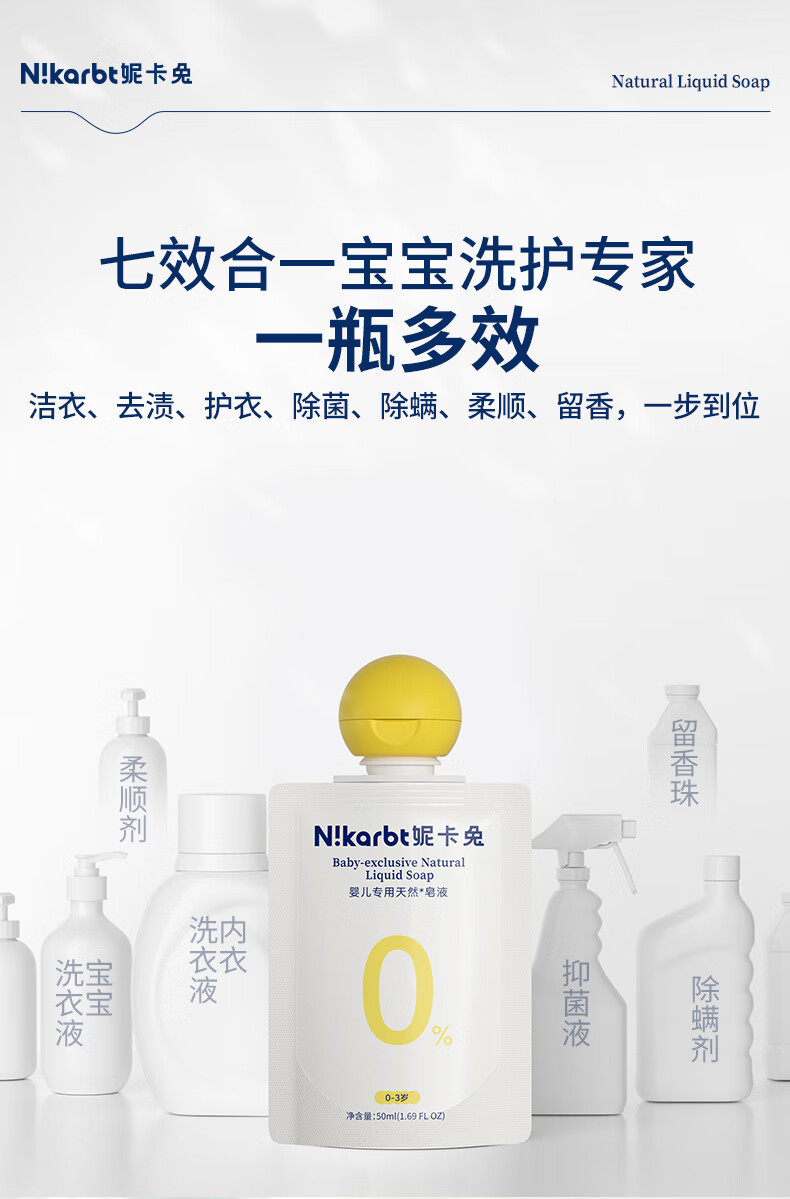 妮卡兔(Nikarbt)植物浓缩洗衣皂液儿童男孩女孩内衣专用多效去渍抑菌除螨 50ml*2袋【宝妈组合旅行装】植物浓缩皂液
