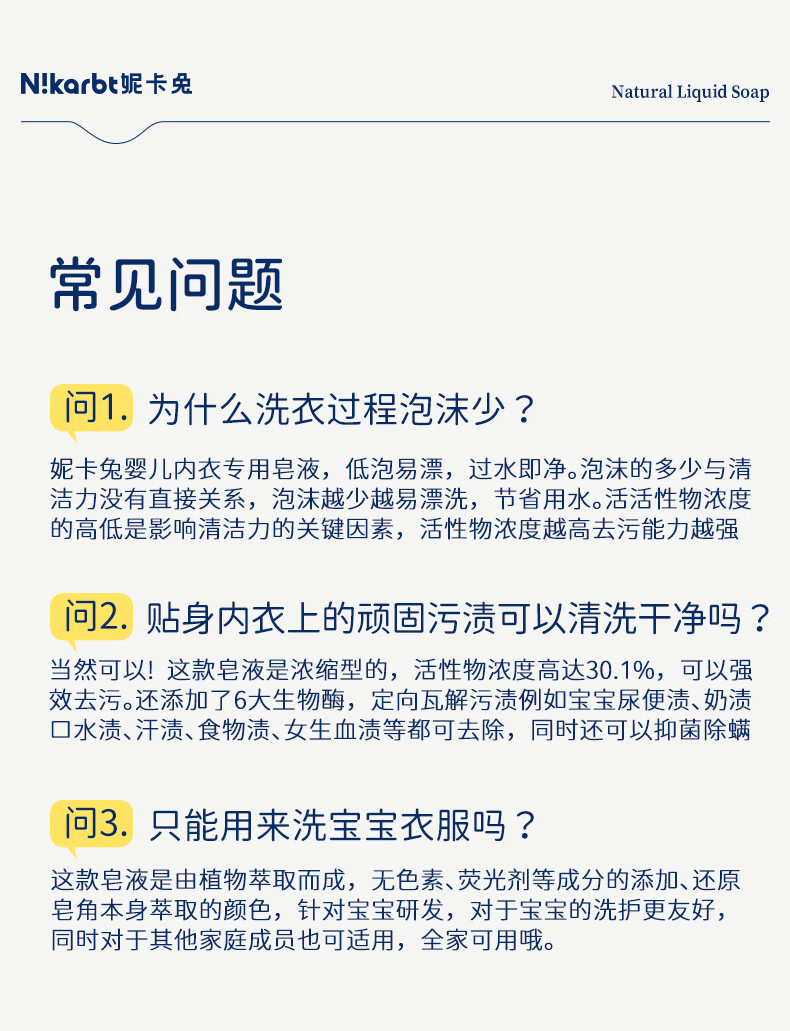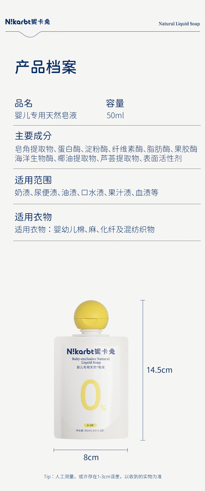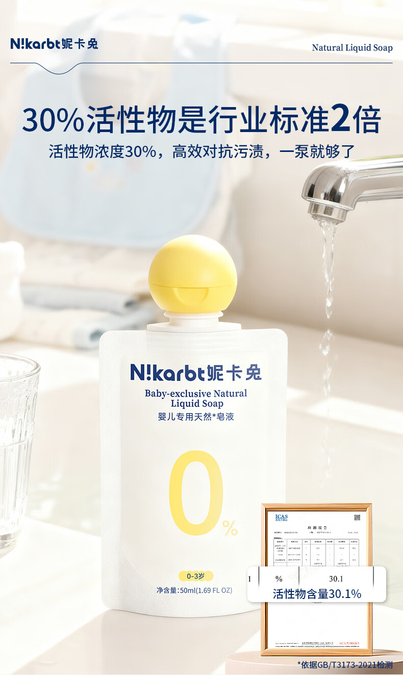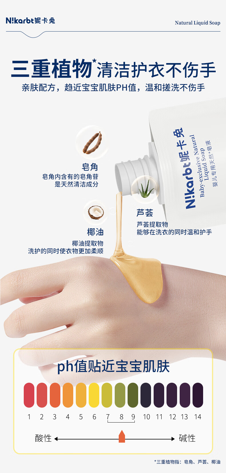妮卡兔(Nikarbt)植物浓缩洗衣皂液儿童男孩女孩内衣专用多效去渍抑菌除螨 50ml*2袋【宝妈组合旅行装】植物浓缩皂液