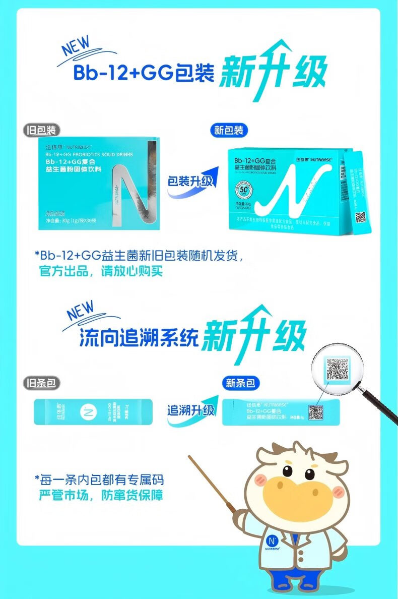 纽倍思(nutribase)Bb-12 GG复合益生菌 动物双歧杆菌+鼠李糖乳杆菌 肠胃道益生菌粉 30g(1g*30袋)