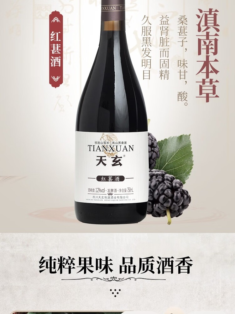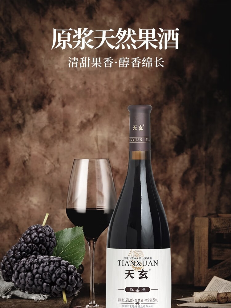 天玄红葚酒 果酒 桑葚酒 750ml/瓶