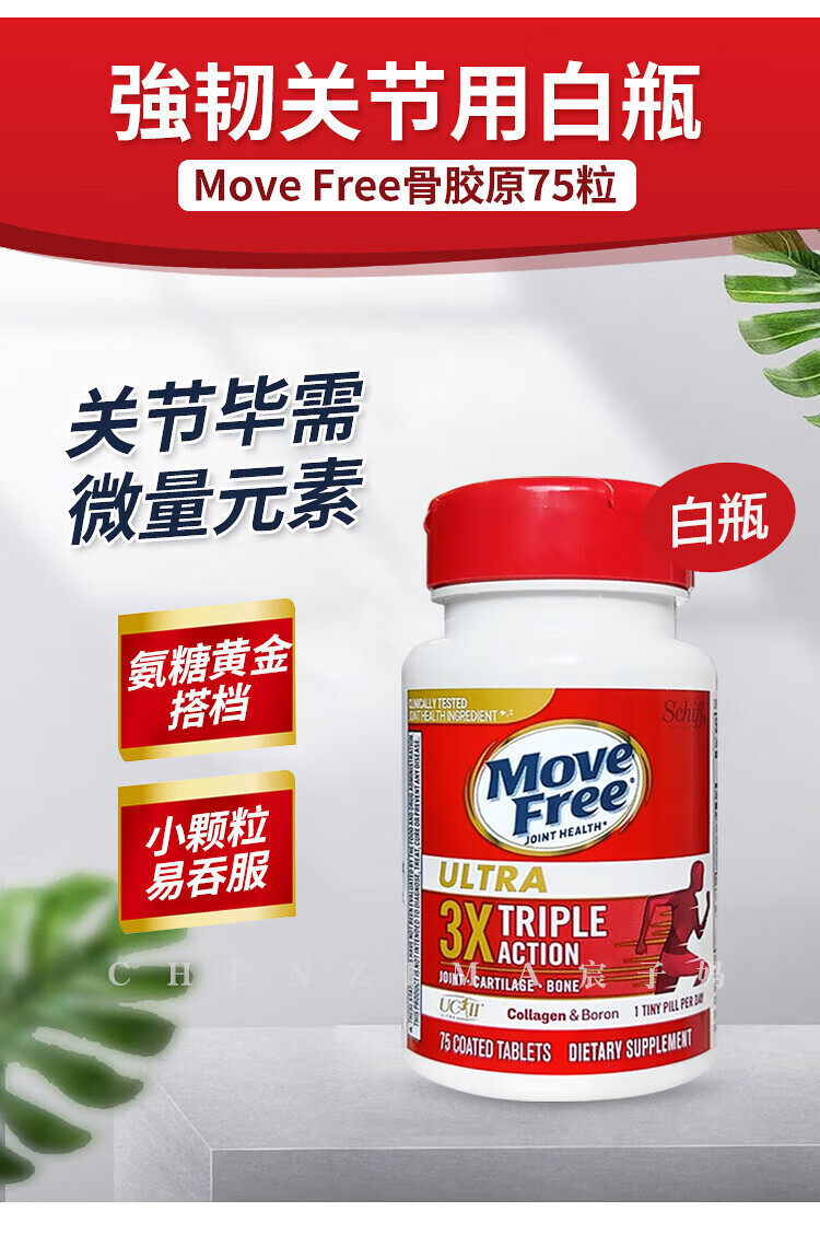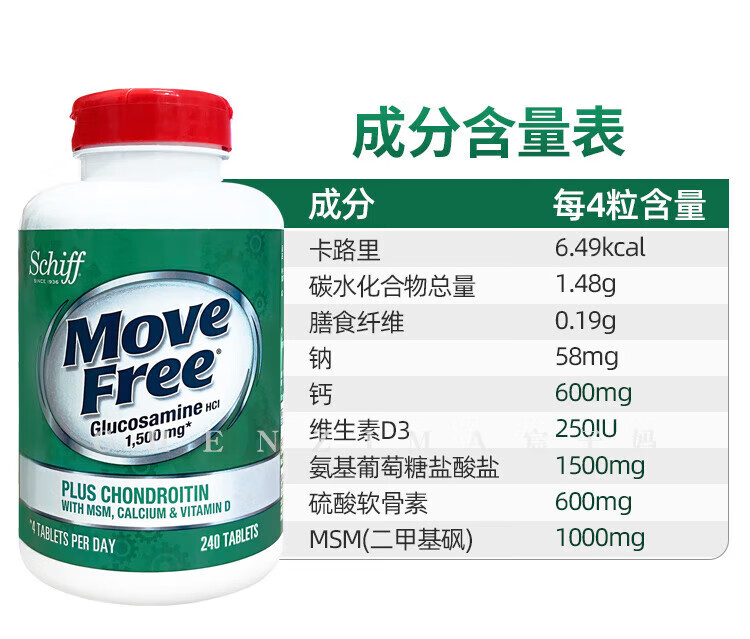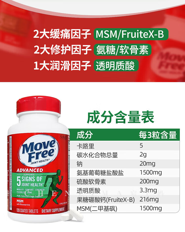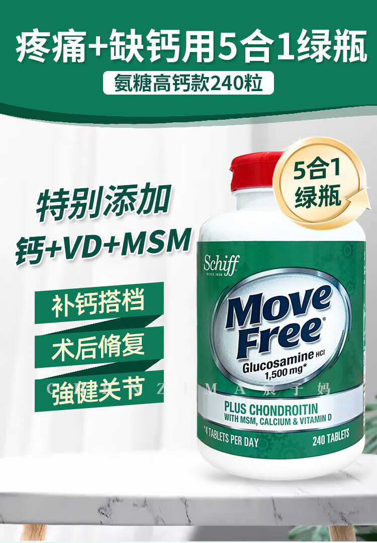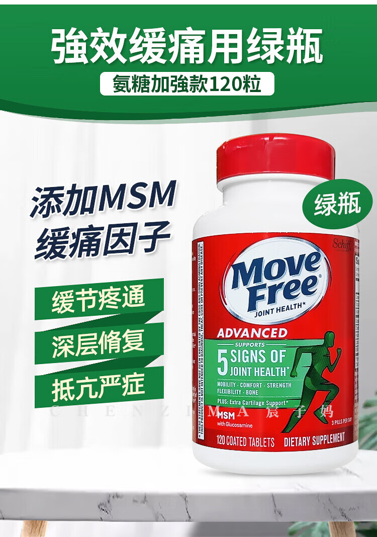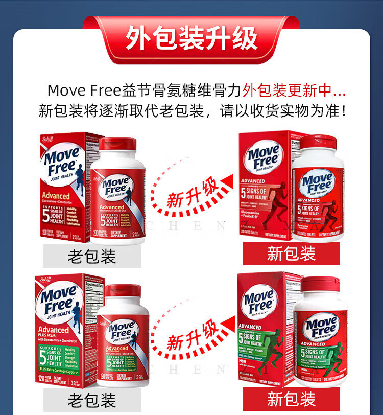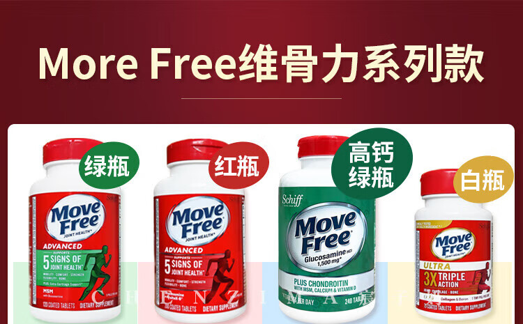 美国Move Free维骨力氨糖健康关节绿瓶软骨素关节灵高钙氨糖 120粒*2瓶