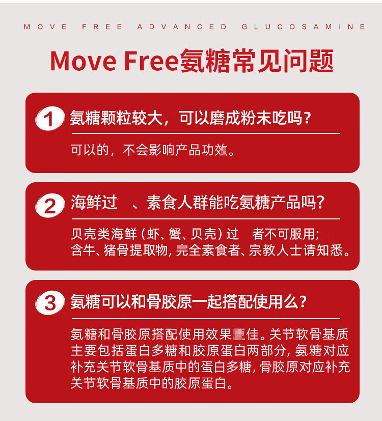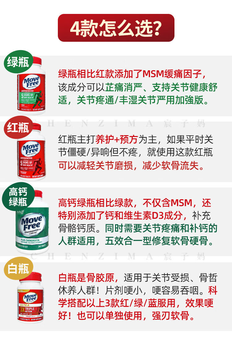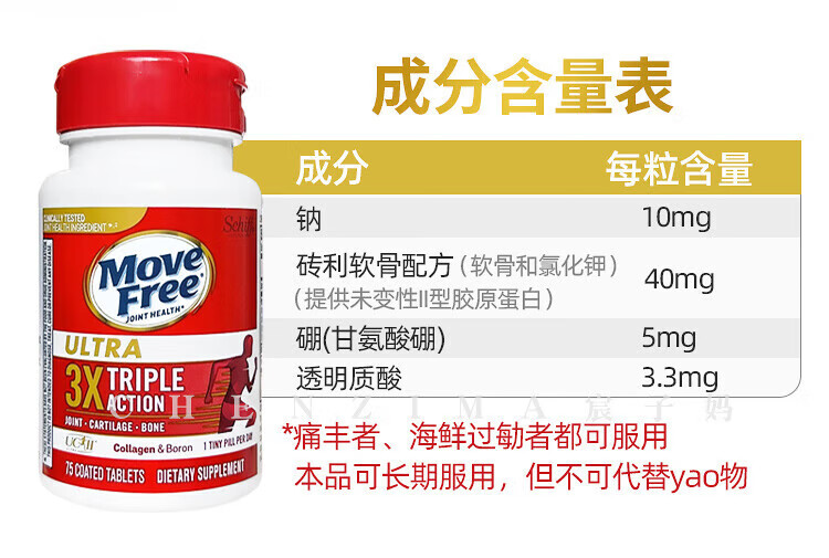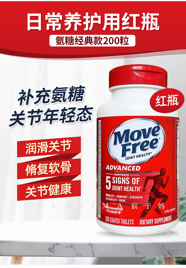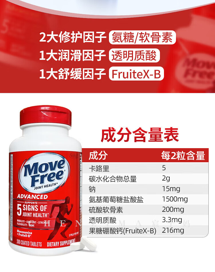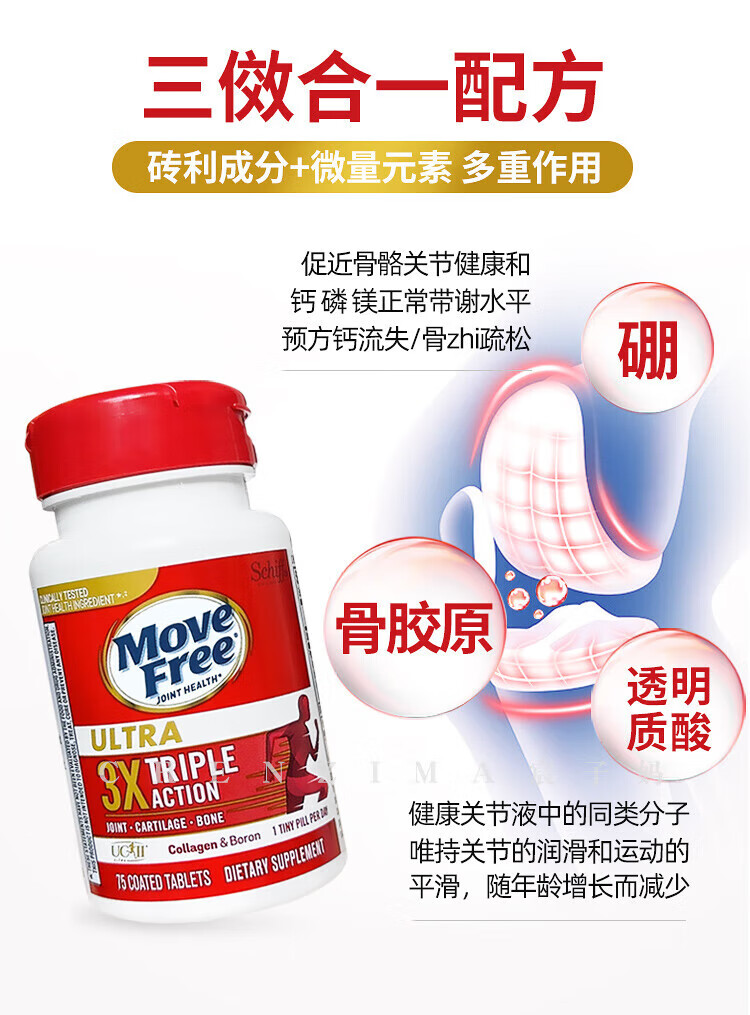 美国Move Free维骨力氨糖健康关节绿瓶软骨素关节灵高钙氨糖 120粒*2瓶