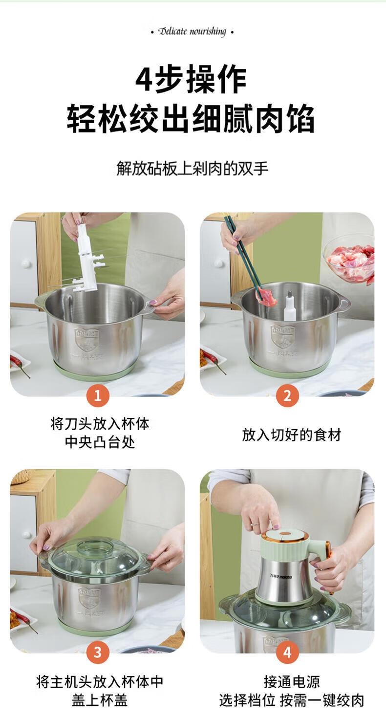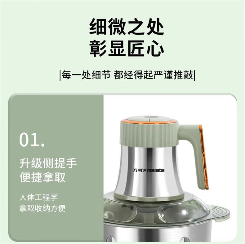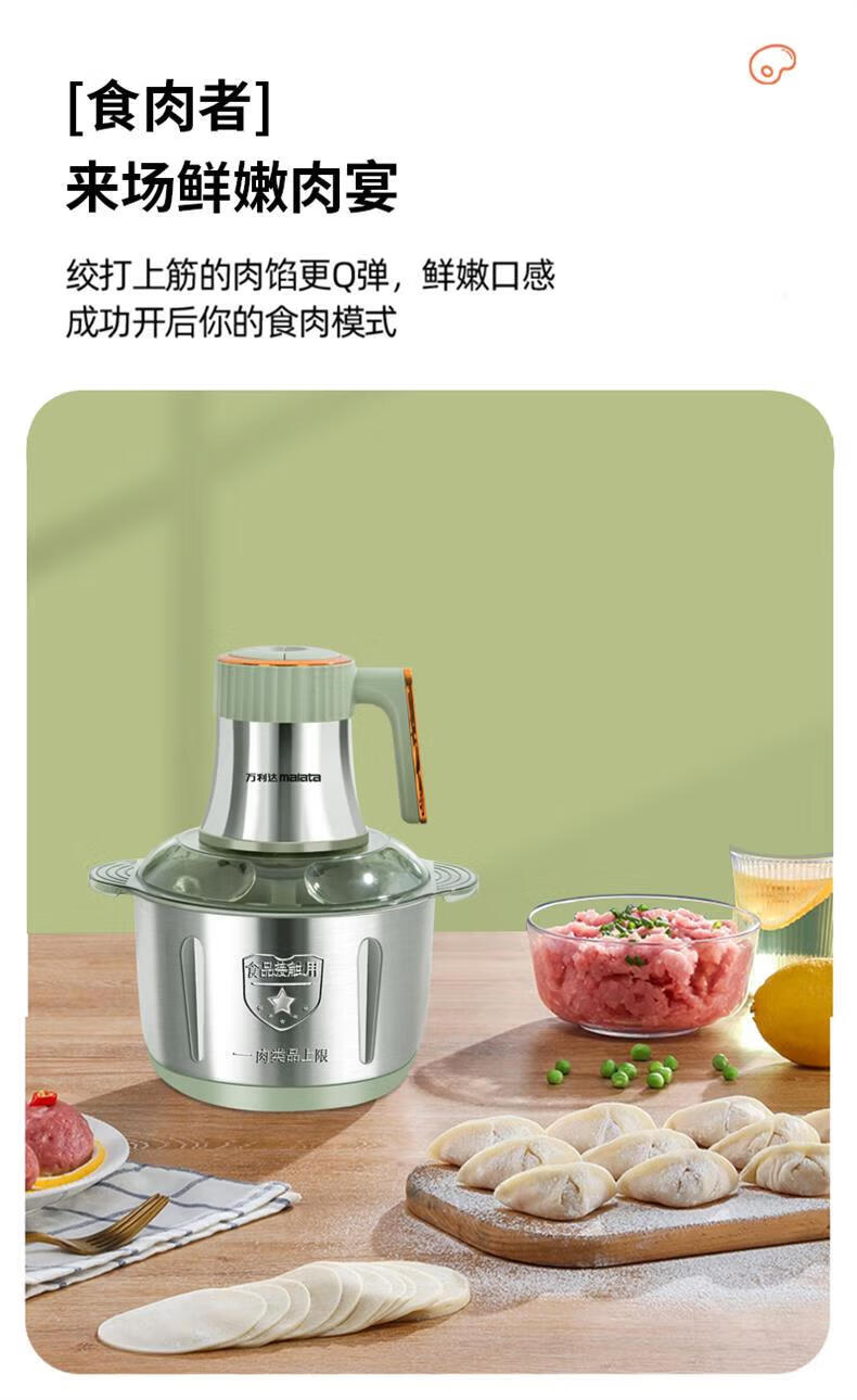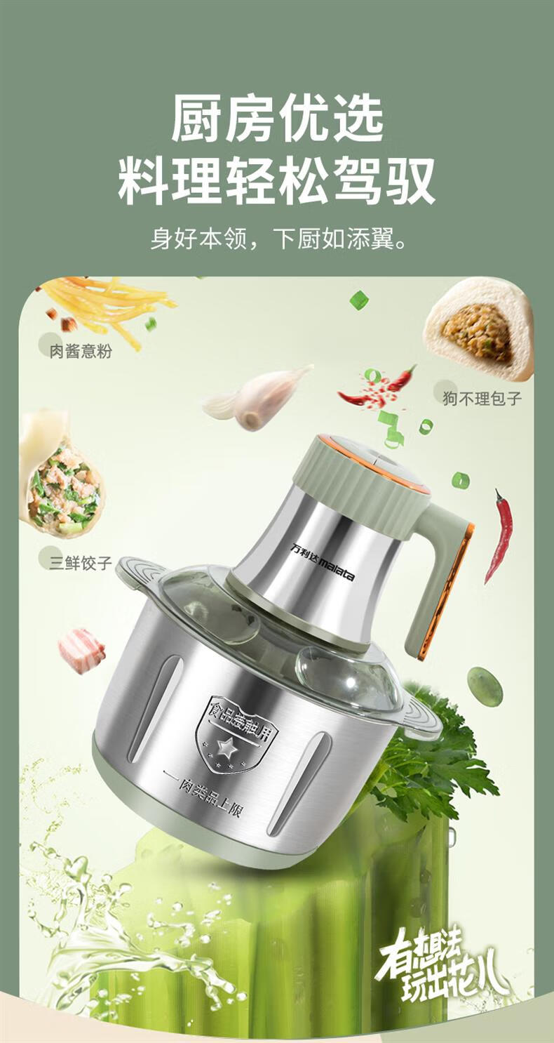 万利达(Malata)绞肉机家用多功能料理机和面机打泥机碎肉机绞馅机搅拌机绞肉绞菜 经典不锈钢款 3L 【三套立体刀】两档调速