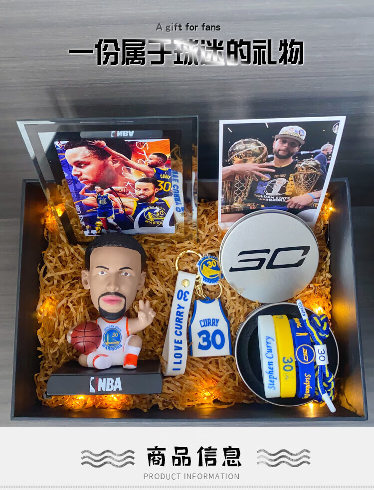 梦京鱼科比詹姆斯欧文库里篮球礼盒NBA生日礼物麦迪保罗斯人偶模型摆件 库里 送卡片+手环+礼袋
