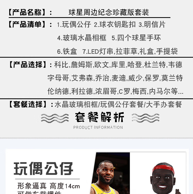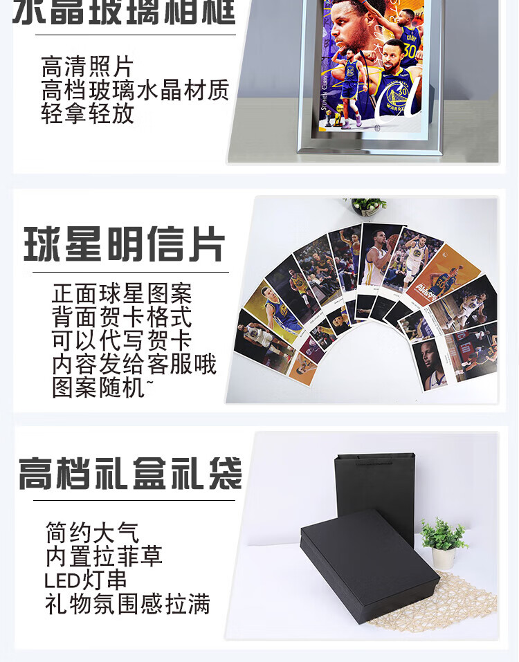梦京鱼詹姆斯篮球礼盒人偶NBA周边纪念品库里科比欧文玩偶生日礼物 詹姆斯水晶玻璃相框(送礼袋)