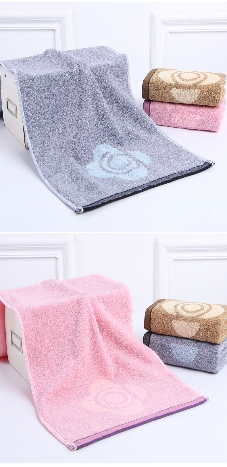 多样屋(TAYOHYA)3A抗菌毛巾纯棉洗脸巾不易掉毛全棉A类加厚洗澡巾100%棉吸水 加厚丨3A抗菌【咖+粉】 2条