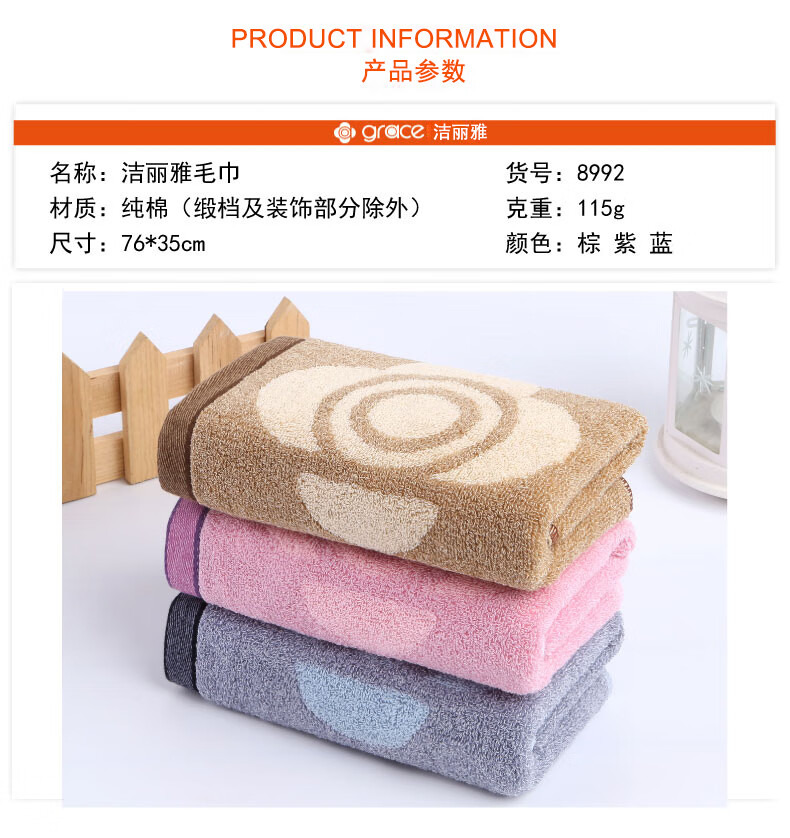 洁丽雅(grace)毛巾纯棉A类抗菌洗脸巾柔软吸水擦头洗澡毛巾男女士情侣洁面巾 【5A抑菌】兰+粉+浅驼 3条