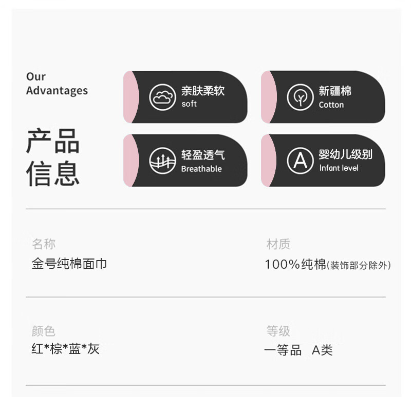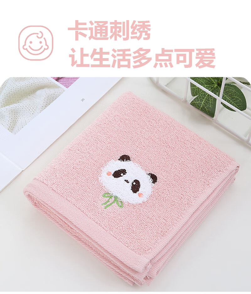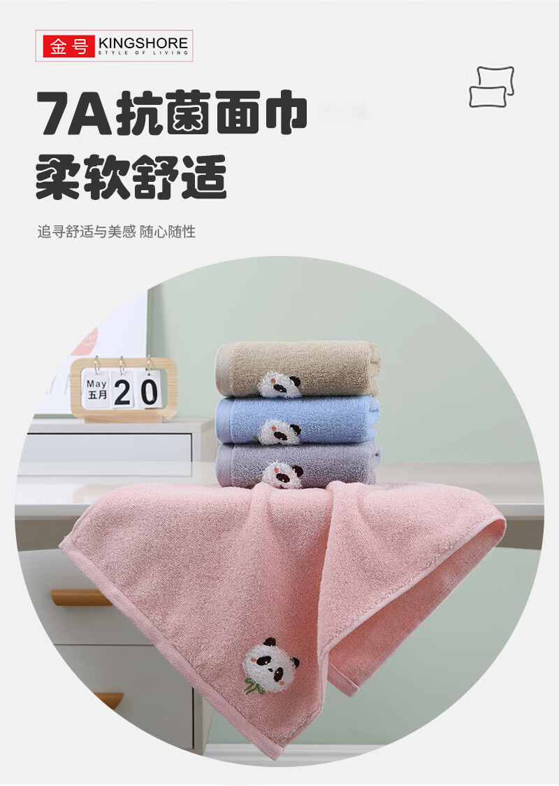 金号7A抗菌纯棉毛巾素雅简约卡通刺绣加厚毛巾亲肤 柔软吸水 红色+蓝色+棕色+灰色 4条