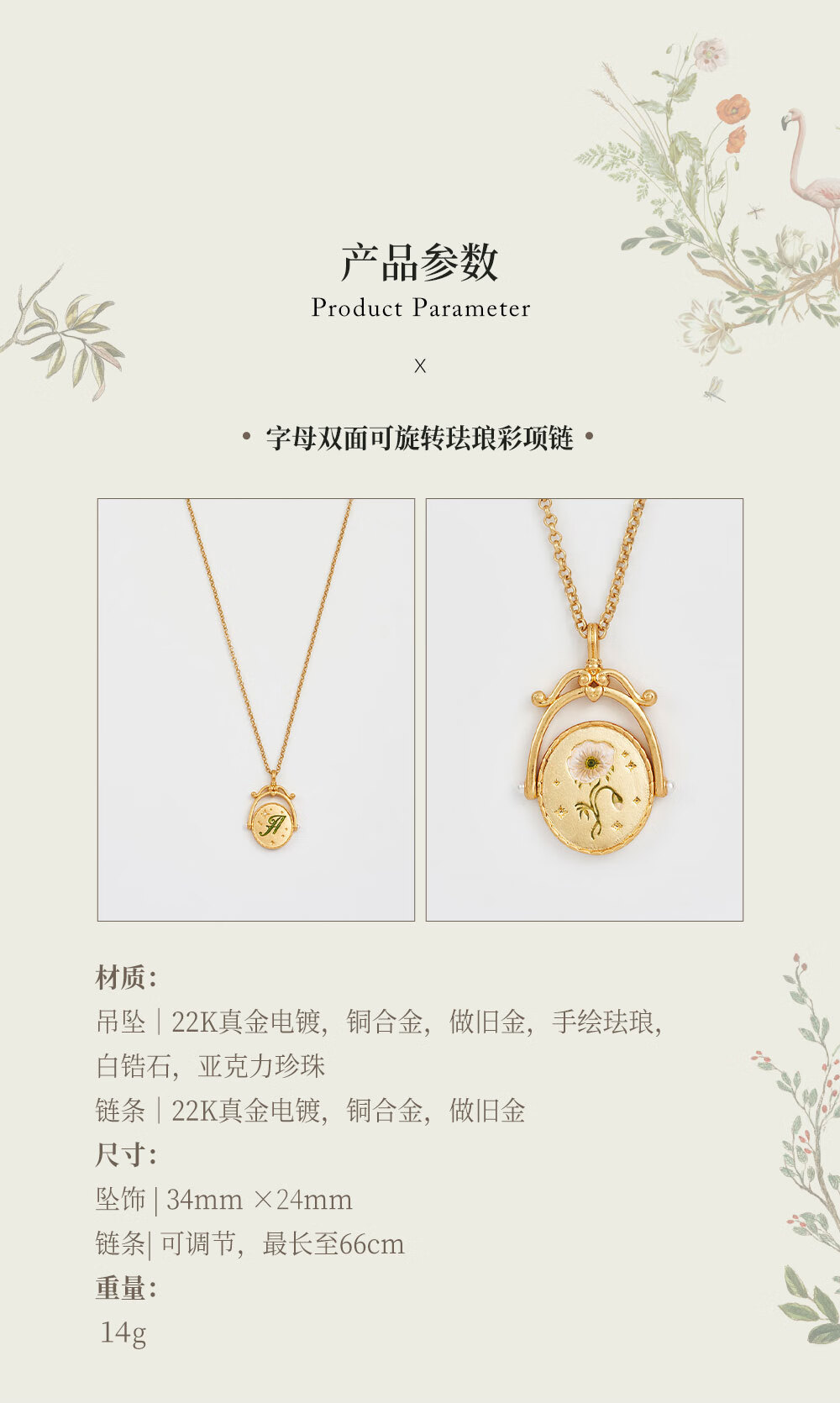 Fable【张艺凡同款】字母双面旋转珐琅彩项链女高级感小众轻奢生日礼物 字母Y双面可旋转珐琅彩项链