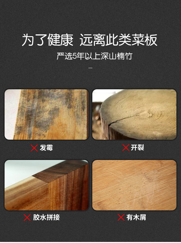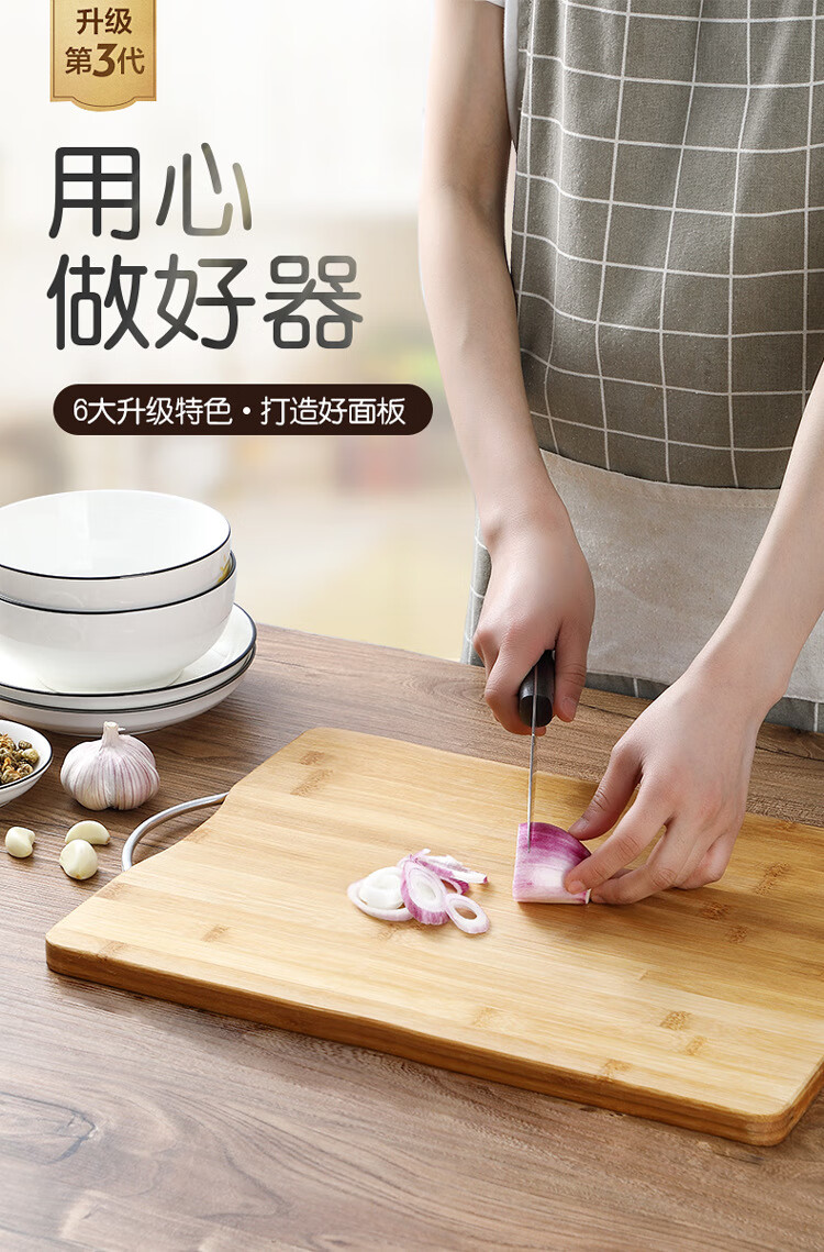 【严选直发】中式厨房菜板大号加厚楠竹切菜板实木刀板水果案板地 碳化菜板30*20 方形(1个装)
