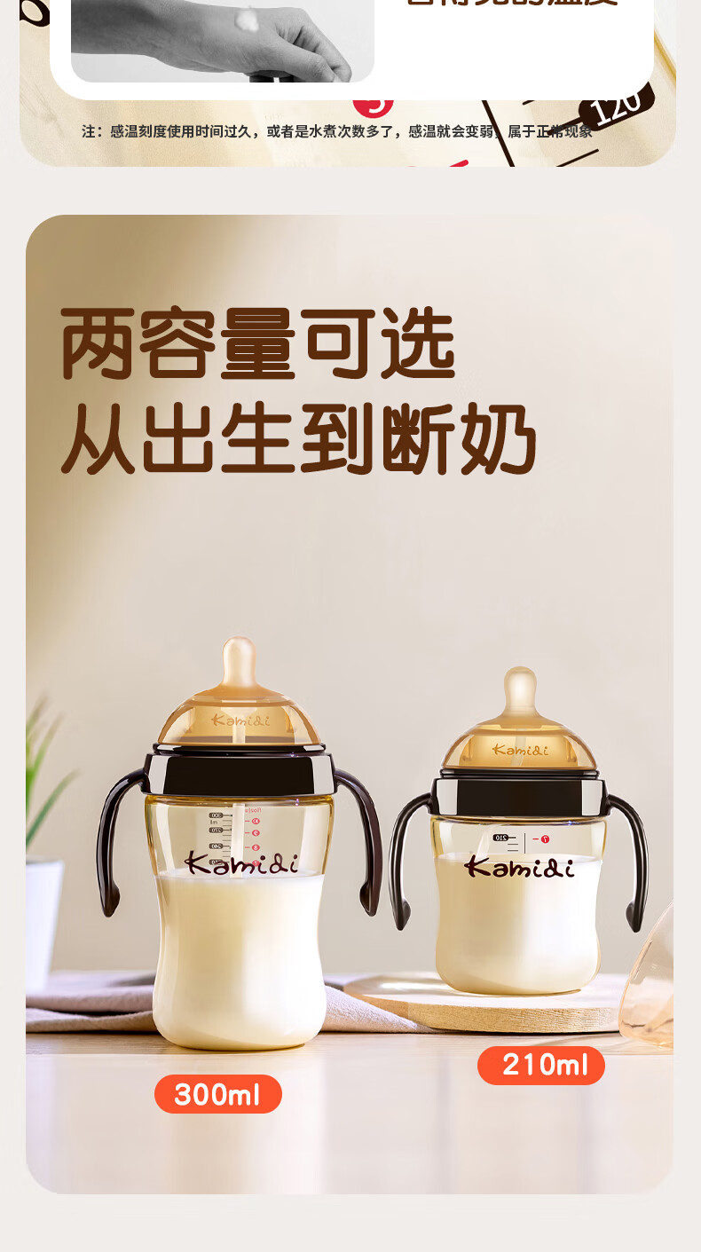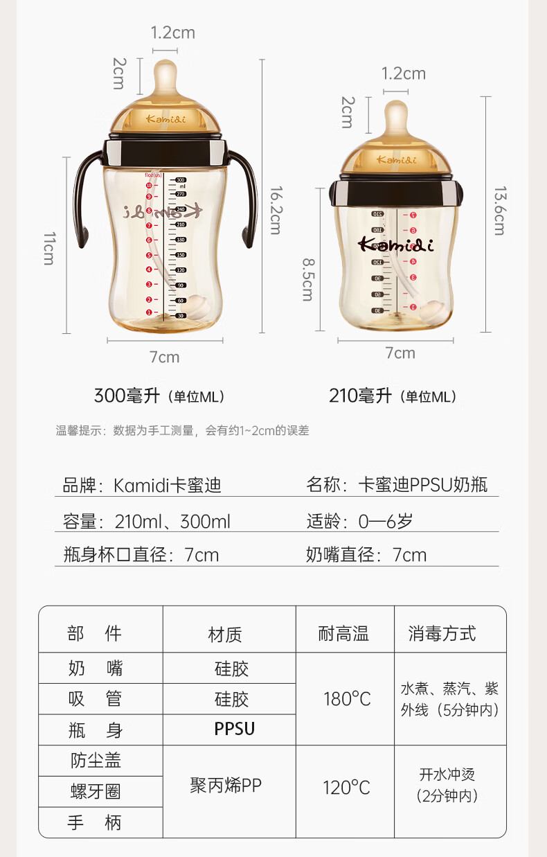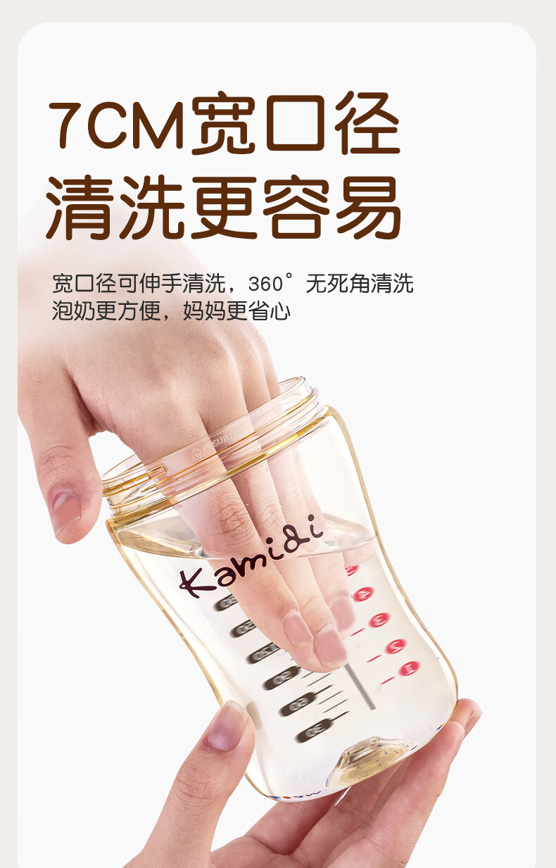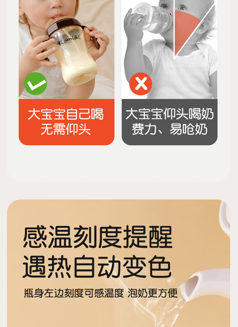 卡蜜迪(kamidi)新生儿奶瓶ppsu婴儿大童宝宝一岁以上2岁3岁0-6个月断奶吸管奶瓶 210ML【1孔+贈3孔】 0-7个月