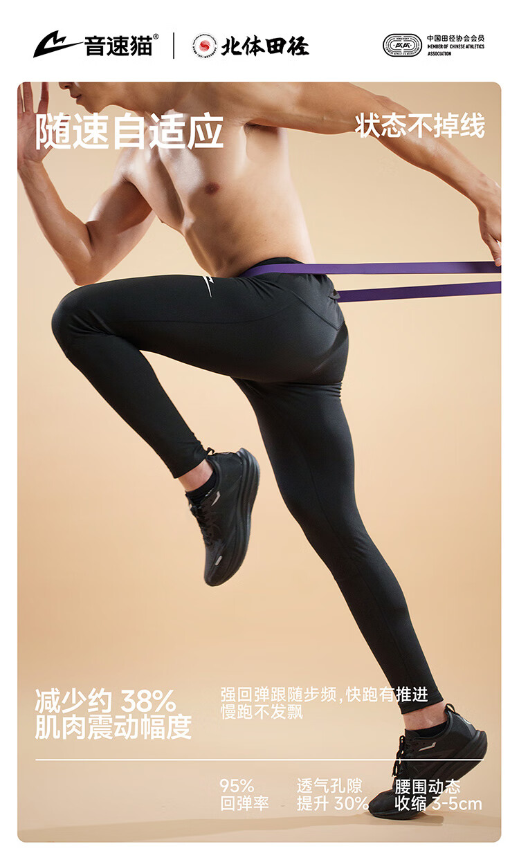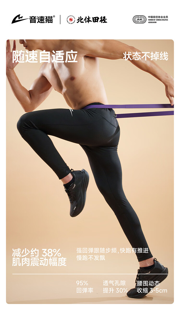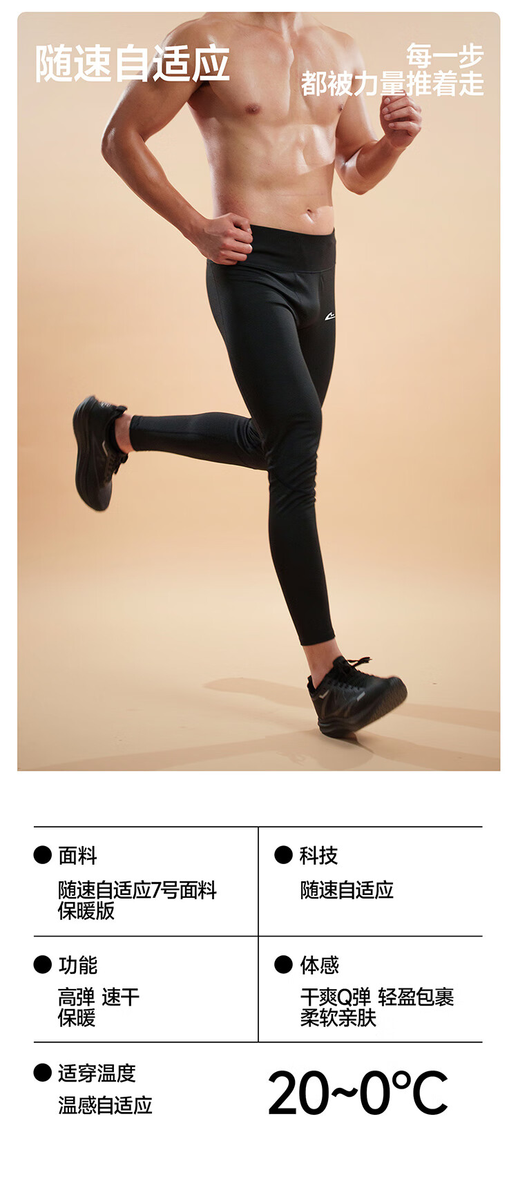 音速猫【北体共研】破风系列AUTO-FIT运动压缩长裤高弹透气加绒保暖裤 黑色(长弹加绒) XL
