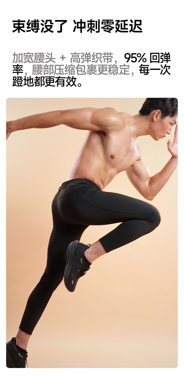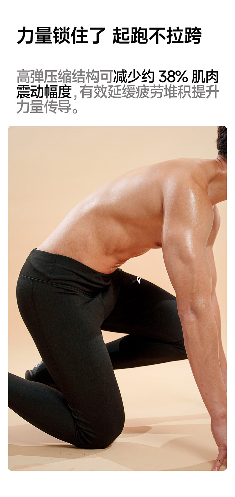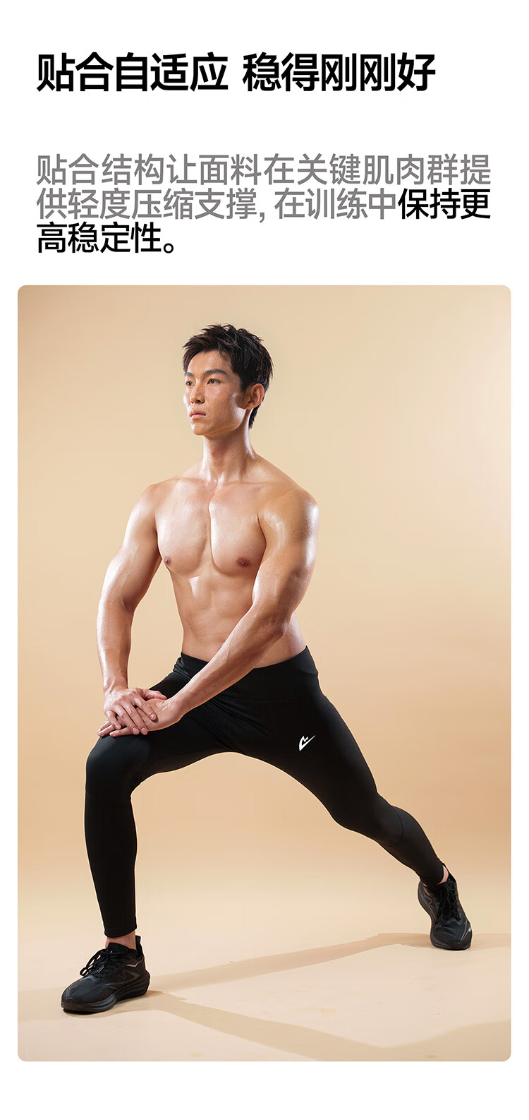 音速猫【北体共研】破风系列AUTO-FIT运动压缩长裤高弹透气加绒保暖裤 黑色(长弹加绒) XL