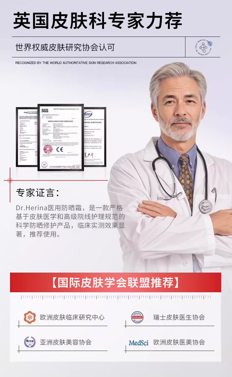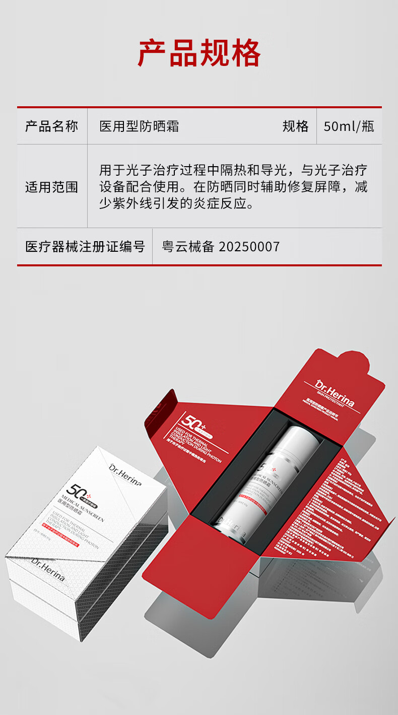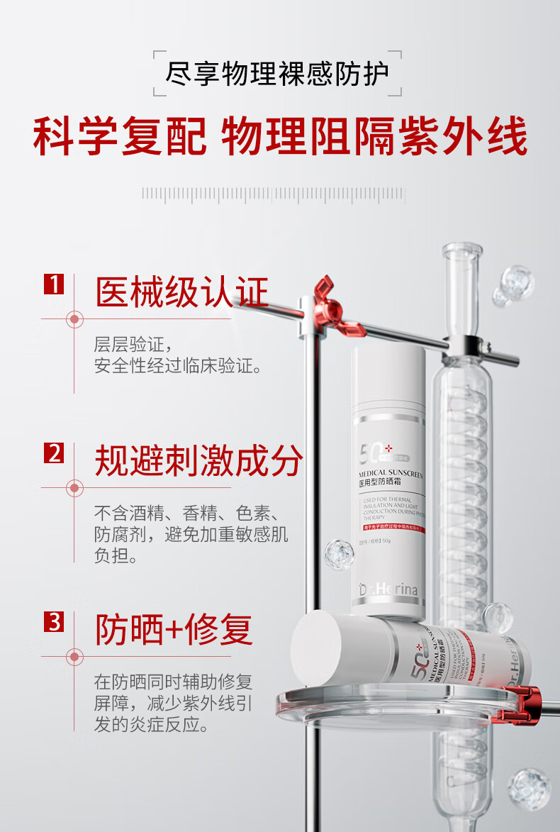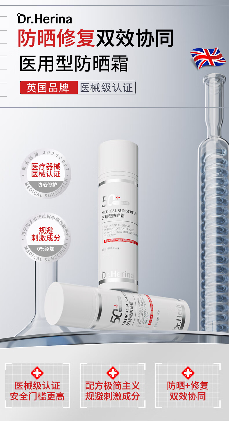 DR.HERINA医用防晒霜械字号激光微针术后敏感肌肤阻隔紫外线防晒防汗不油腻 医用防晒霜1瓶50ml