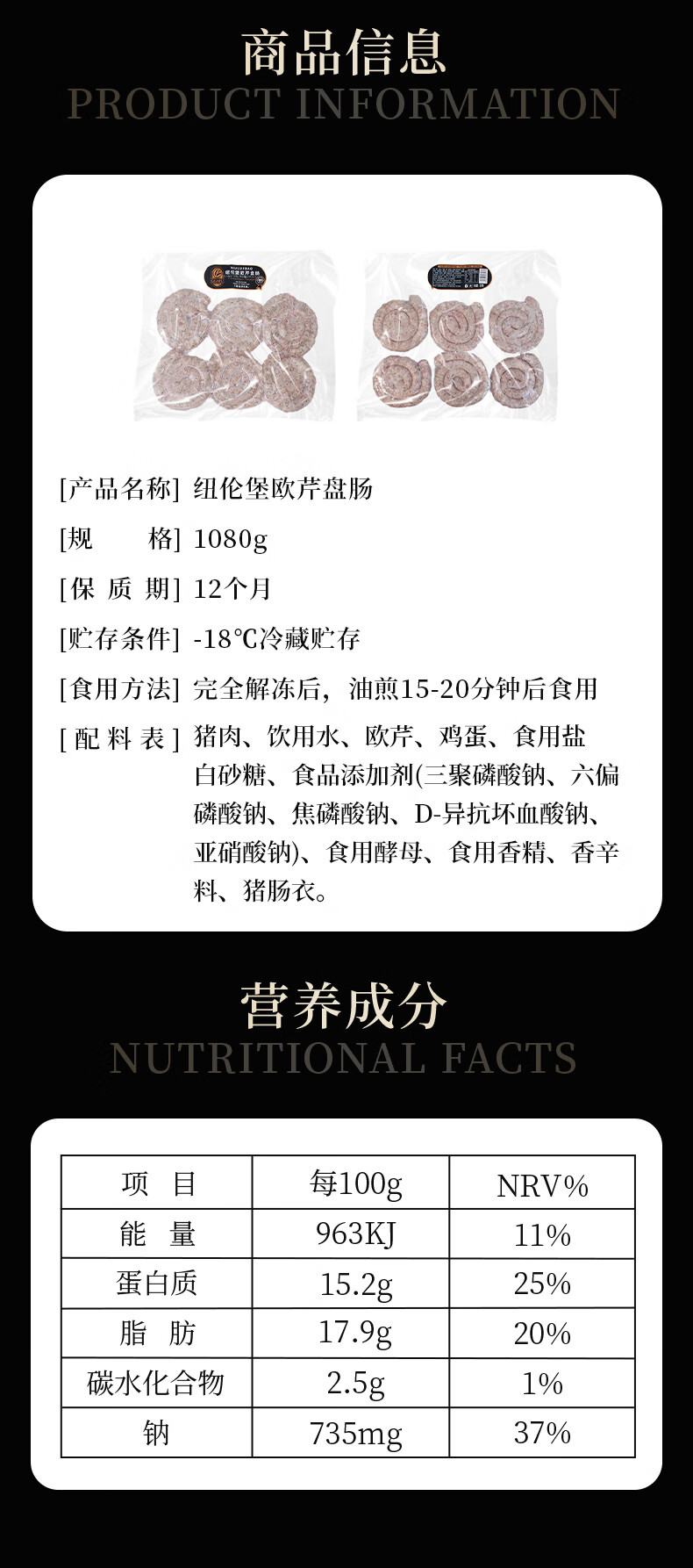 格拉芙德式纽伦堡欧芹盘肠烤肠香肠 1080g