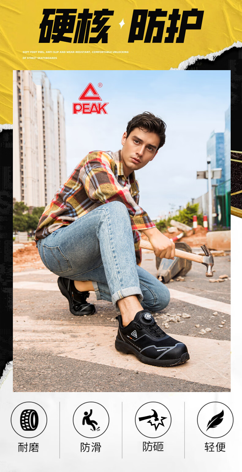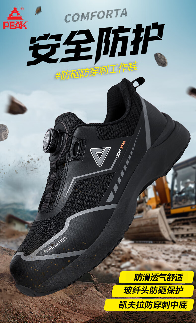 匹克防护鞋安全鞋防砸防刺穿减震户外工作鞋物流劳保鞋作训鞋 黑色【防砸防穿刺】 39