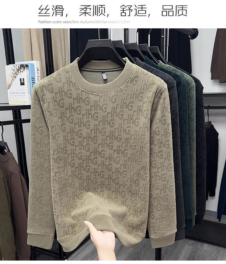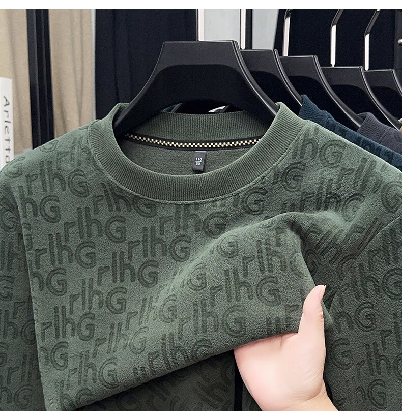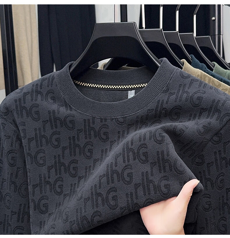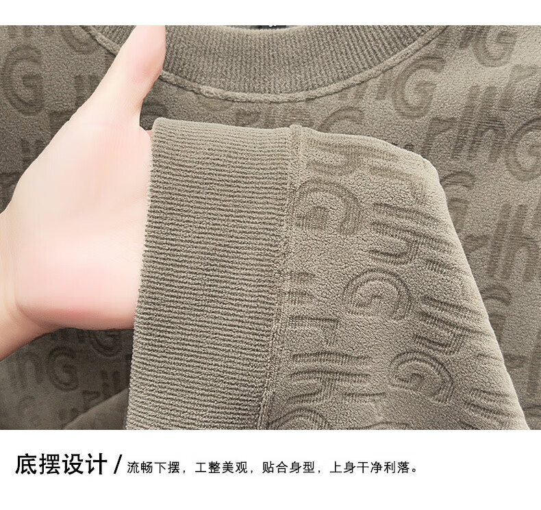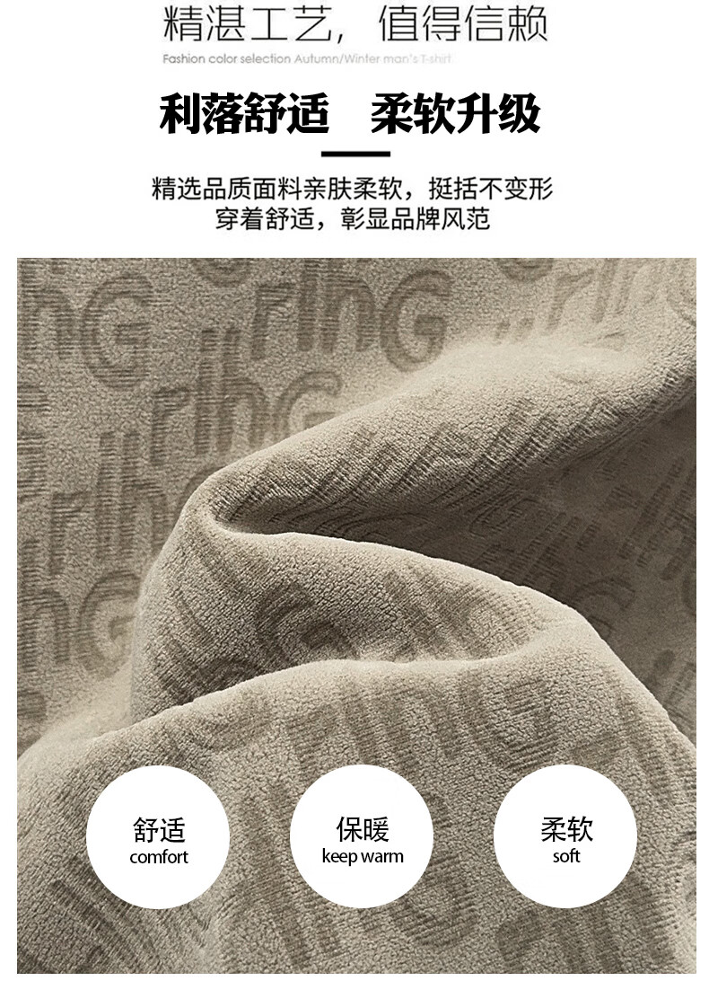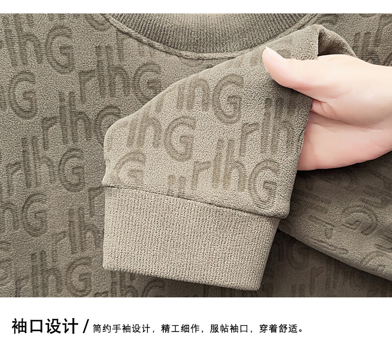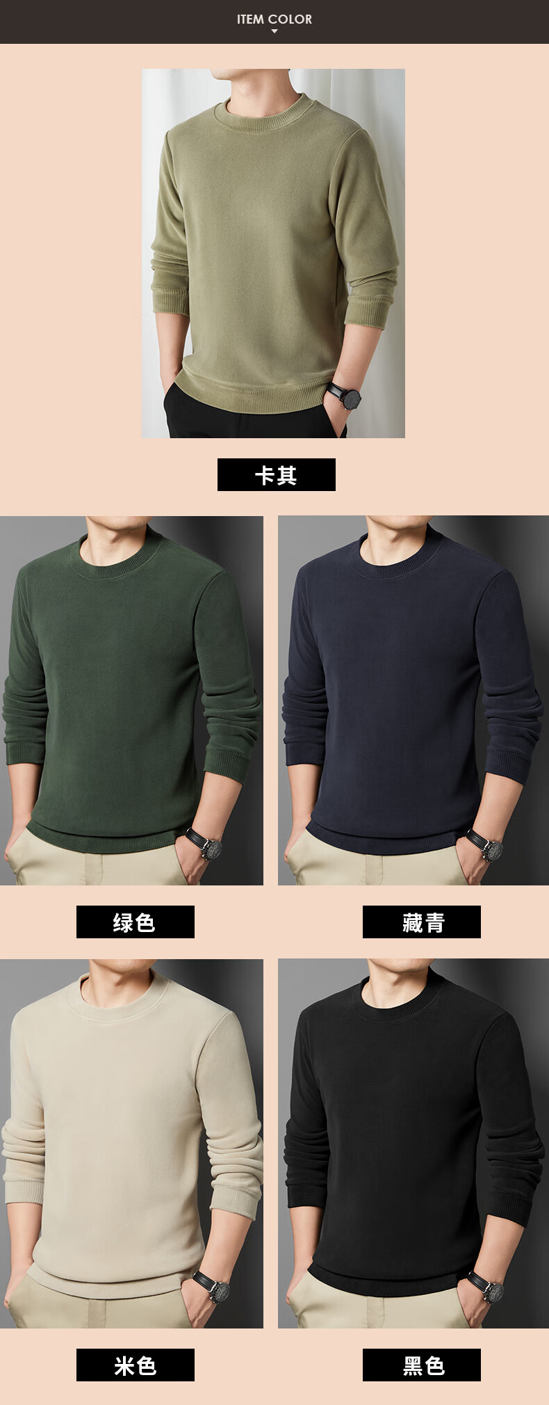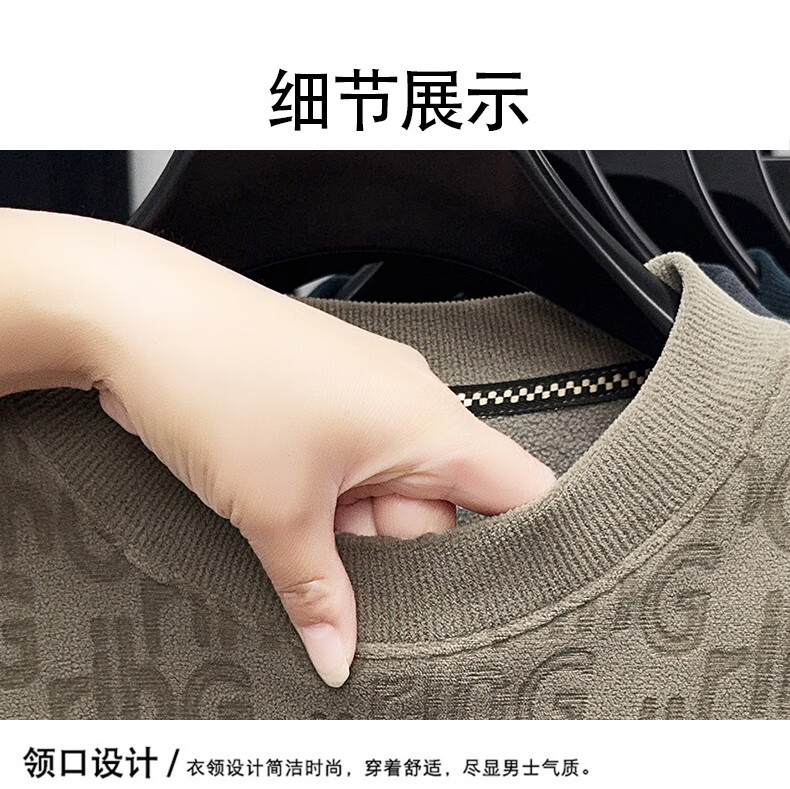 雅鹿男装双面奥粒绒长袖t恤男冬季新款加绒加厚保暖休闲套头男士上衣 908卡其 L (170)(建议120-140斤)