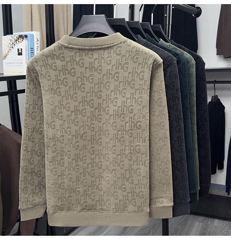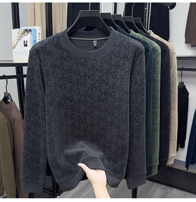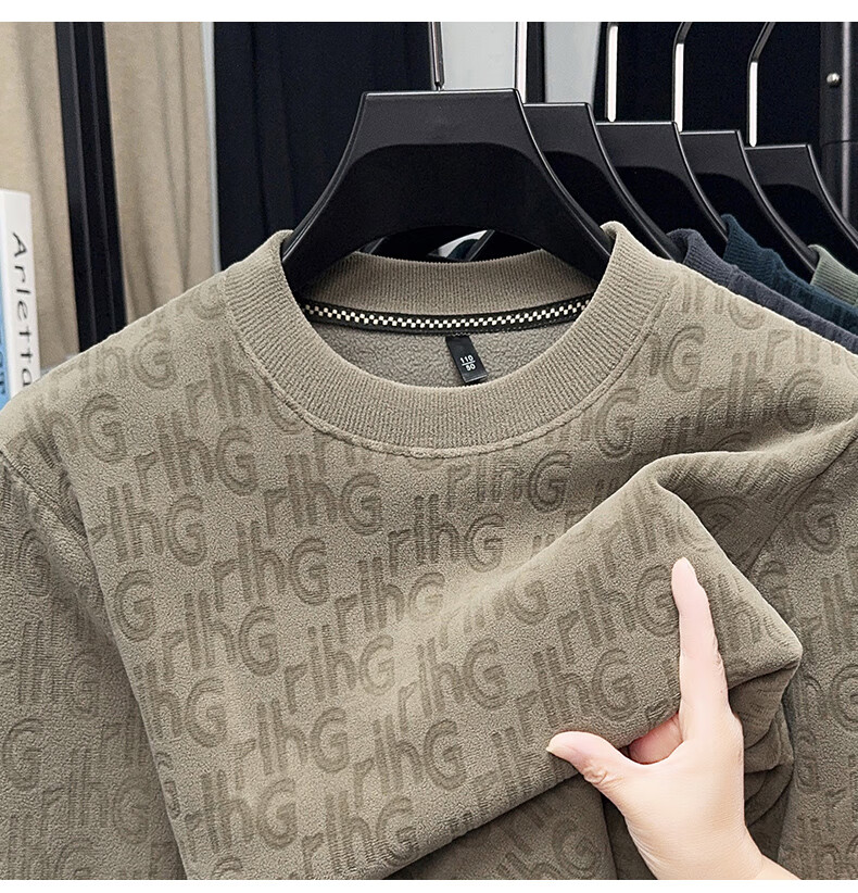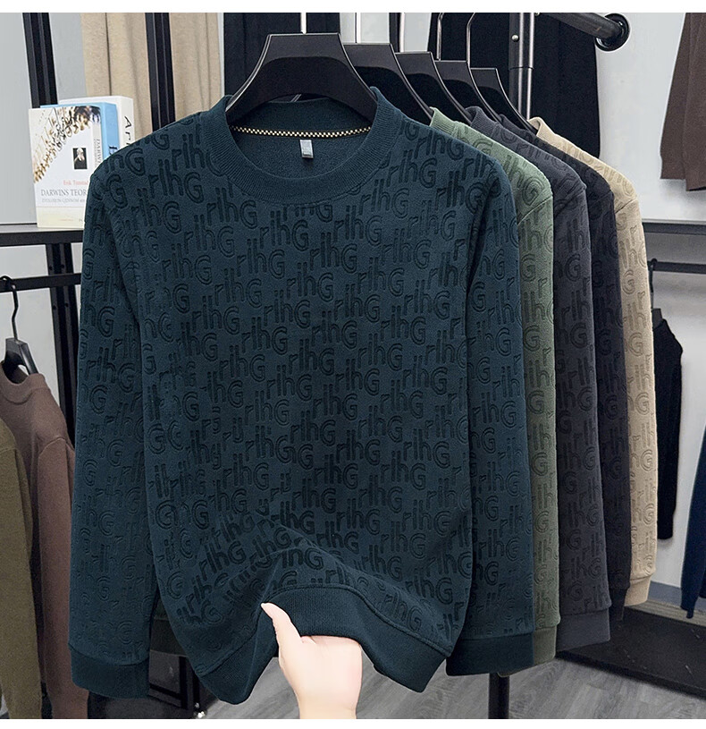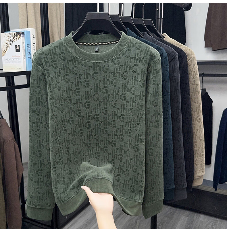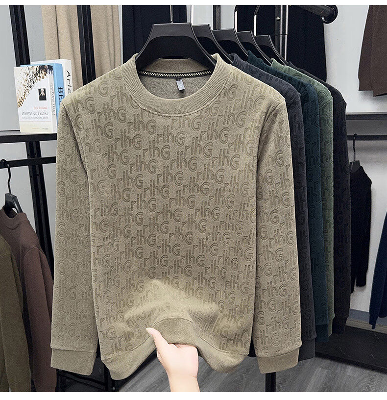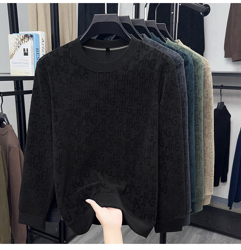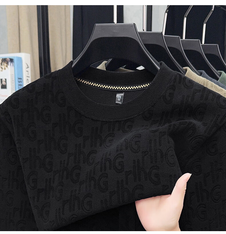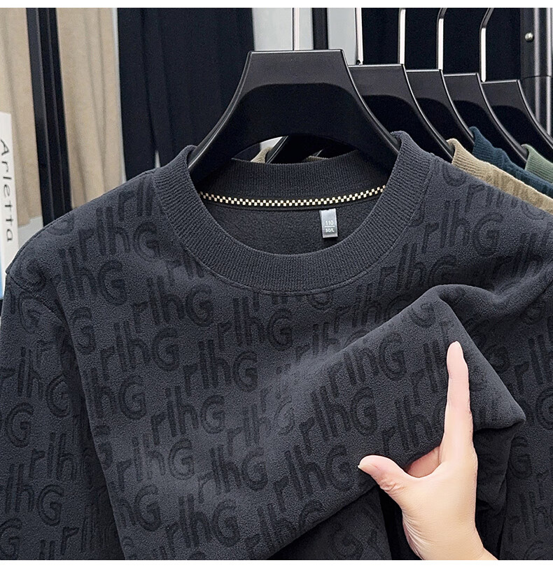 雅鹿男装双面奥粒绒长袖t恤男冬季新款加绒加厚保暖休闲套头男士上衣 908卡其 L (170)(建议120-140斤)