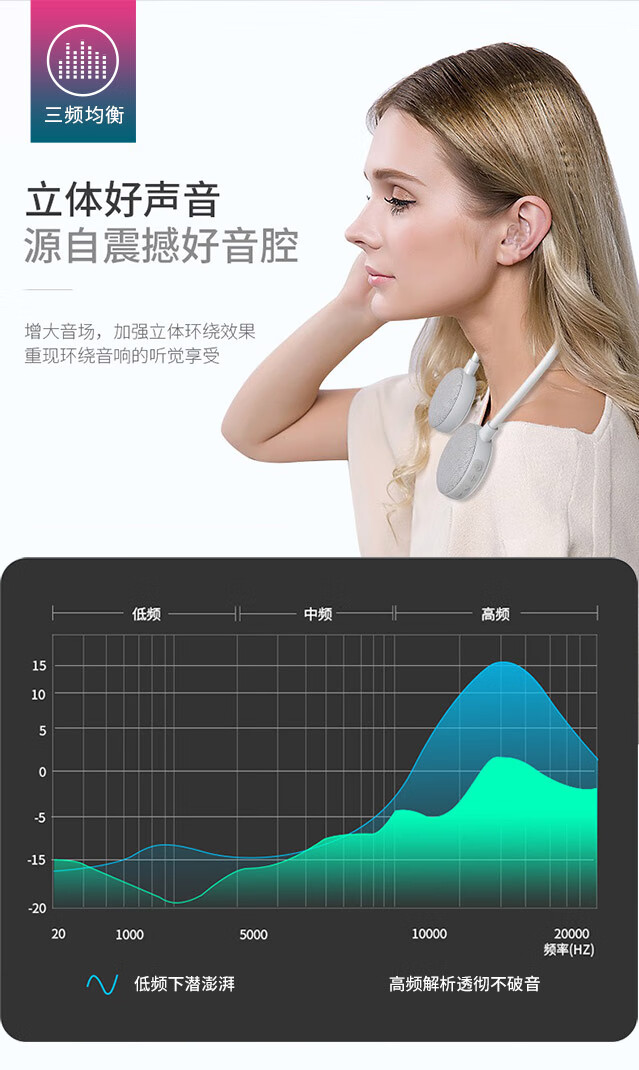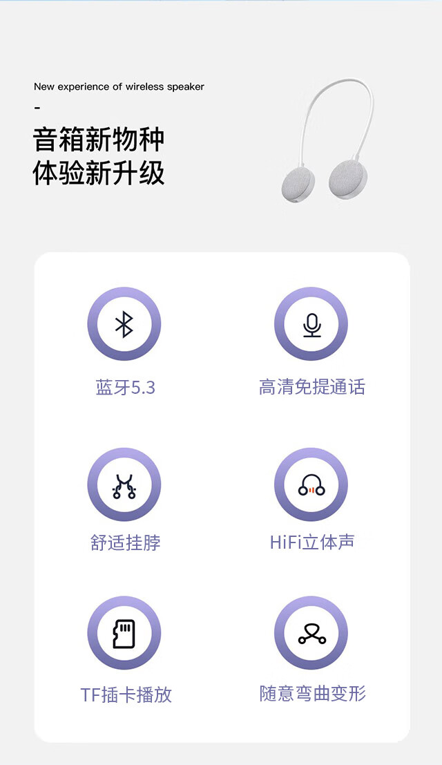 万笛【2025新升级】挂脖式无线蓝牙音箱重低音炮开放式不入耳机可插卡hifi立体声音响降噪超清通话 浅灰色【16G内存卡+可帮下载歌曲】