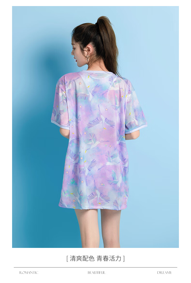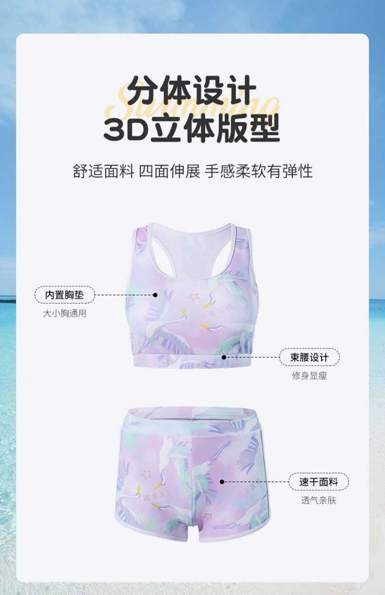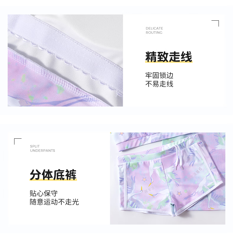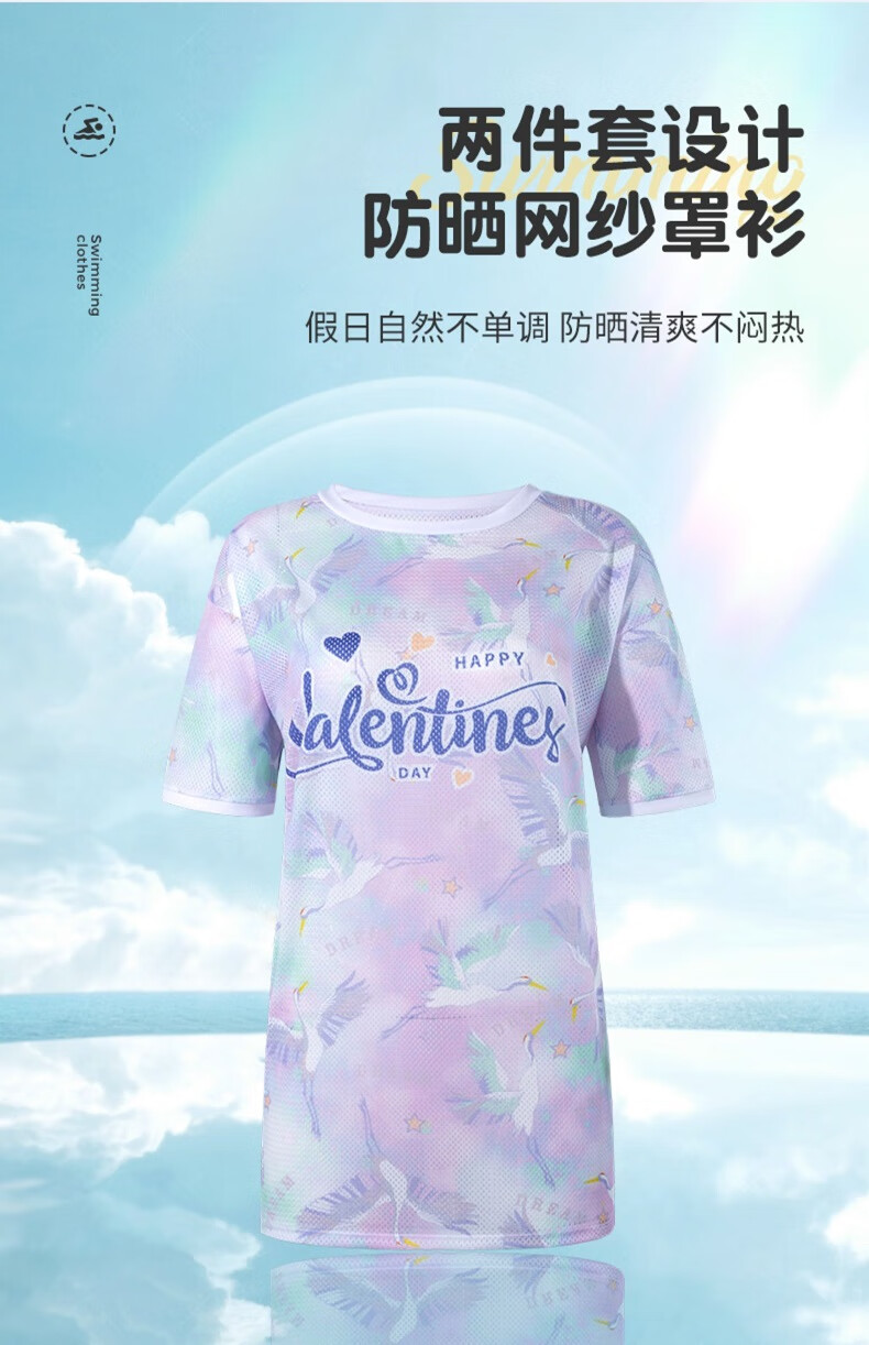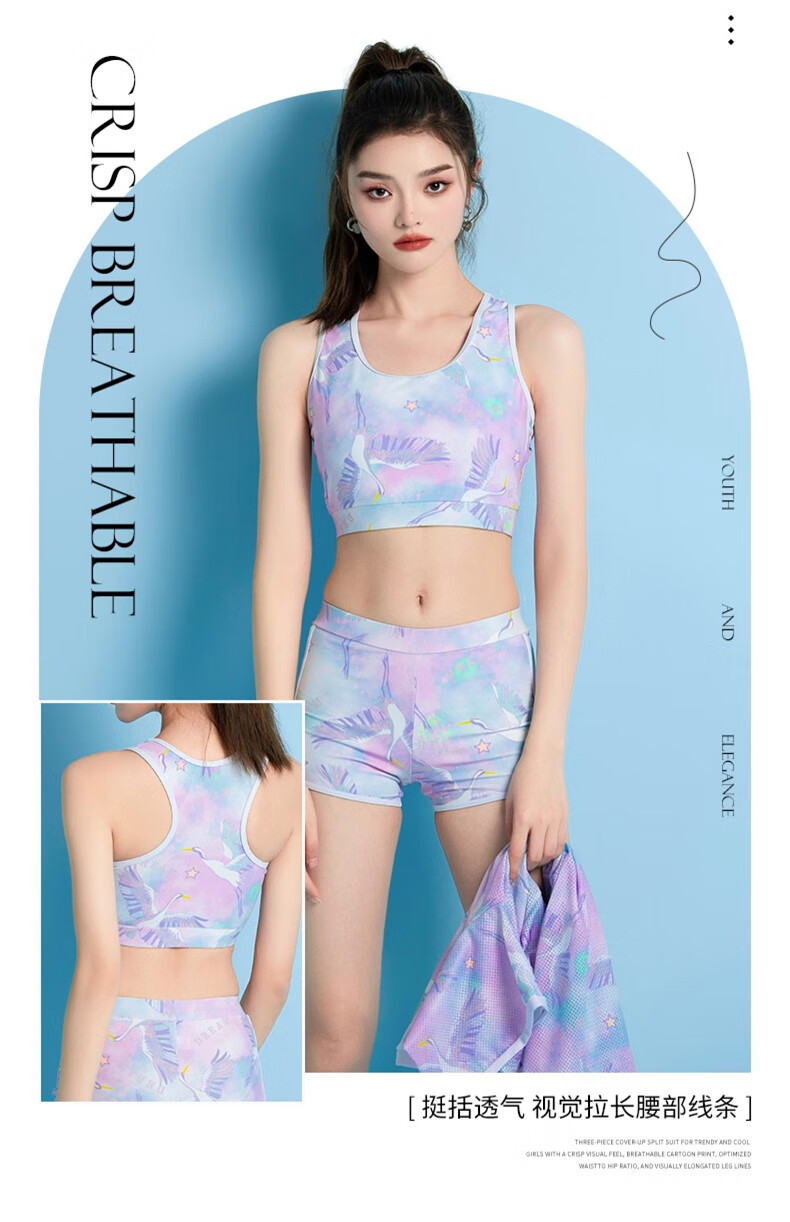 羽克泳衣女士保守分体2025新款爆款泡温泉三件套大码胖mm遮肉显瘦泳装 紫色仙鹤 L 【建议体重96-112斤】