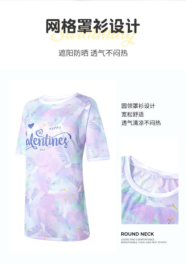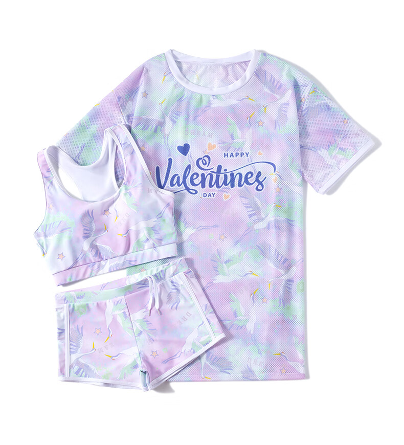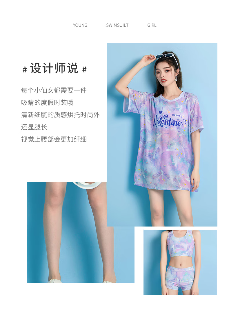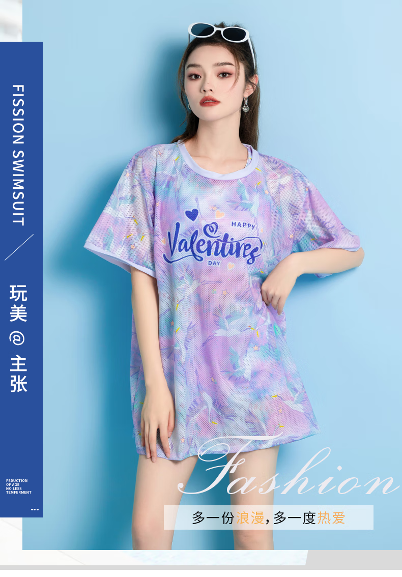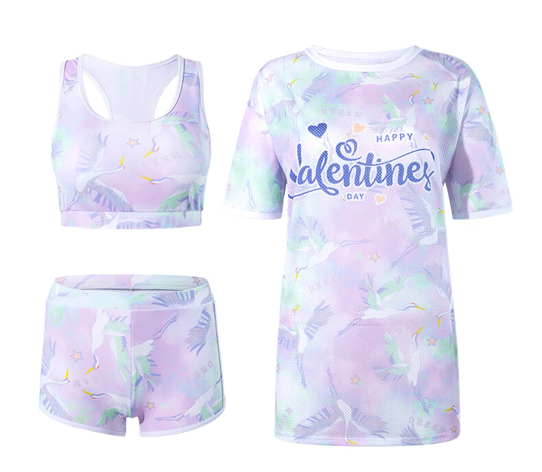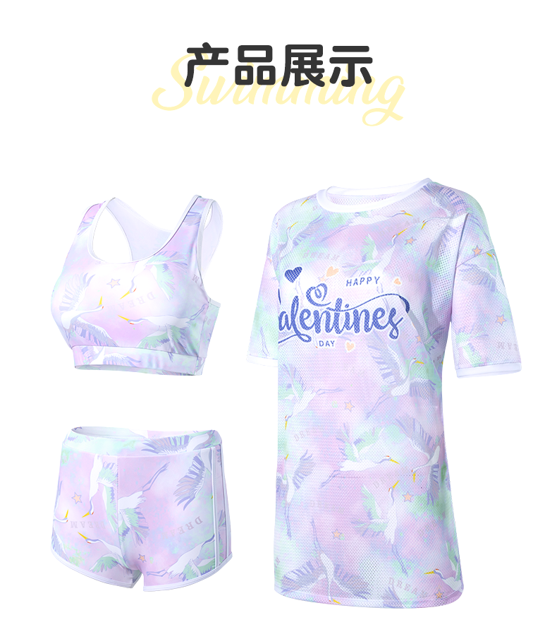 羽克泳衣女士保守分体2025新款爆款泡温泉三件套大码胖mm遮肉显瘦泳装 紫色仙鹤 L 【建议体重96-112斤】