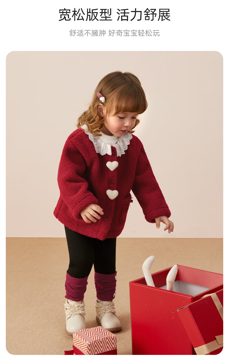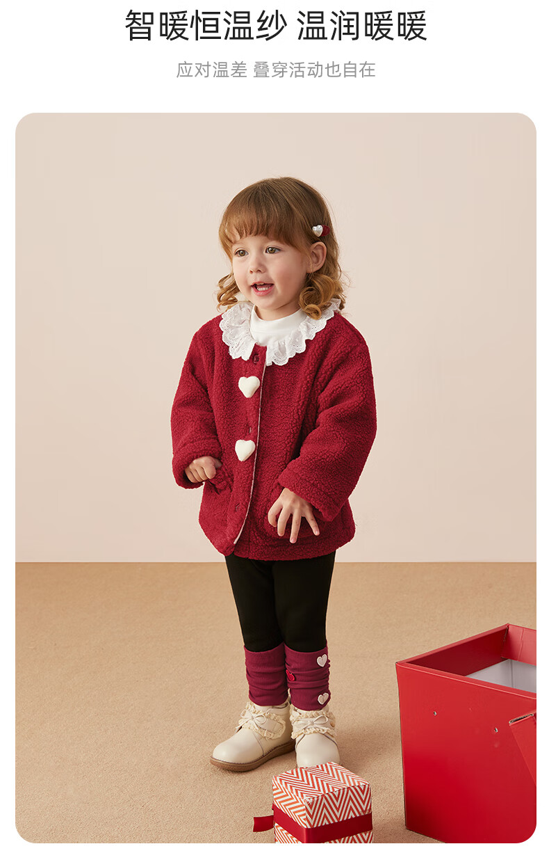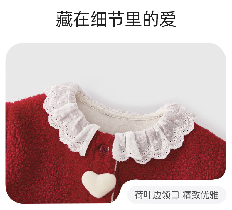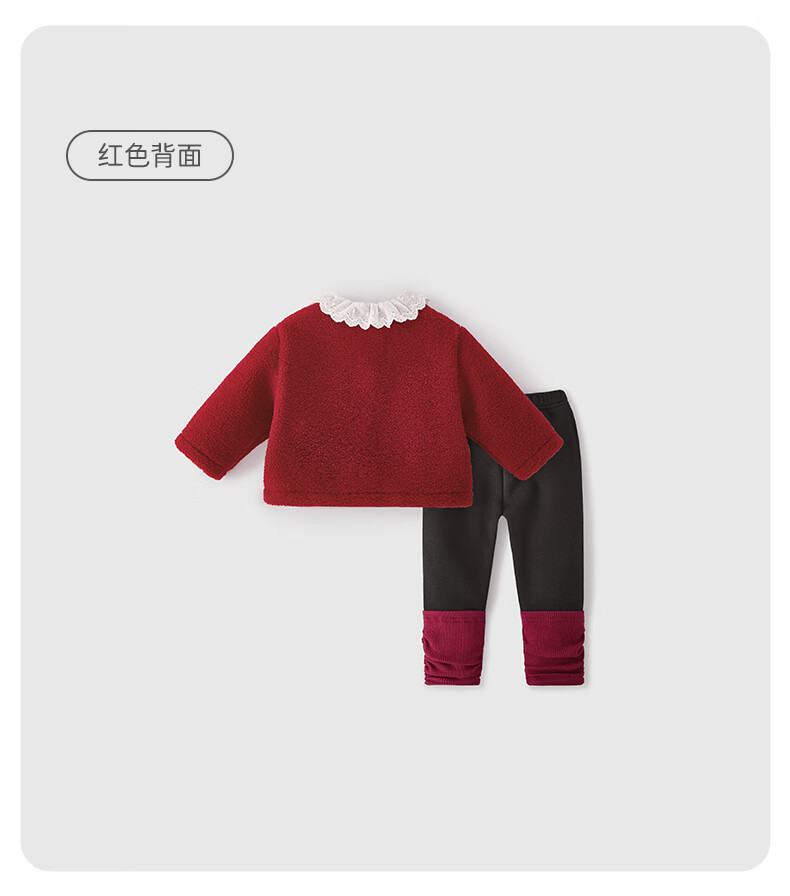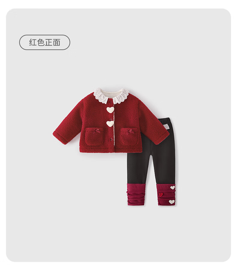 JELLYBABY【立体爱心抗静电两件套】25新品冬款婴幼外套+裤子女童 红色 80