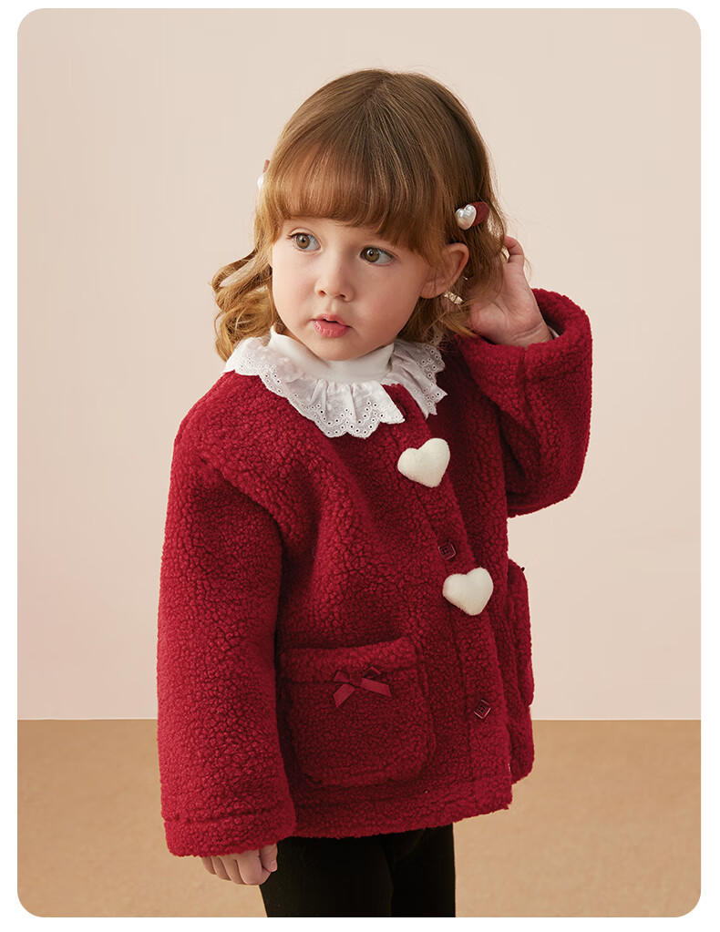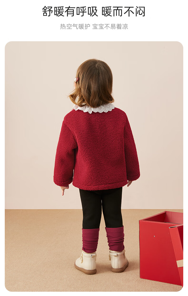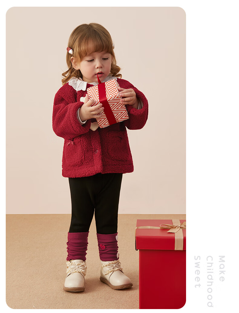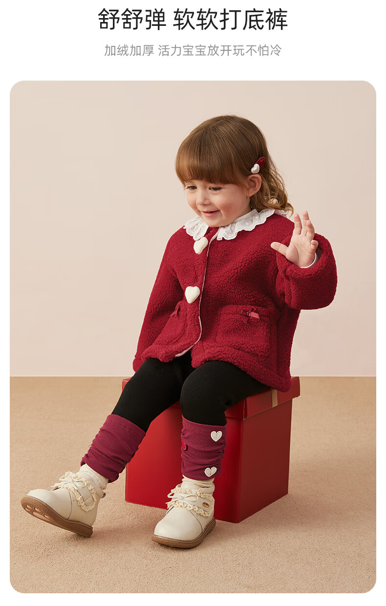 JELLYBABY【立体爱心抗静电两件套】25新品冬款婴幼外套+裤子女童 红色 80
