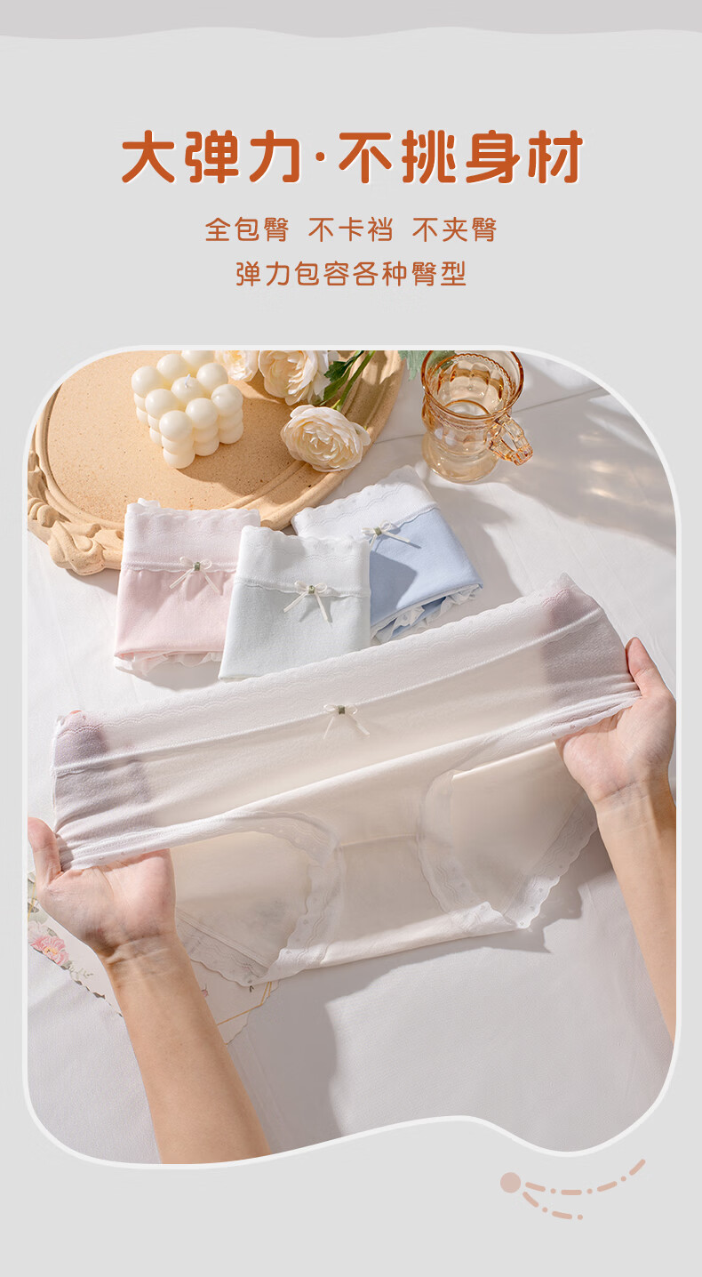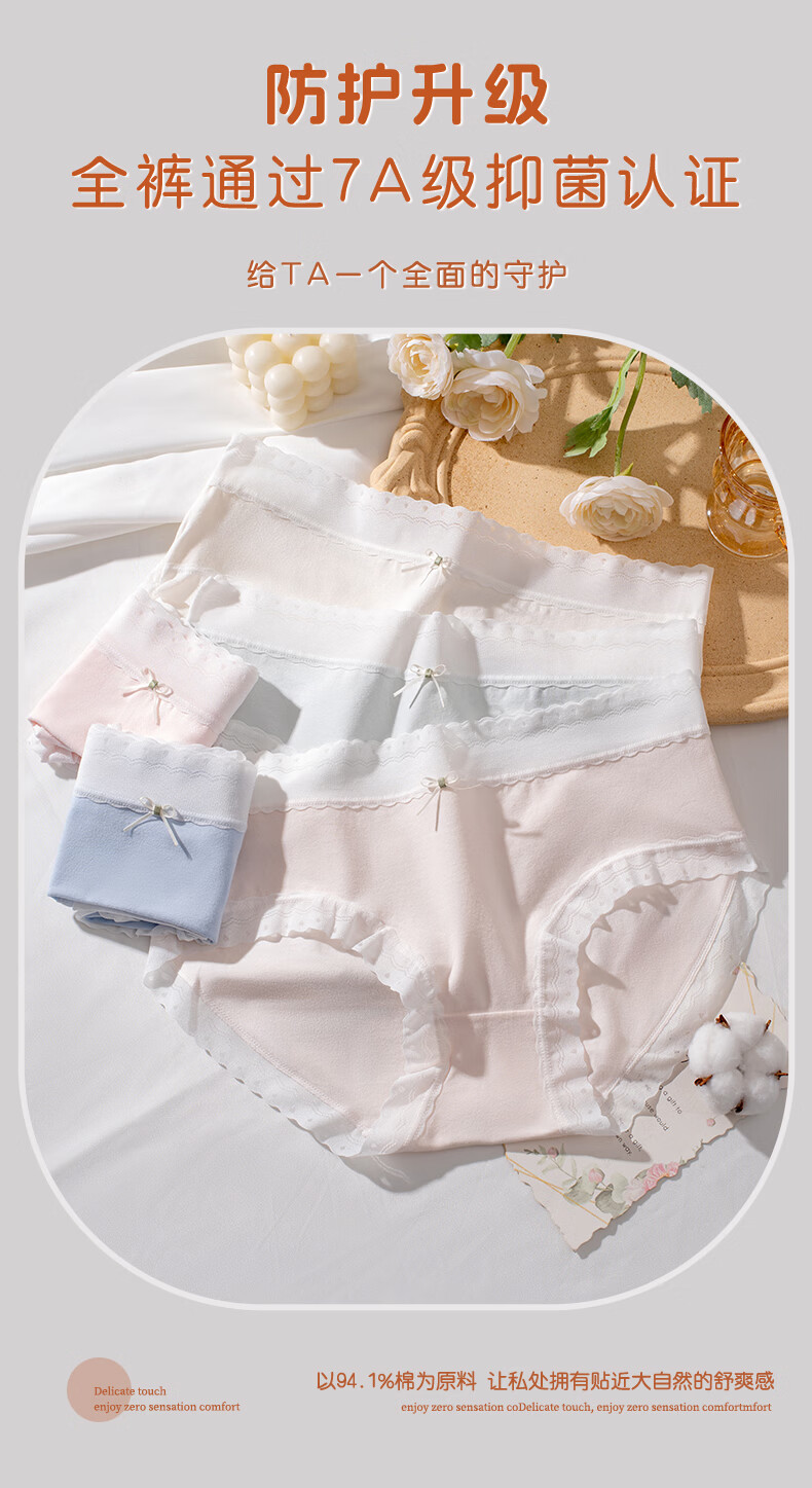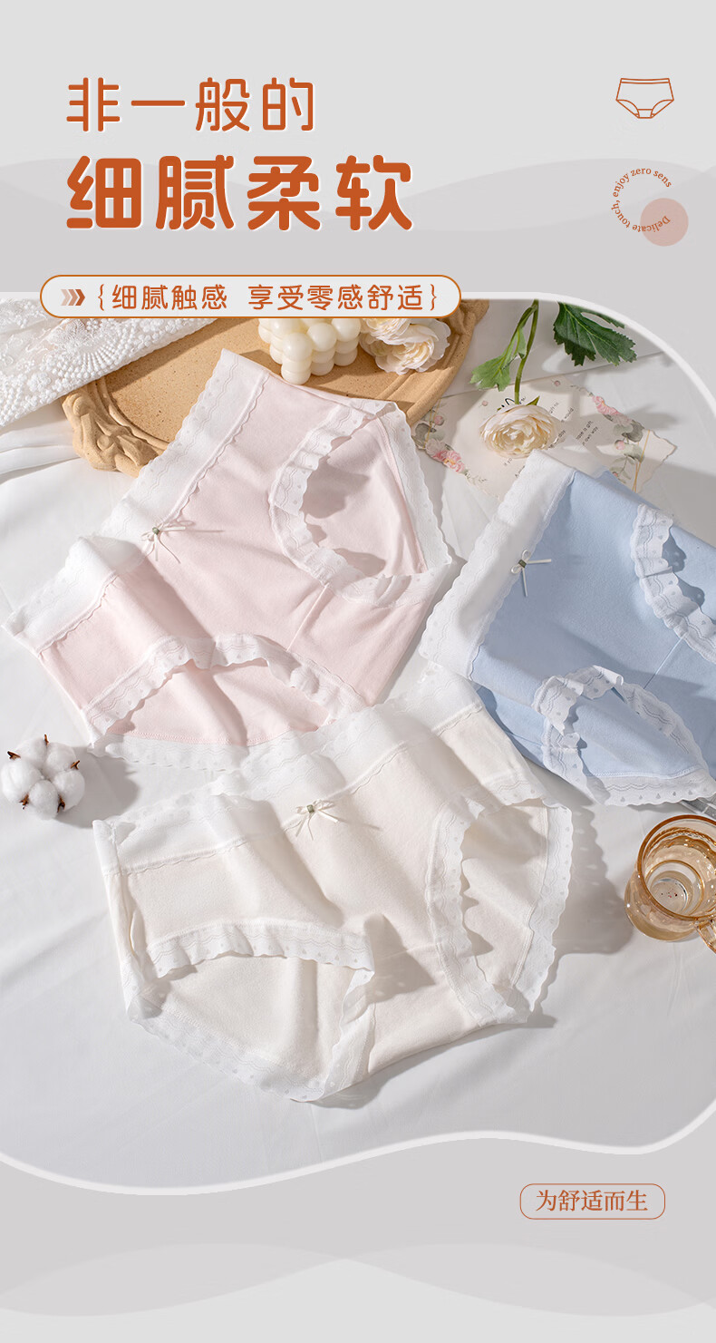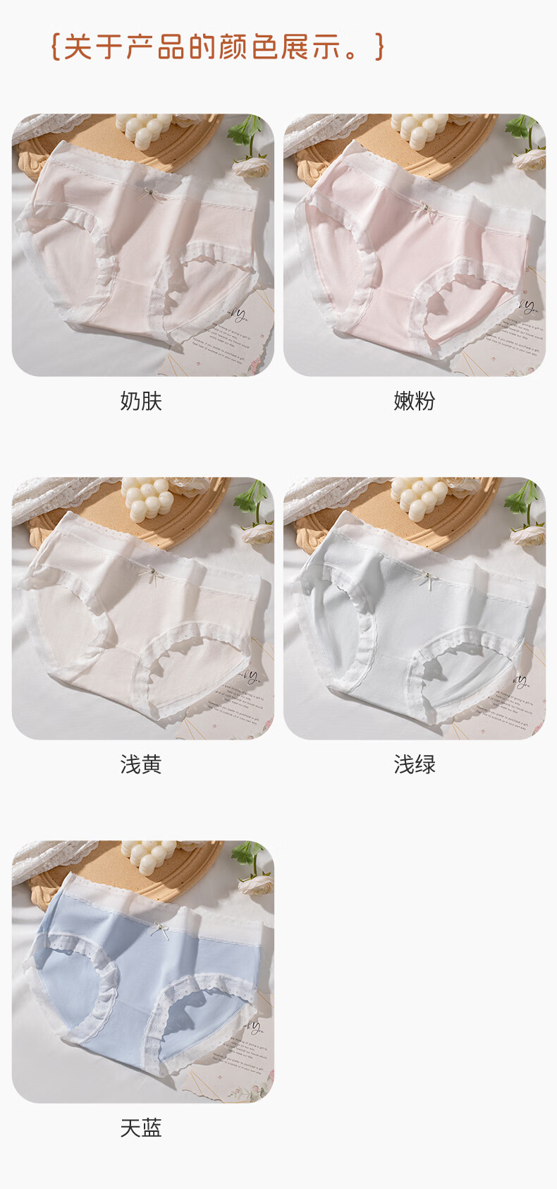 雅鹿女士内裤纯棉聚乳酸底裆10A抗菌无痕蕾丝性感女生大码三角裤短裤 奶肤 + 浅黄 + 浅绿 L 105-125斤