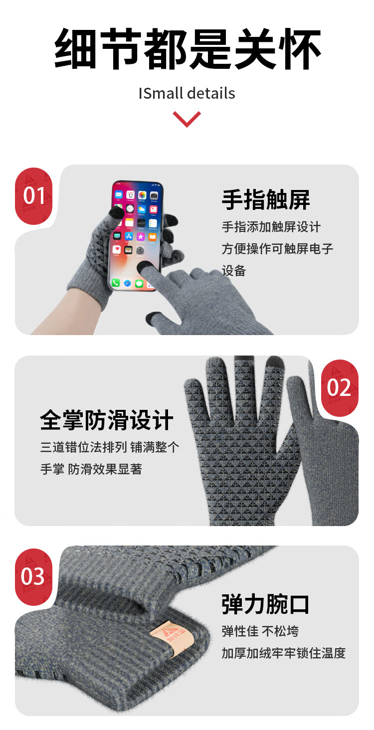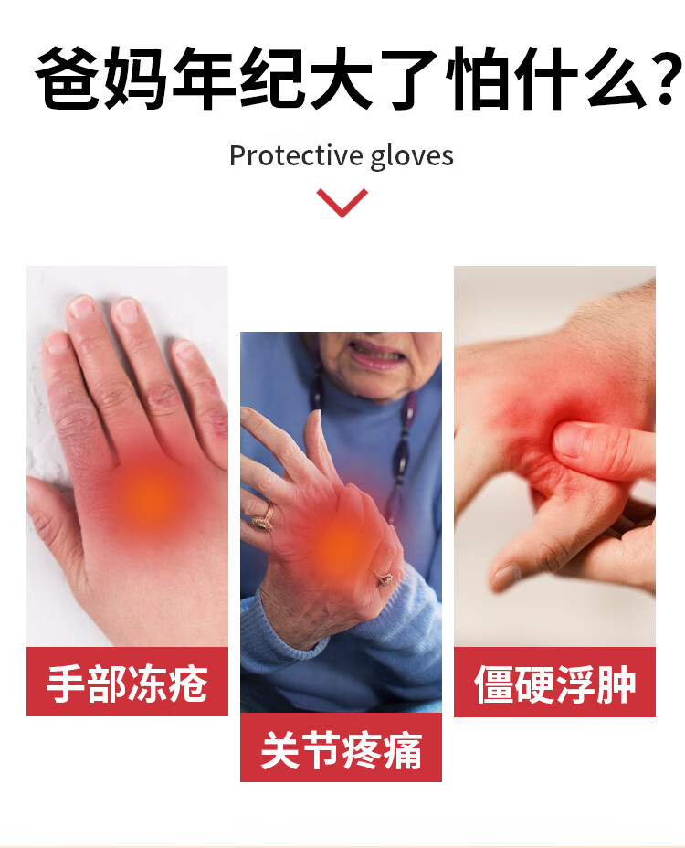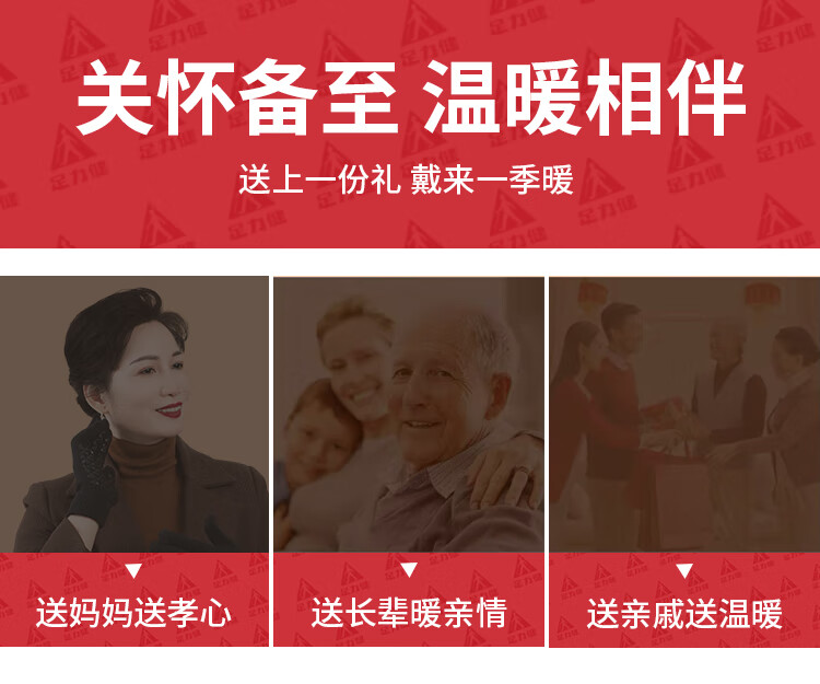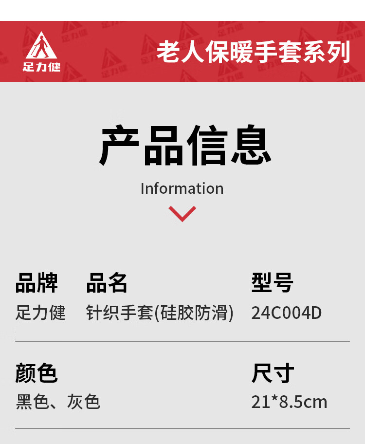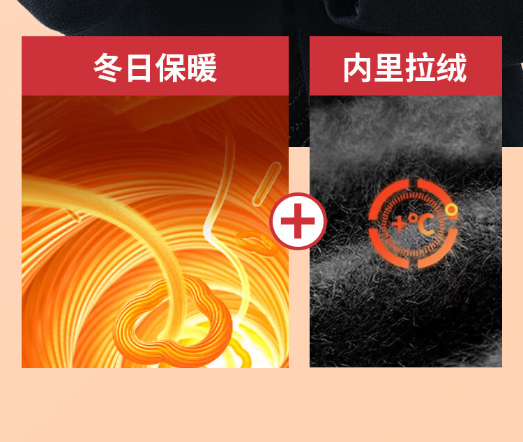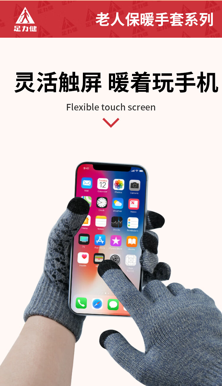 足力健骑行手套女秋冬加绒中老年保暖防风防滑可触屏弹力针织户外 黑色 均码 1双