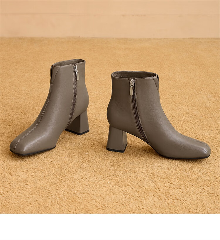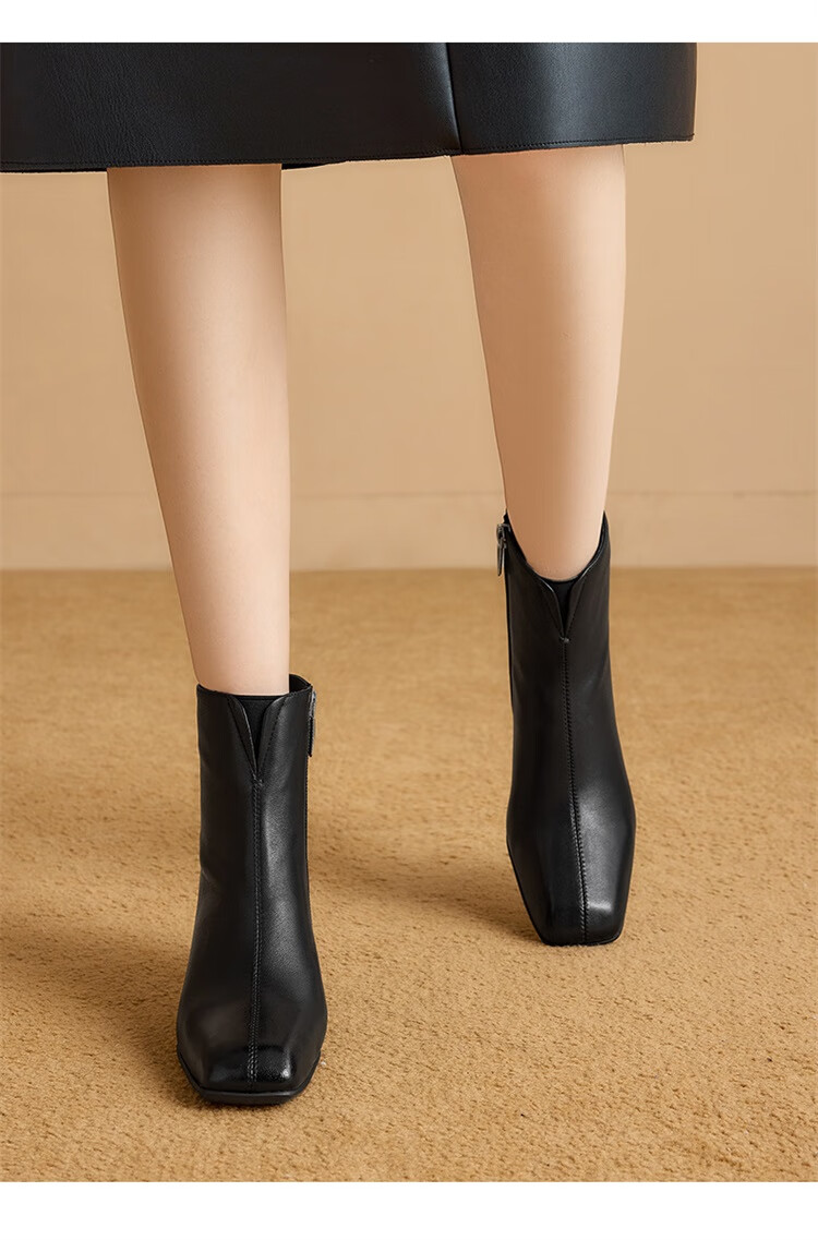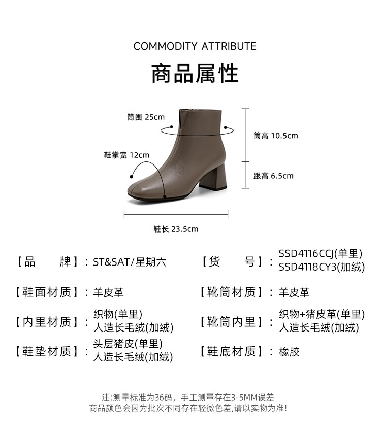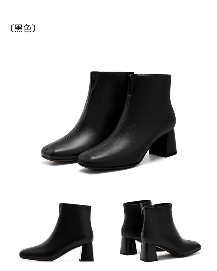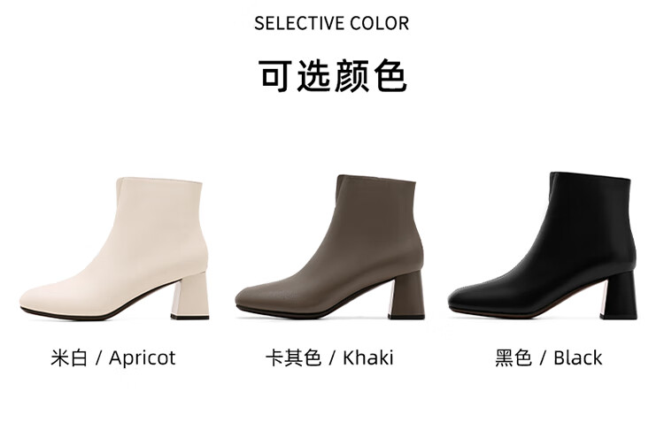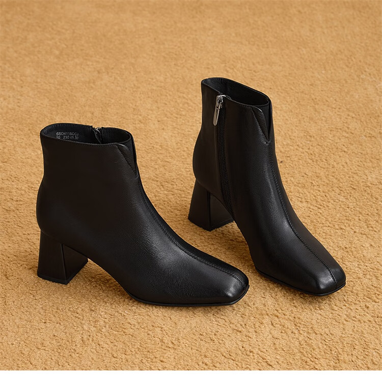 星期六白色高跟短靴女款2025新款冬季加绒裸靴增高烟筒靴复古百搭瘦瘦靴 黑色 【四季百搭】单里款 36