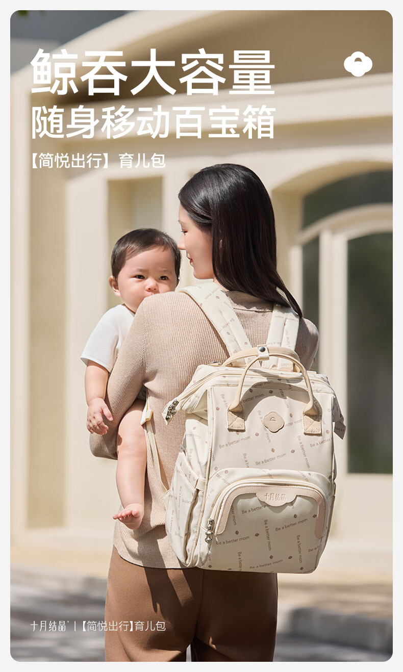 十月结晶妈咪包上班旅行双肩包多功能大容量母婴包时尚手提背包 暖砂黄