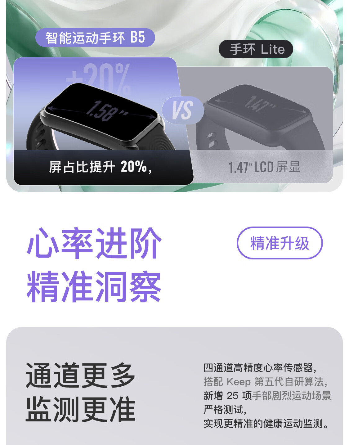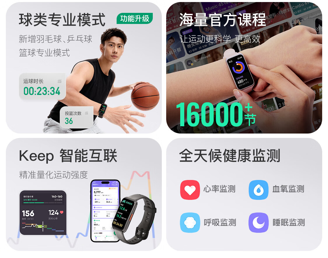 Keep智能运动手环 血氧心率监测手环 乒乓球、羽毛球等专业模式数据记录 B5黑色硅胶表带版 新年礼物