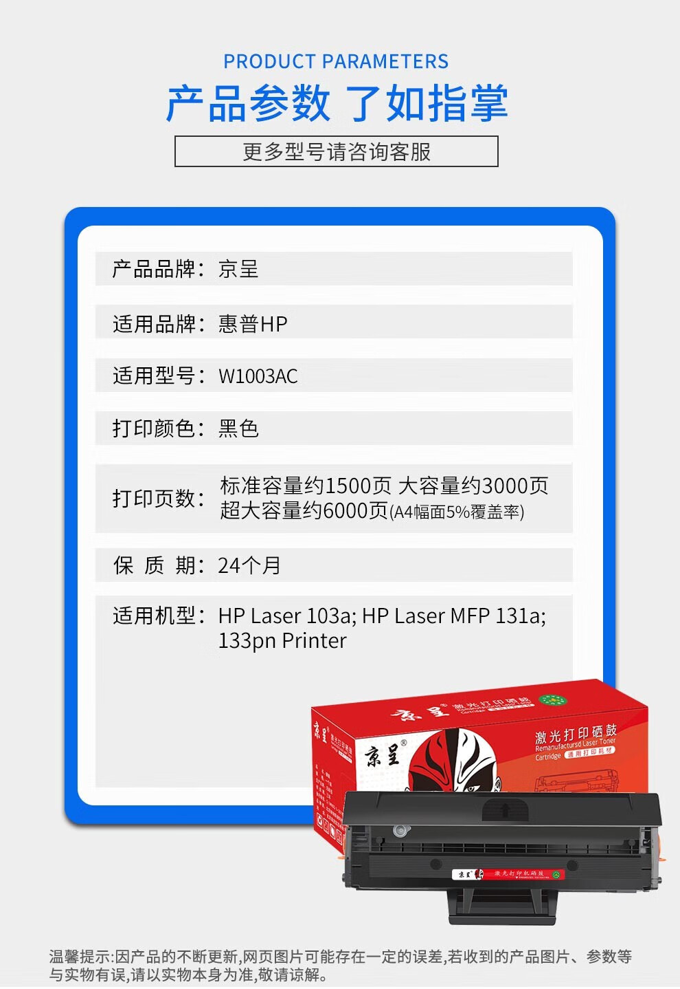 京呈适用惠普103a硒鼓HP Laser 103a 133pn 131a打印机硒鼓带芯片易加粉hp103a带芯片粉盒w1003ac黑色硒鼓