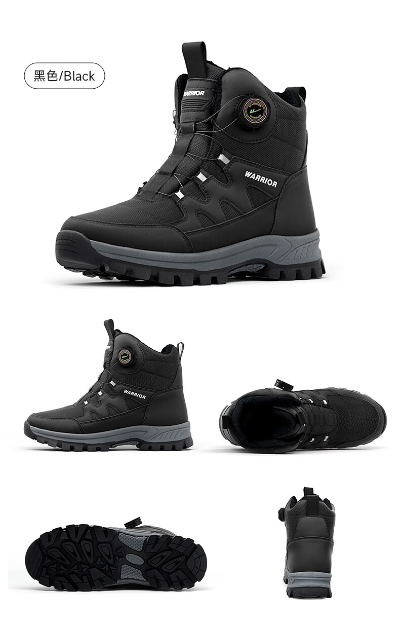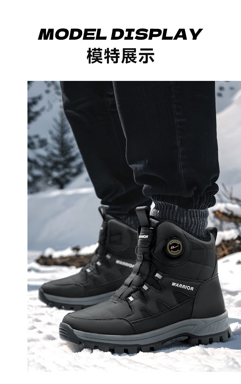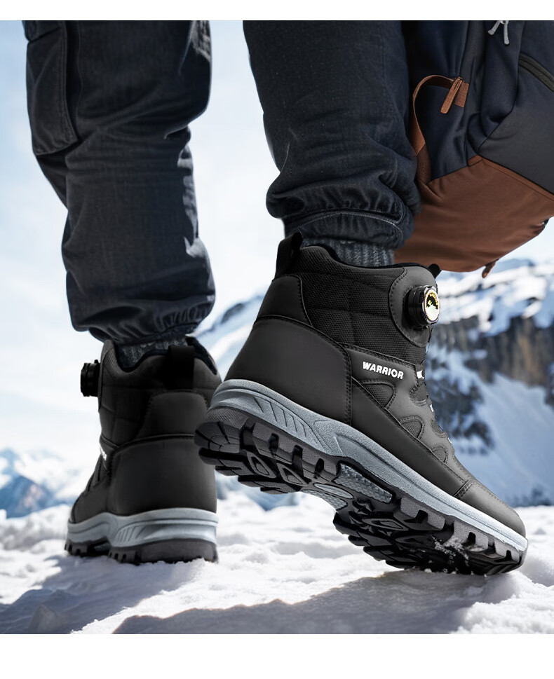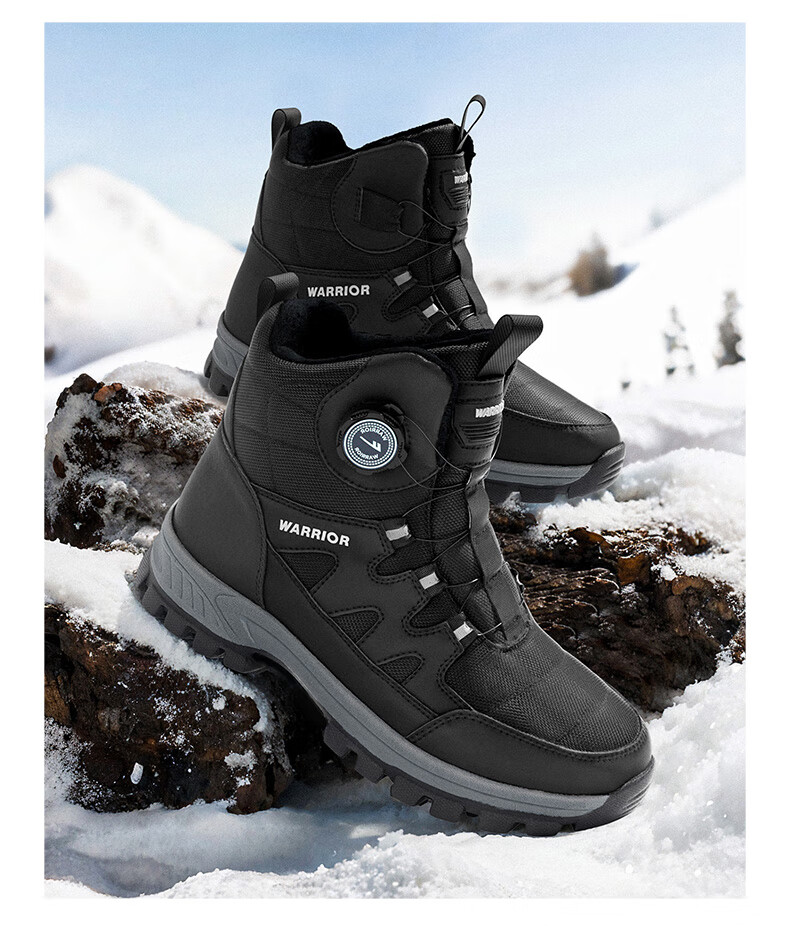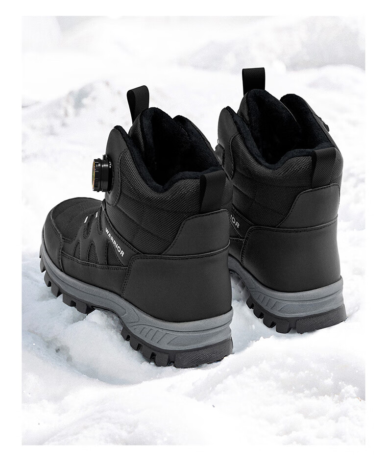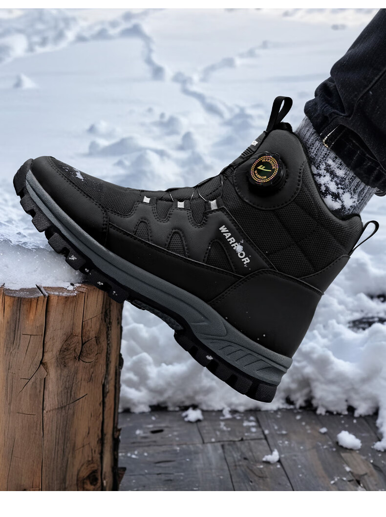 回力雪地靴男鞋保暖登山加绒加厚大码高帮东北大棉鞋 1902 黑色 43