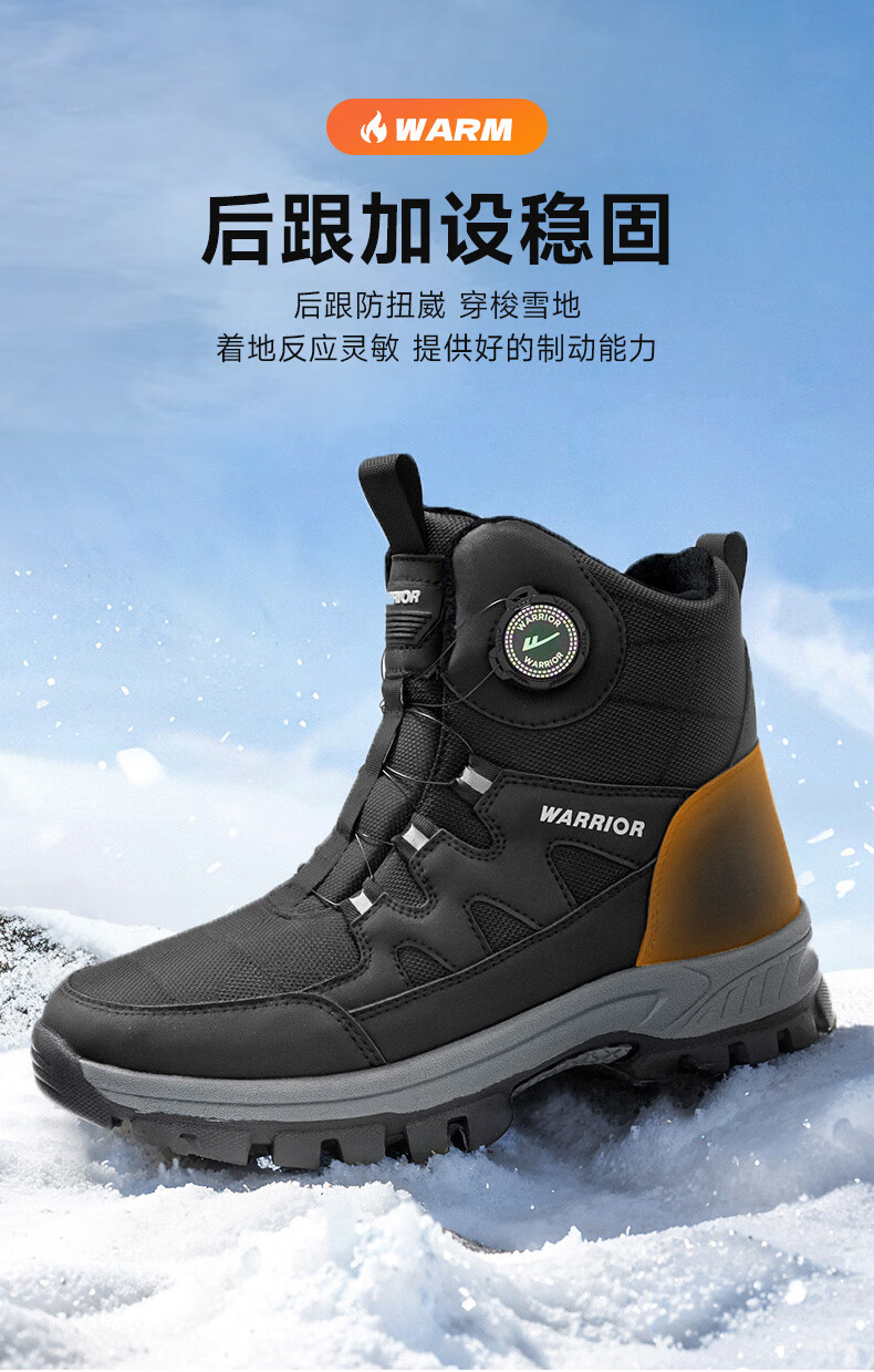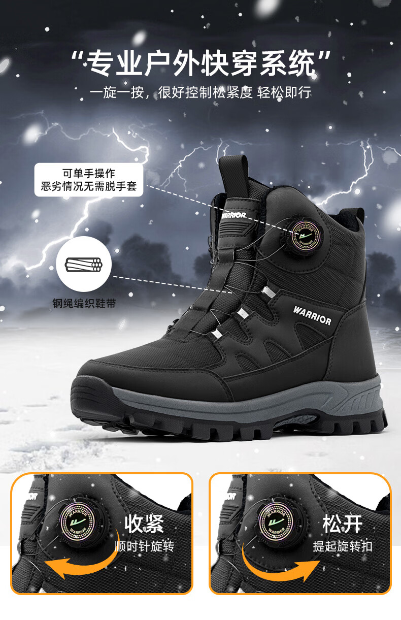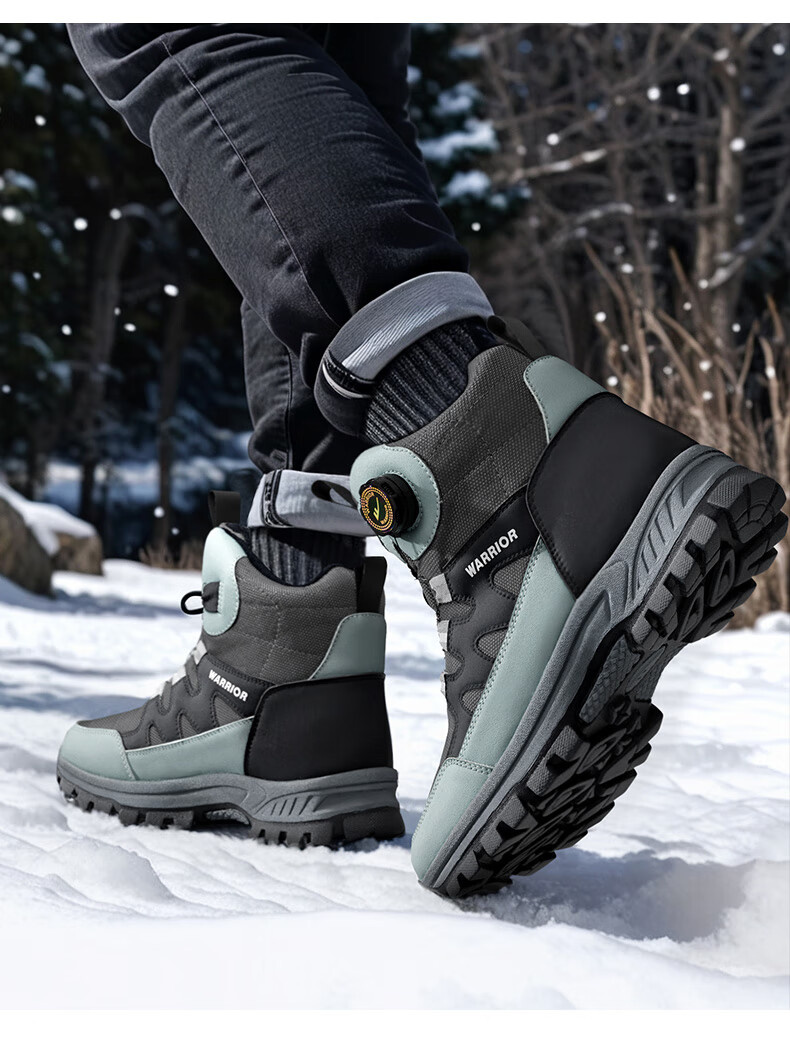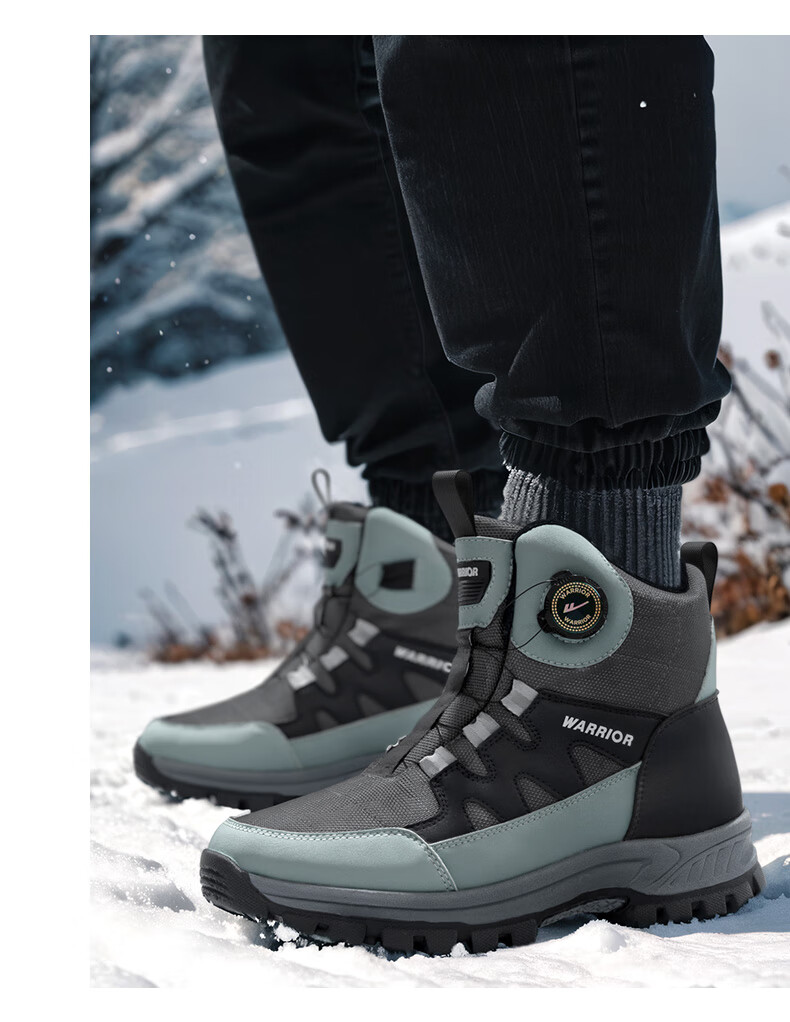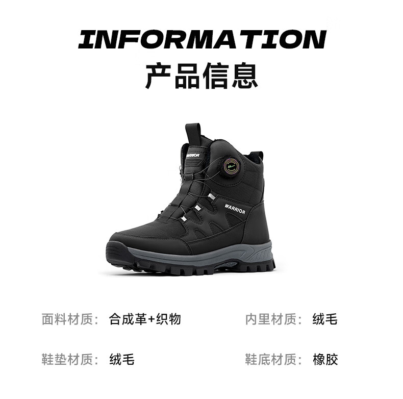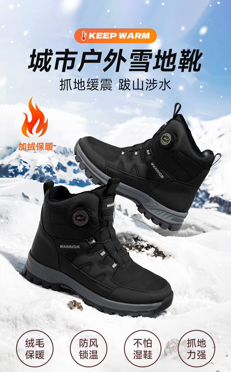 回力雪地靴男鞋保暖登山加绒加厚大码高帮东北大棉鞋 1902 黑色 43