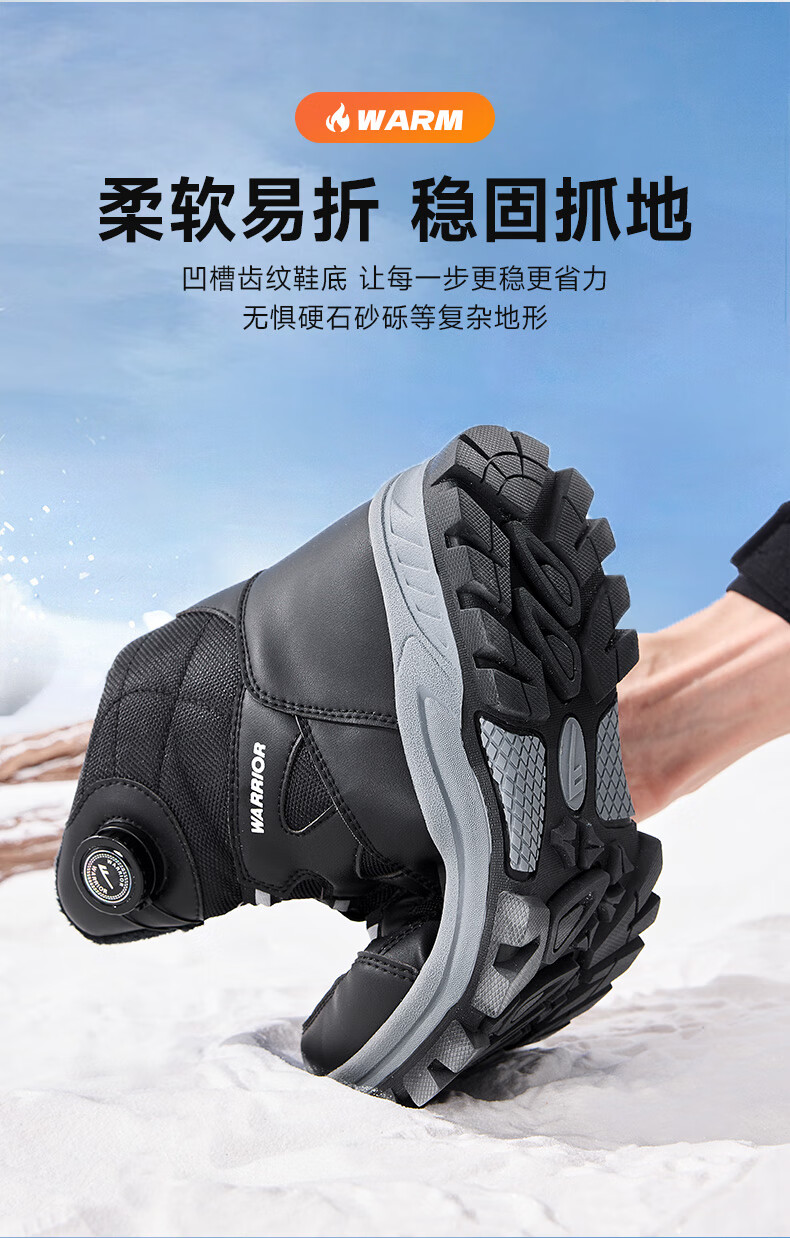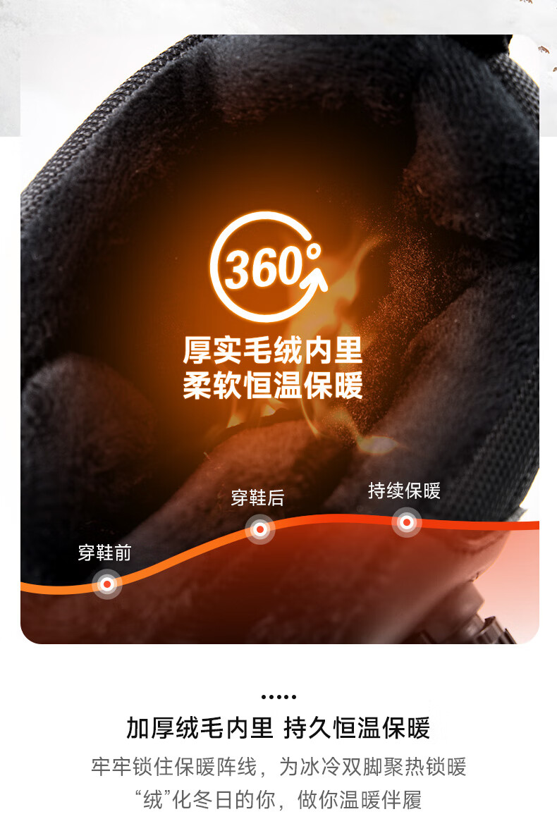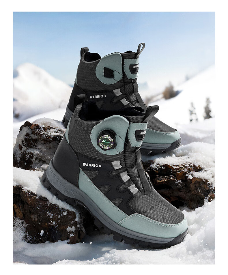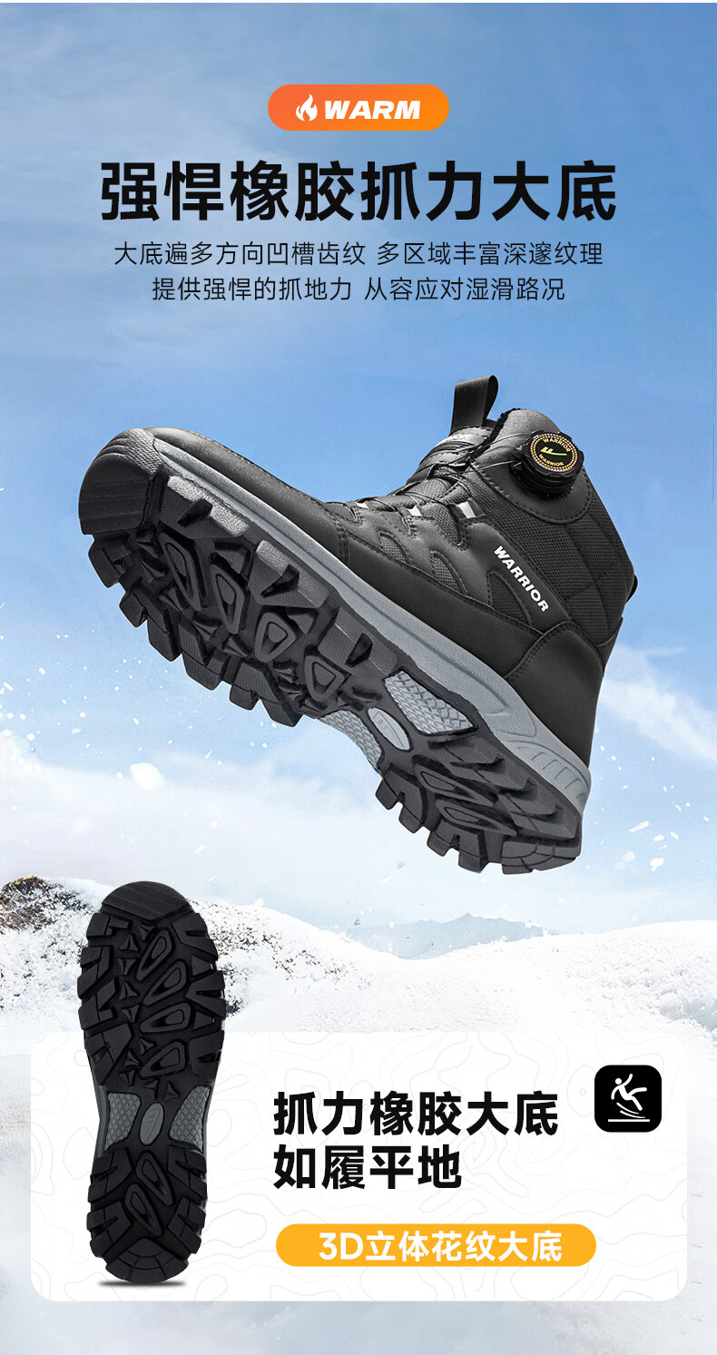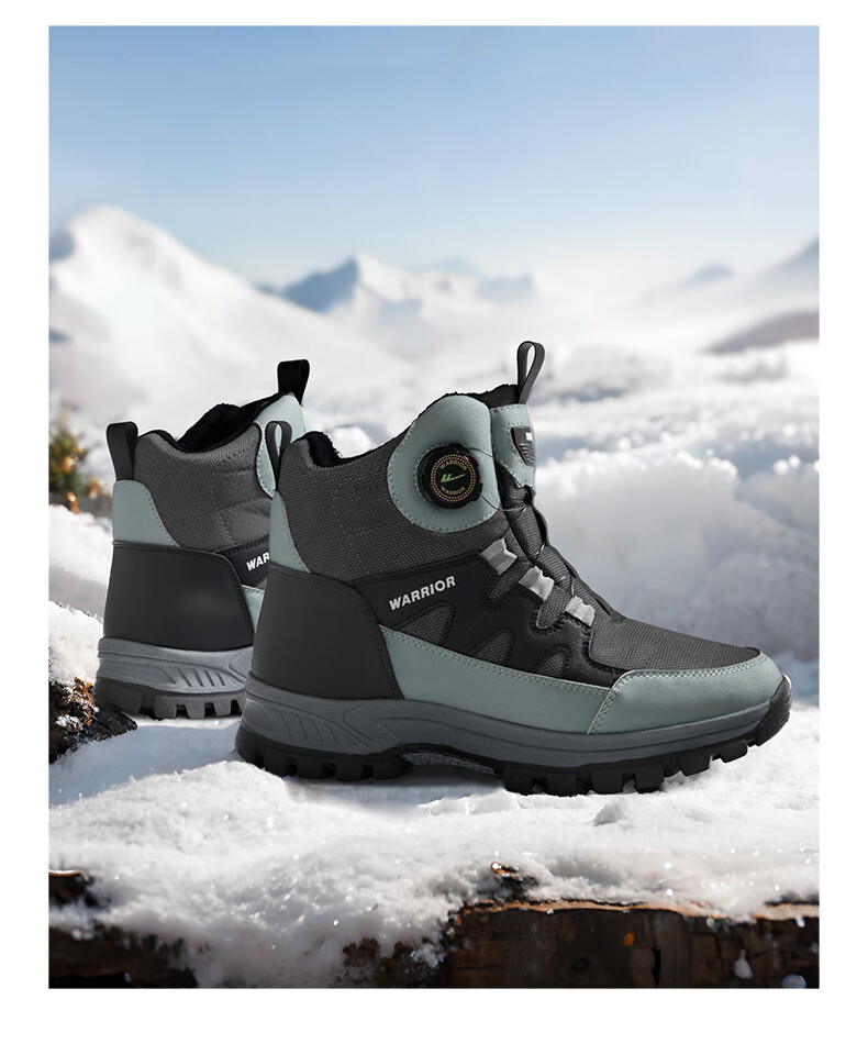 回力雪地靴男鞋保暖登山加绒加厚大码高帮东北大棉鞋 1902 黑色 43
