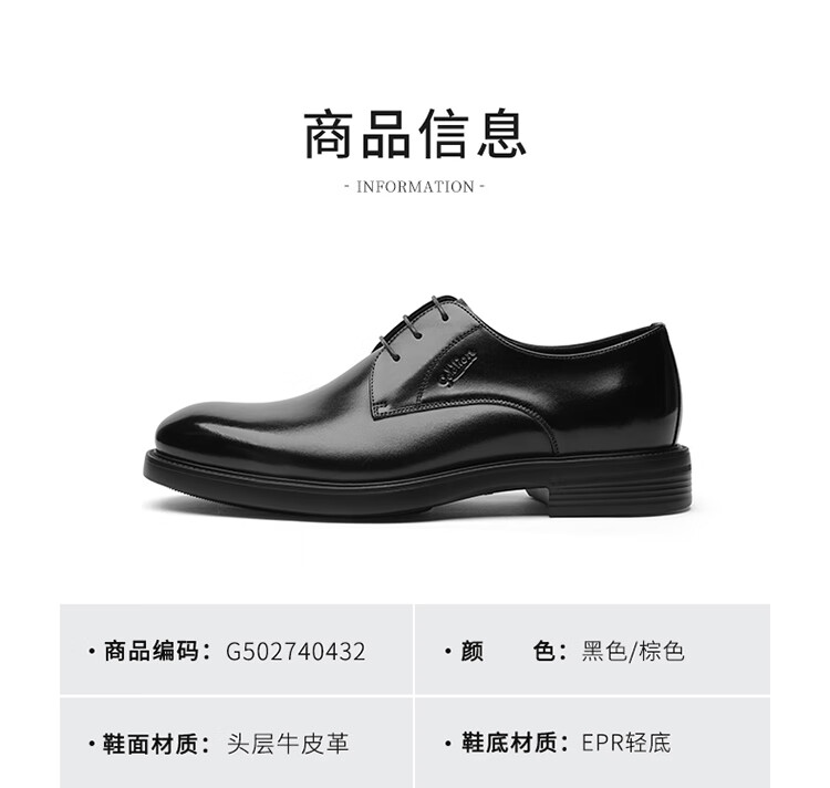 金利来(Goldlion)男鞋正装鞋男士时尚商务皮鞋舒适耐磨德比鞋G502740432AAA黑色40