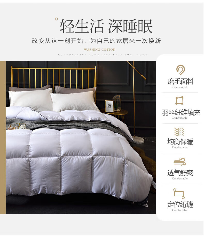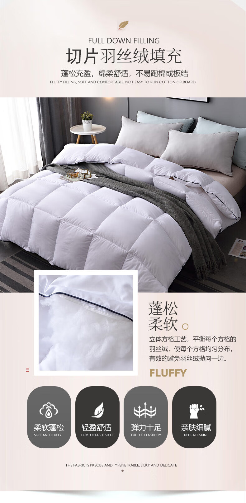 恒源祥出口羽丝绒被白鹅丝绒被芯冬被加厚保暖80s五星级酒店6斤春秋被子 白色 150*200cm【4斤夏被】